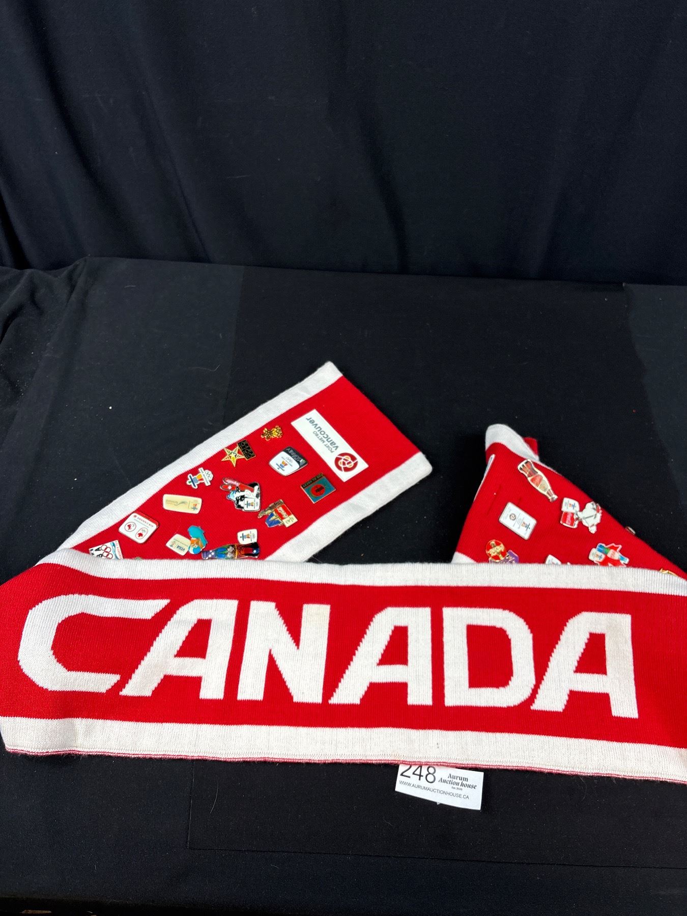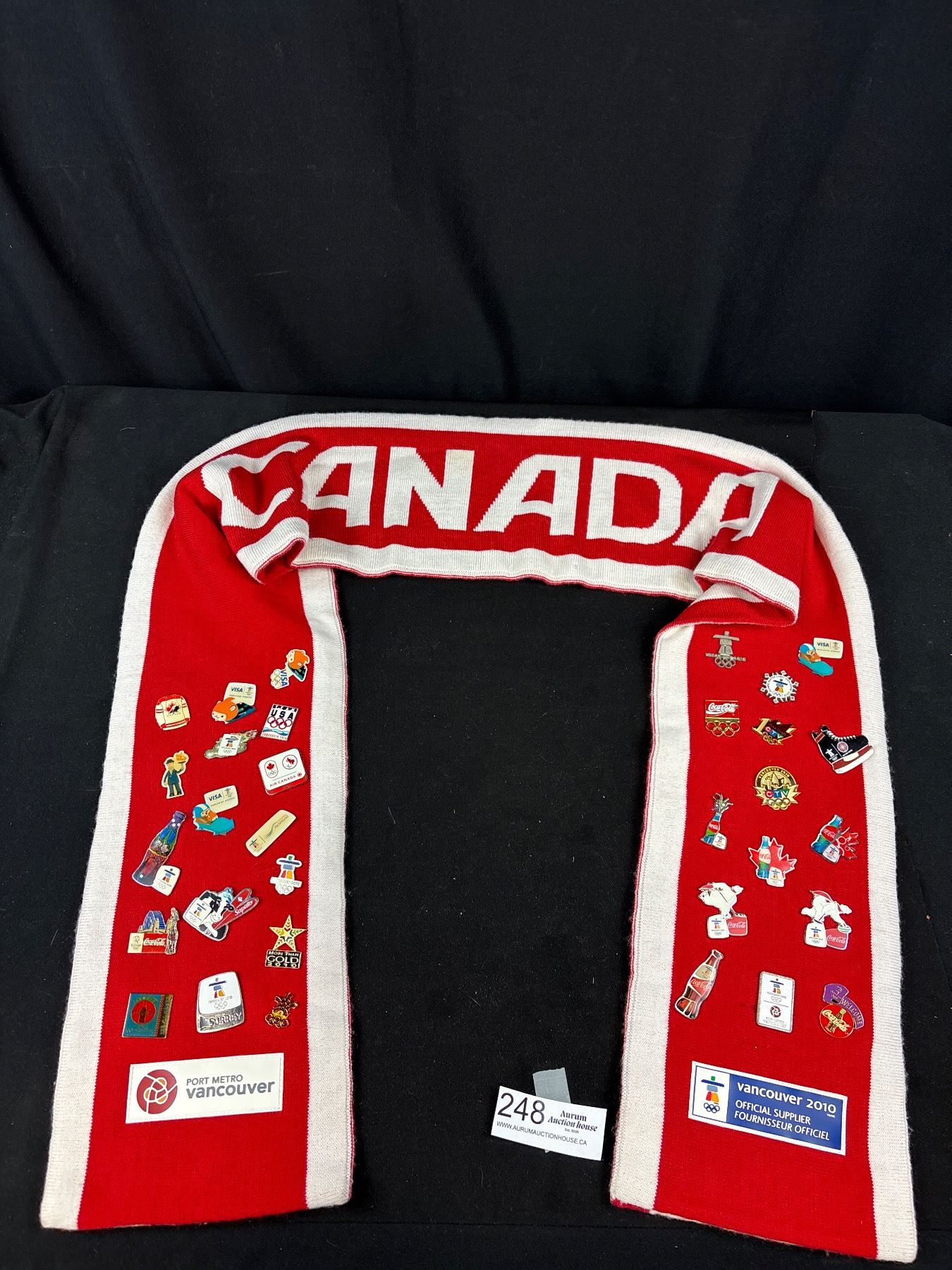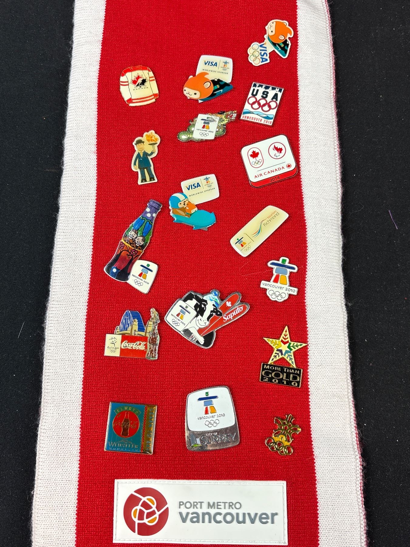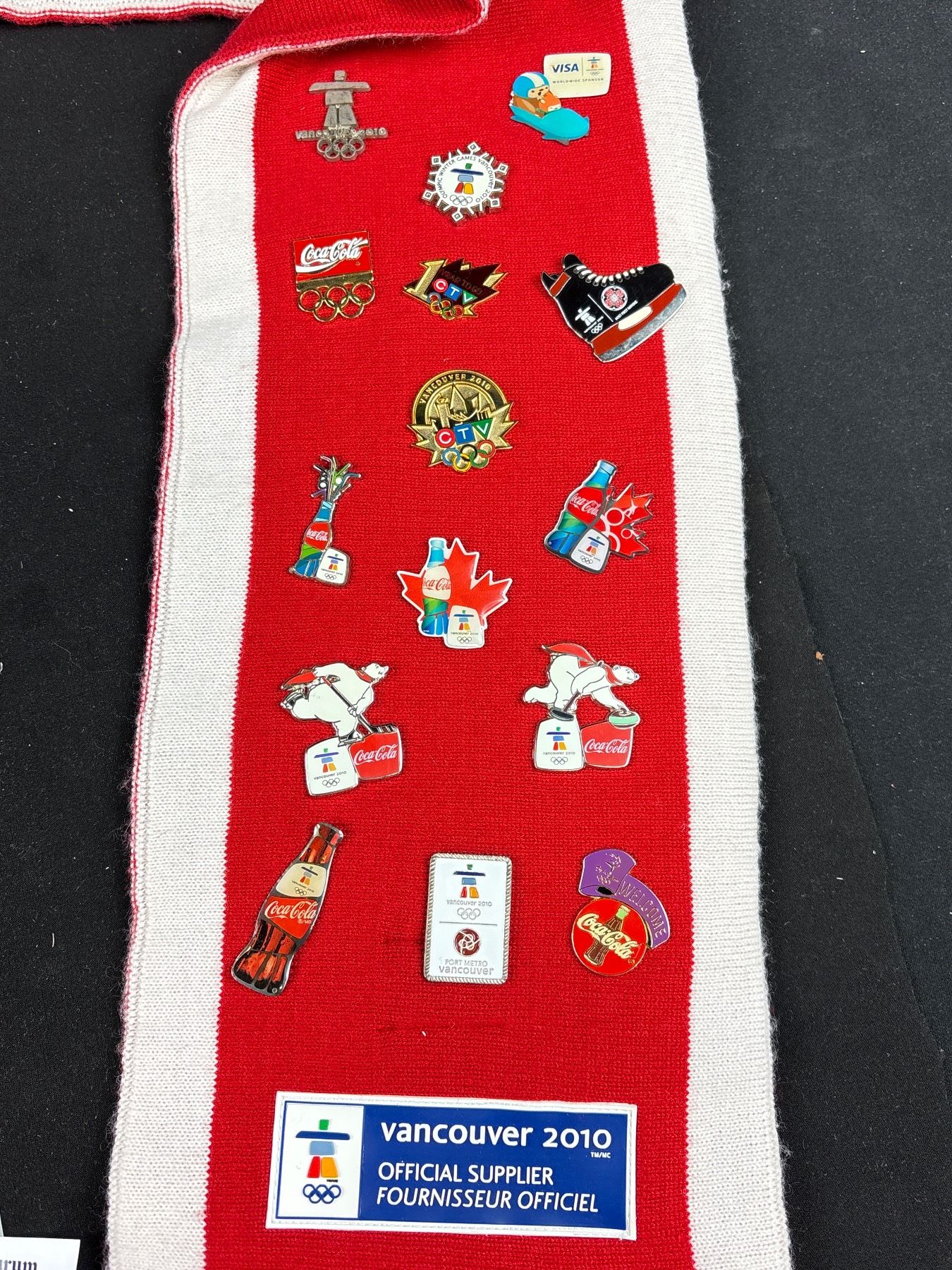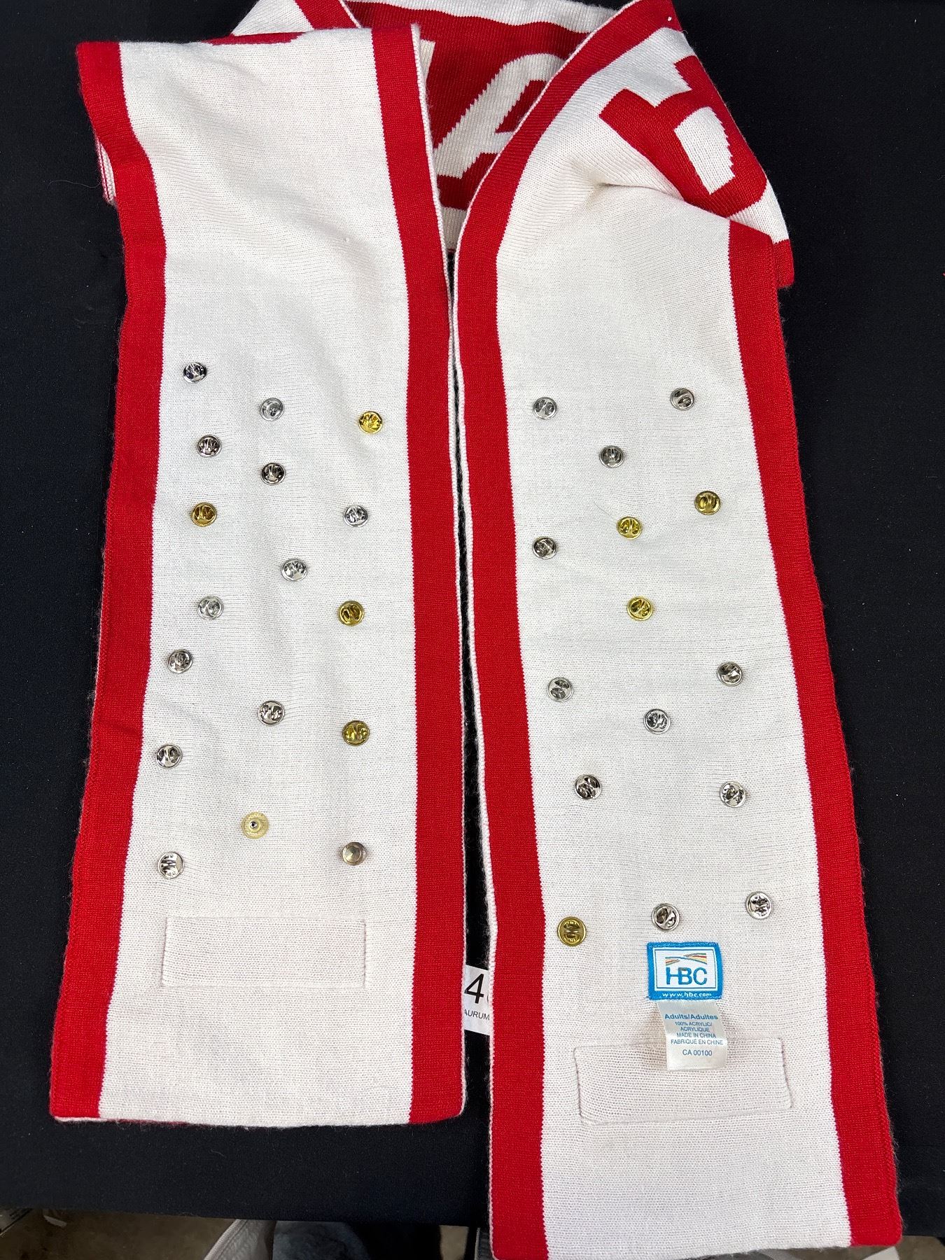 Vancouver 2010 Olympics Trading Pins on a Scarf