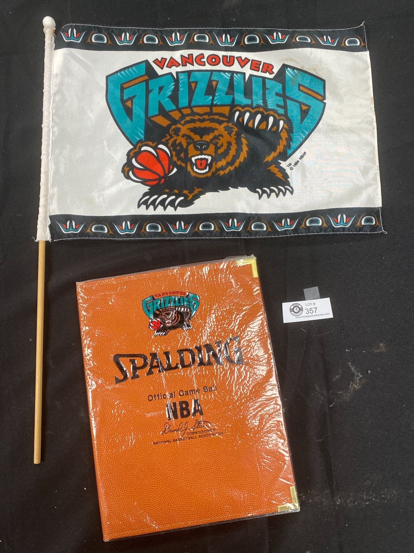 Vancouver Grizzlies Collectible Lot. Official Game Ball Binder and Flag