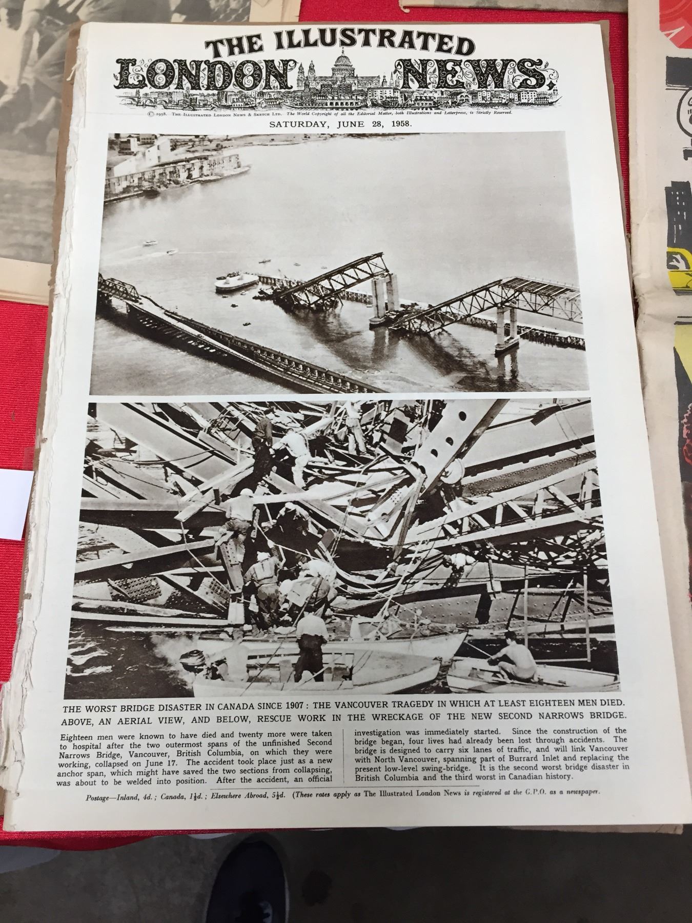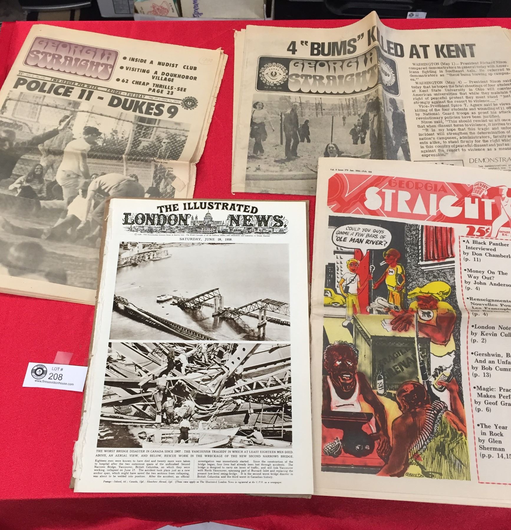 Vancouver Newspaper Lot. Vintage Georgia Straight and The London News With the Story of the Second Narrows Bridge Collapse of 1958