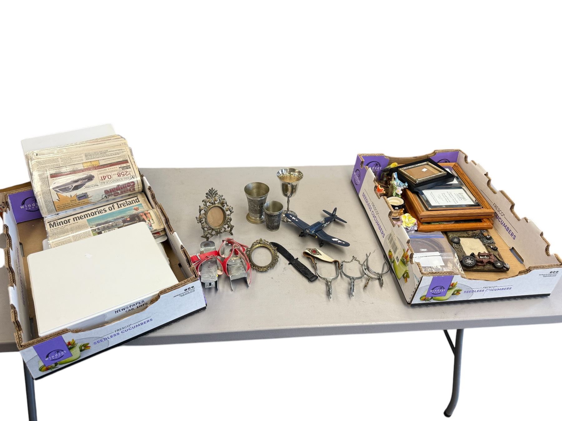 Various Picture Frames, Toy Stir-ups, Toy Airplane, Binders Of Car Paper Cut Outs,& More