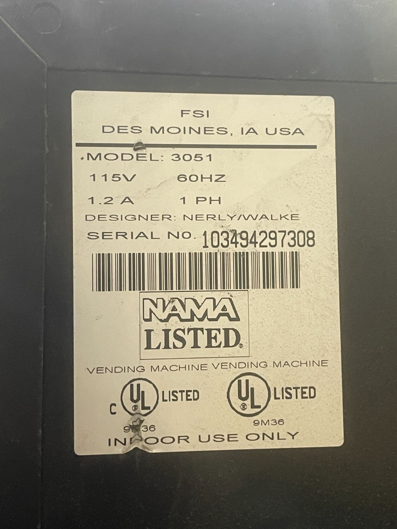 Vending machine (tested - working condition approx. 20 1/2in W 69in H 33 1/2in D)