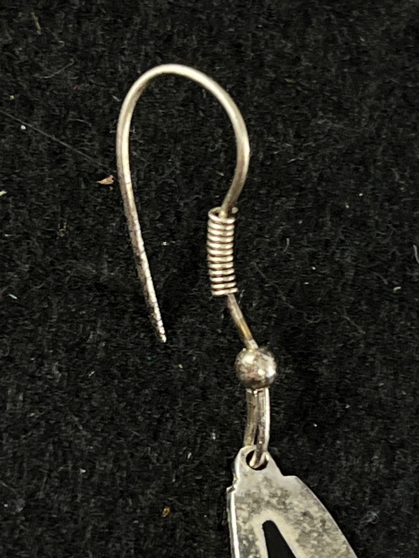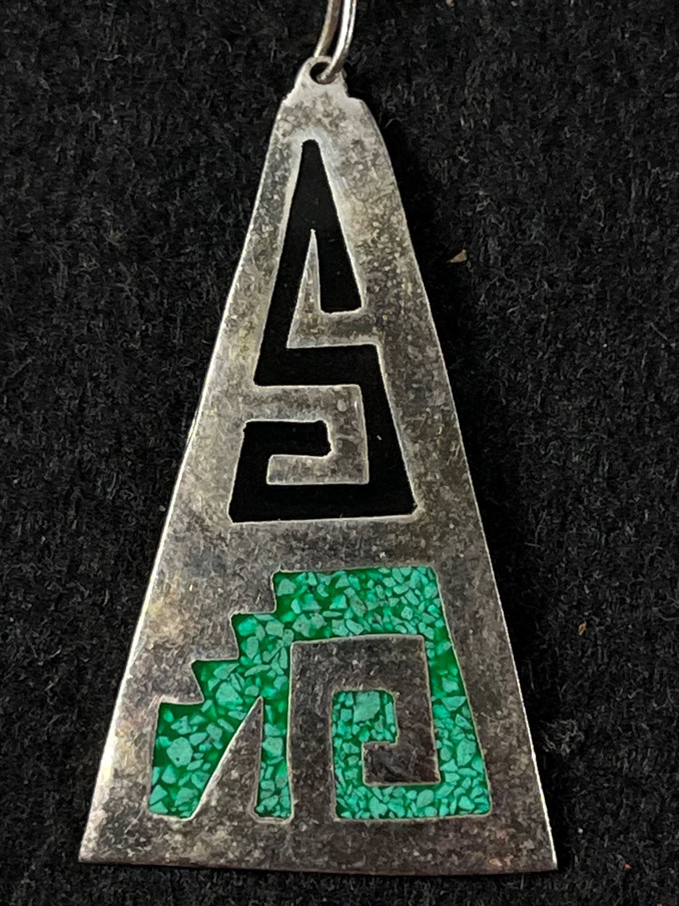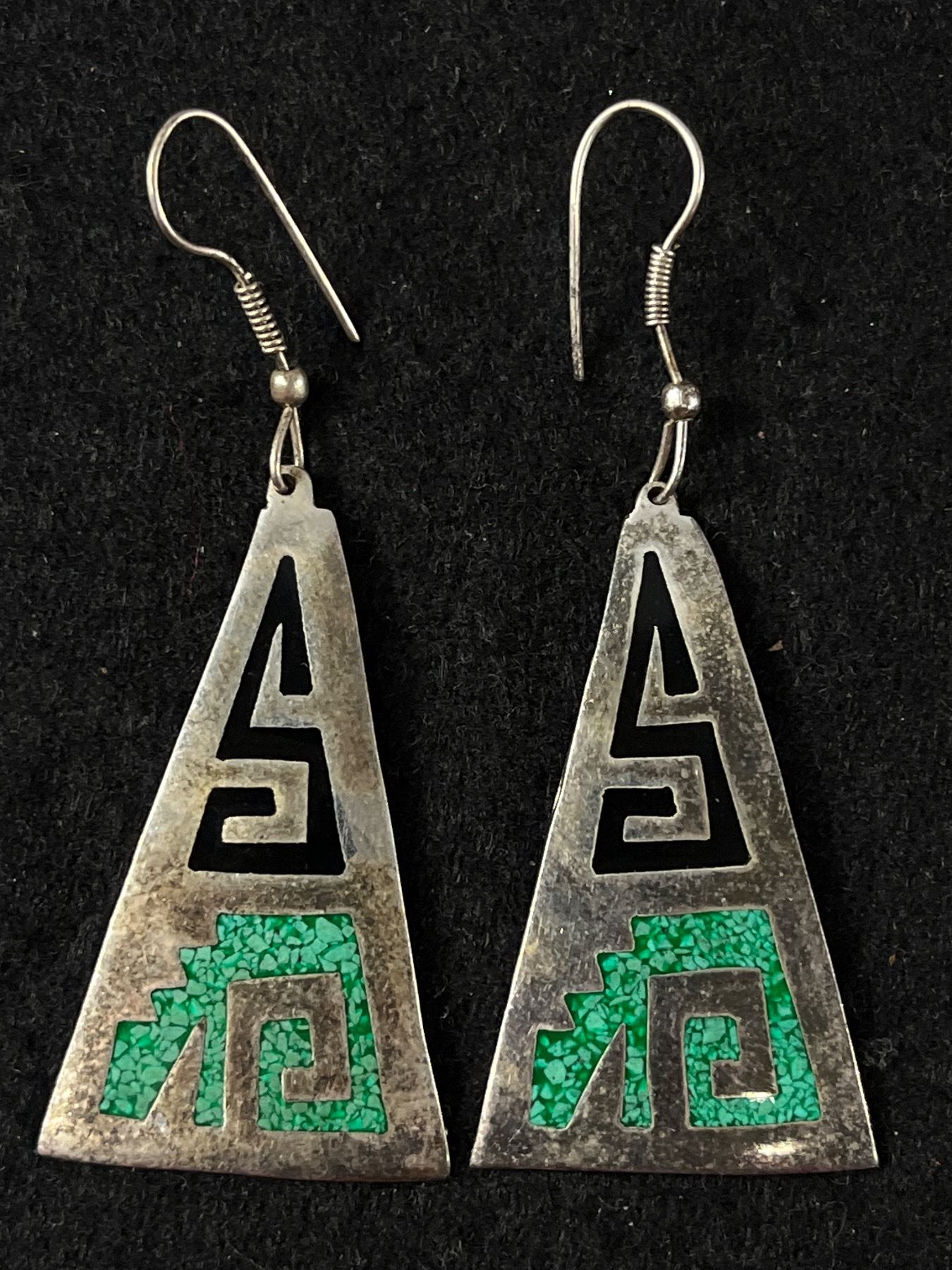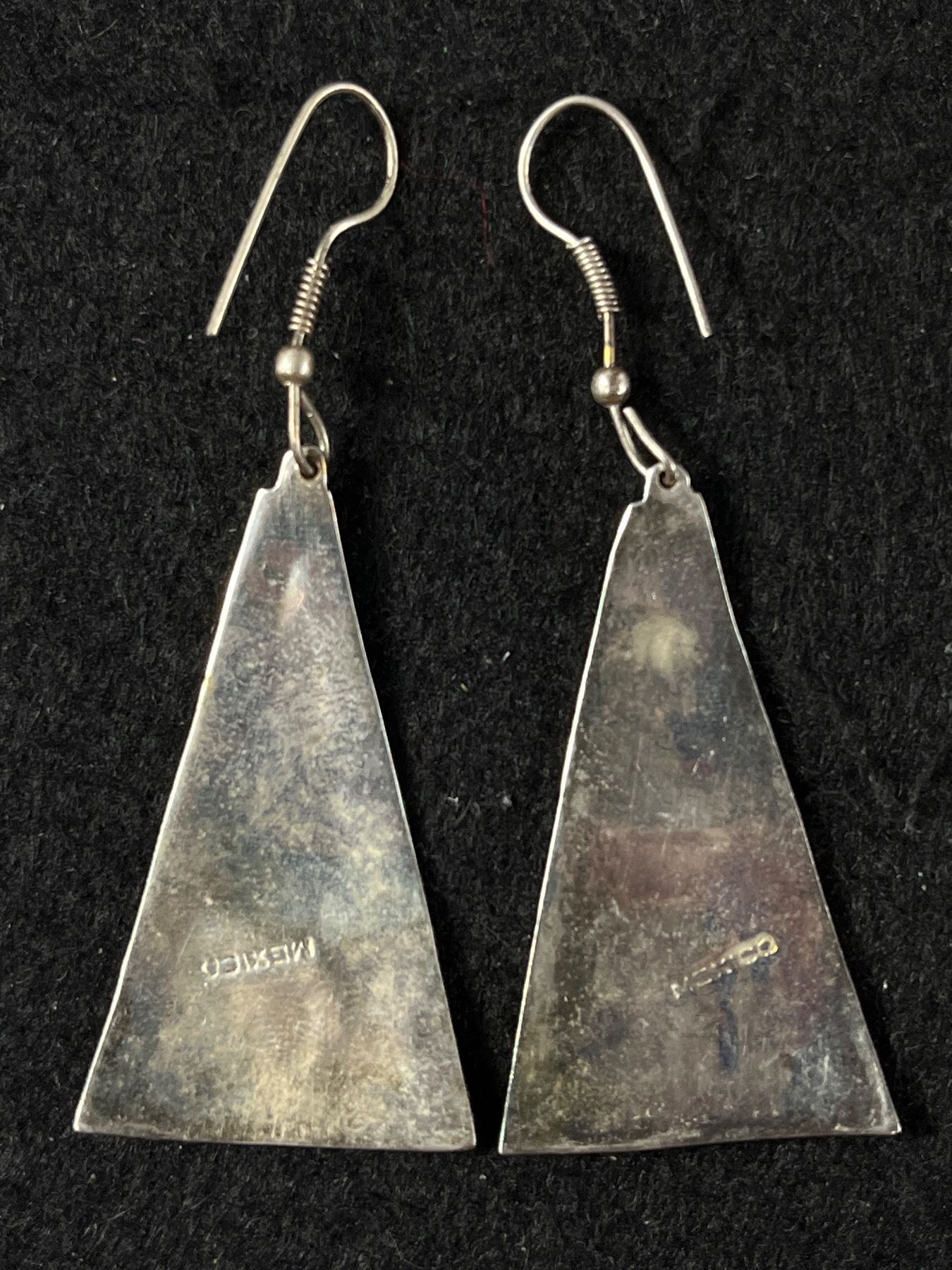 Very Cool Mexican Silver & Enamel ( 1970's) 2" L Earrings