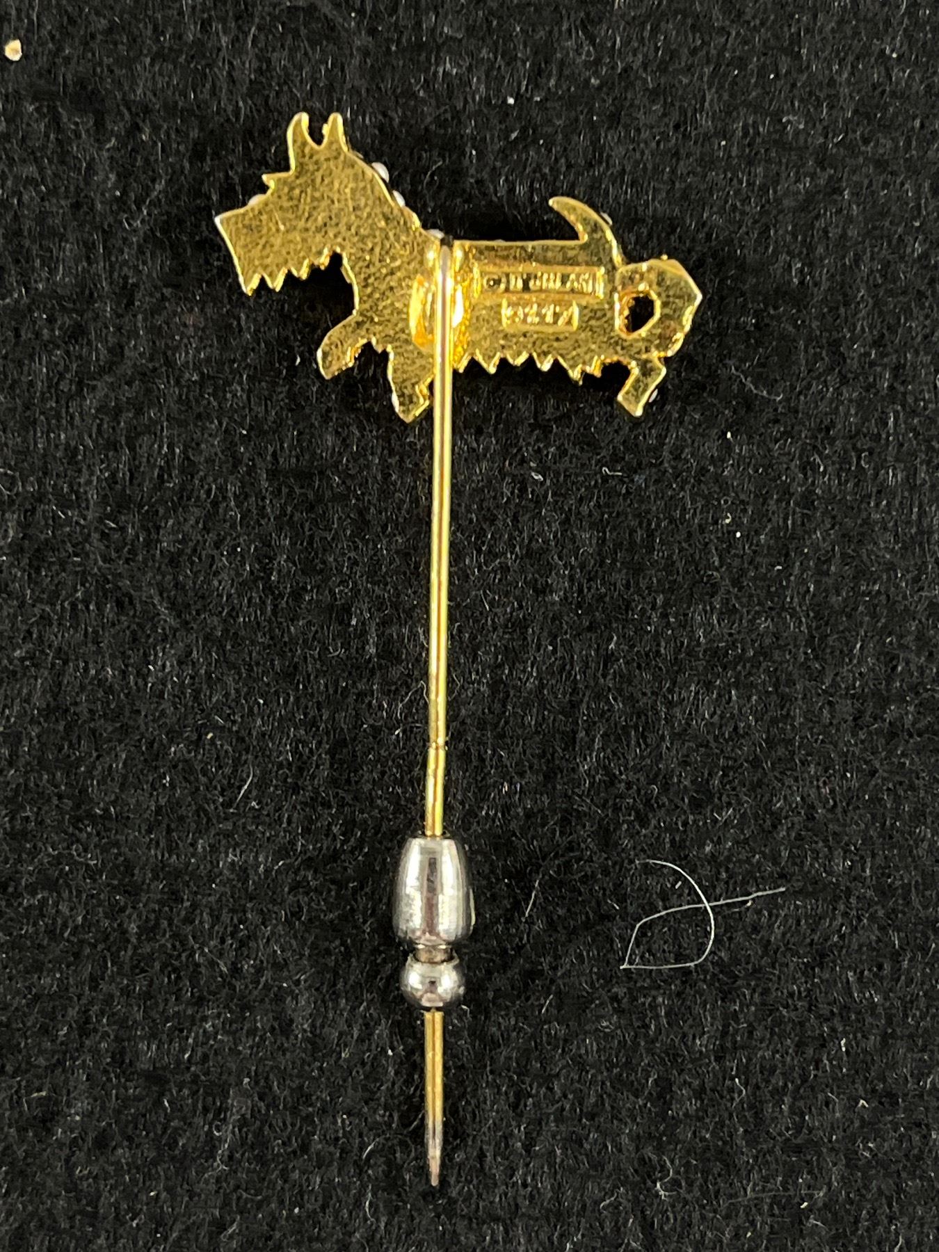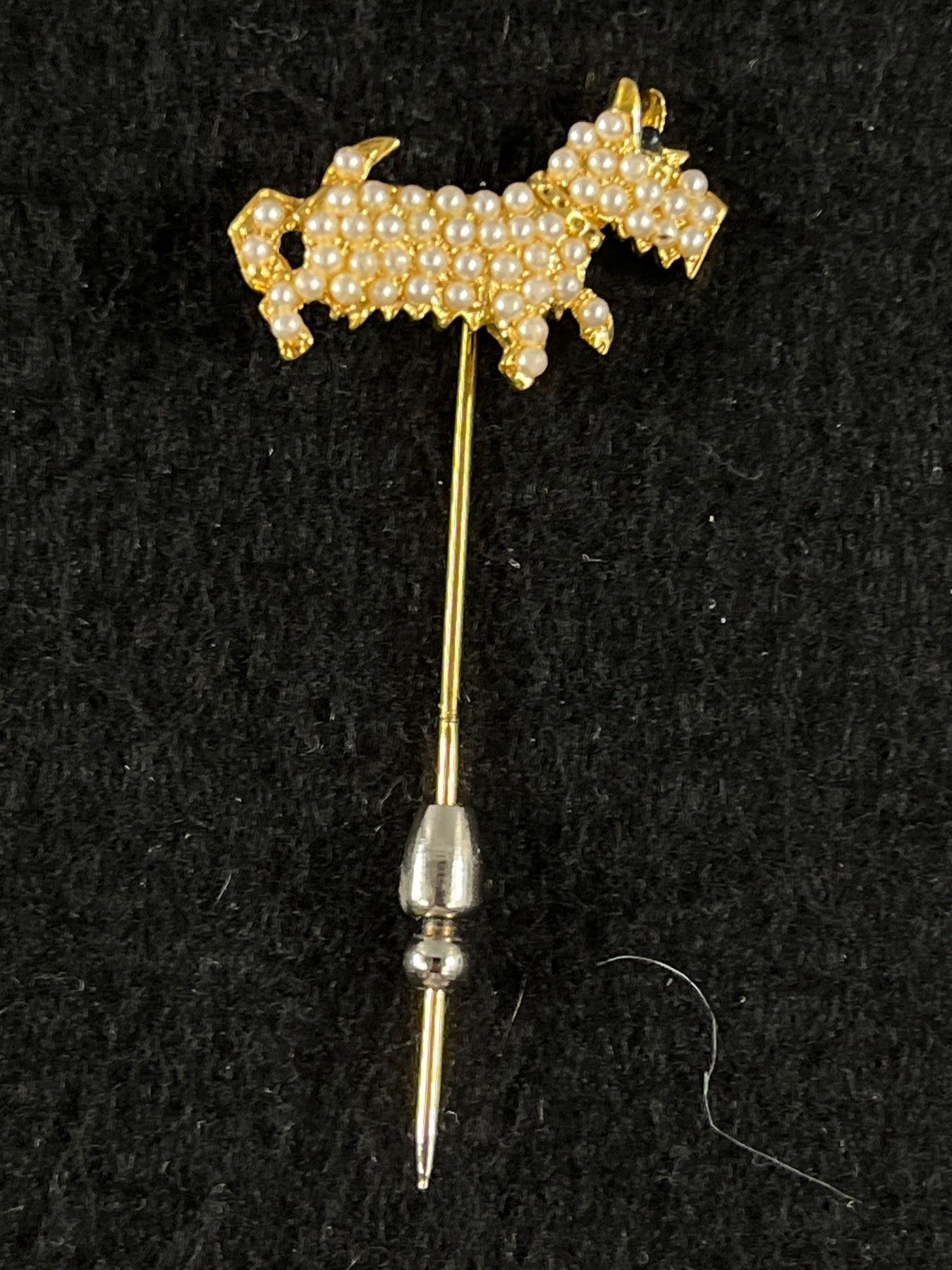 Very Cute Scotty Dog (Faux Pearl) Stick Pin Signed D'Orlan