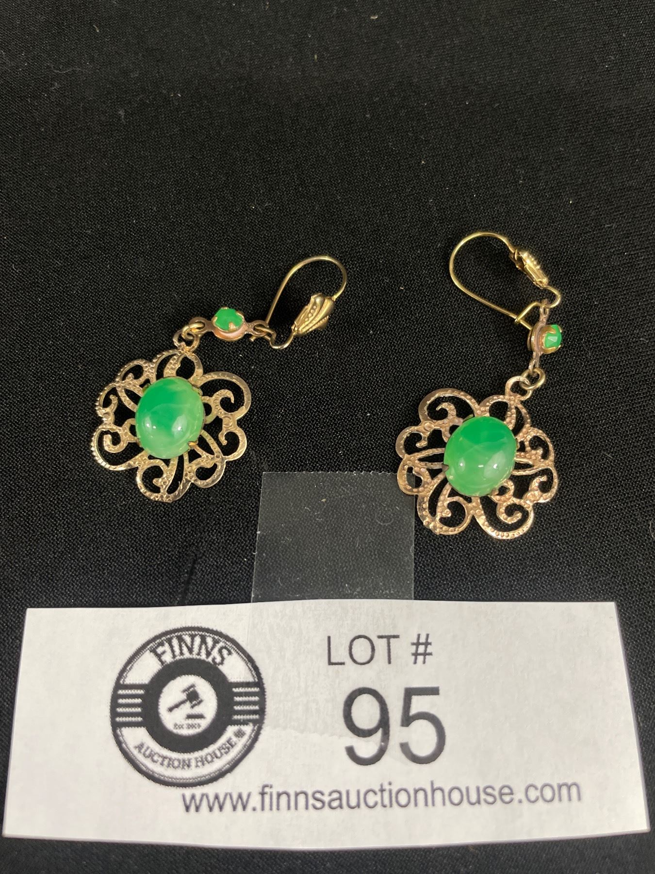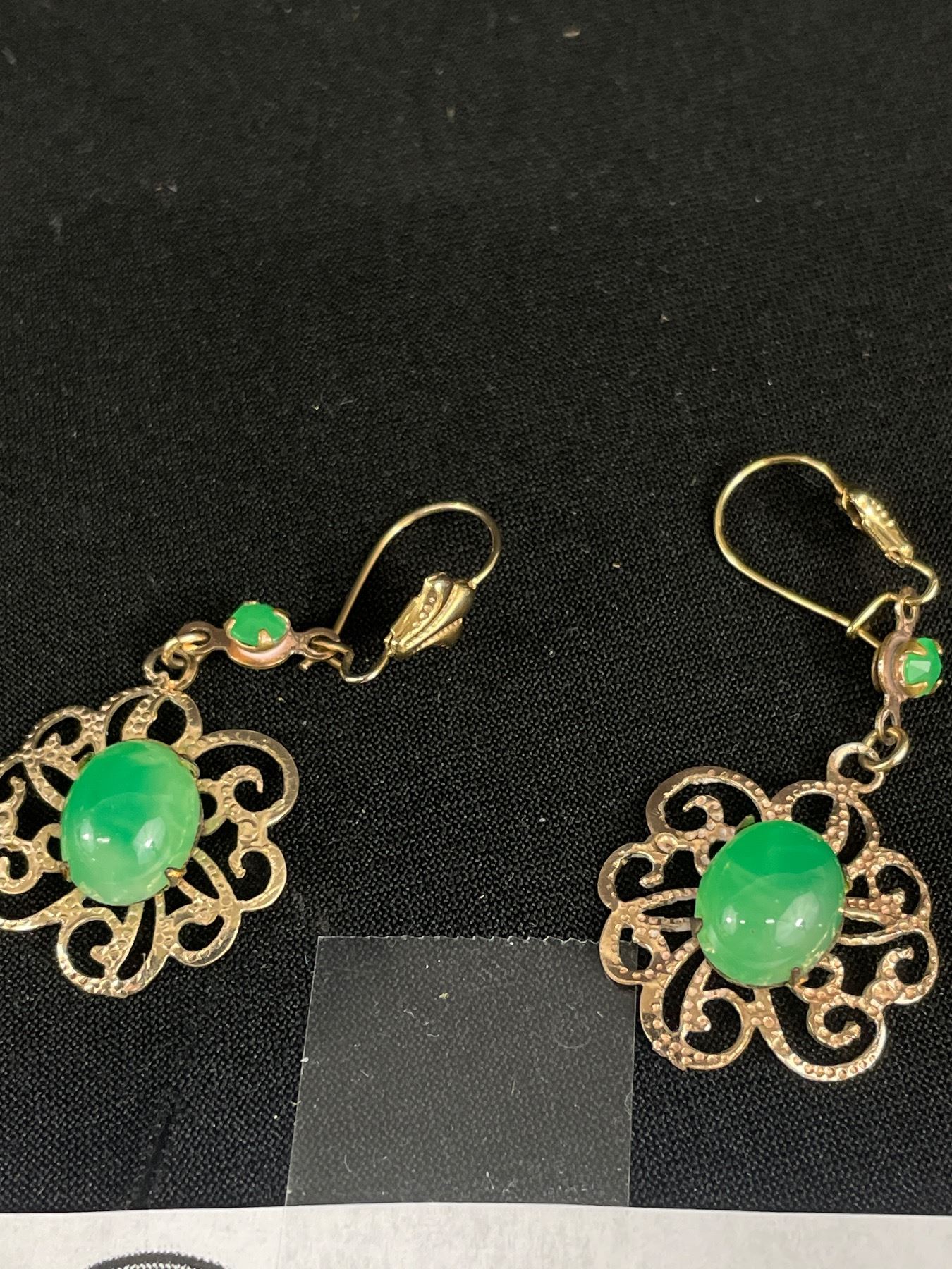 Very Dainty Vintage Green Stone Earrings, Dangling
