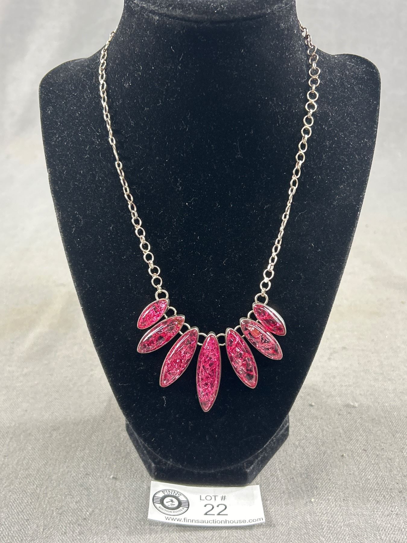 Very Eye Catching Sterling Silver Pink Stone, Collom Necklace