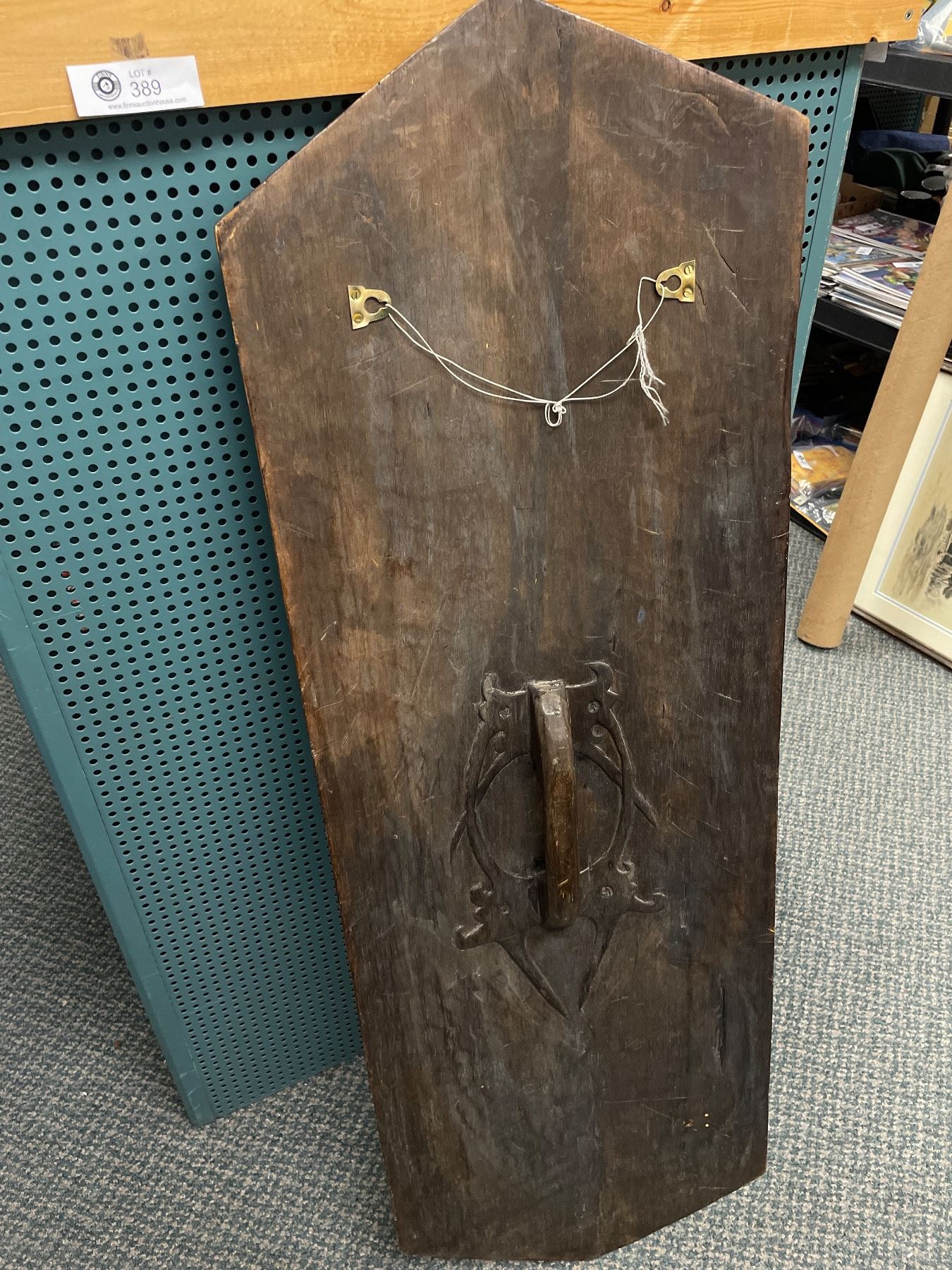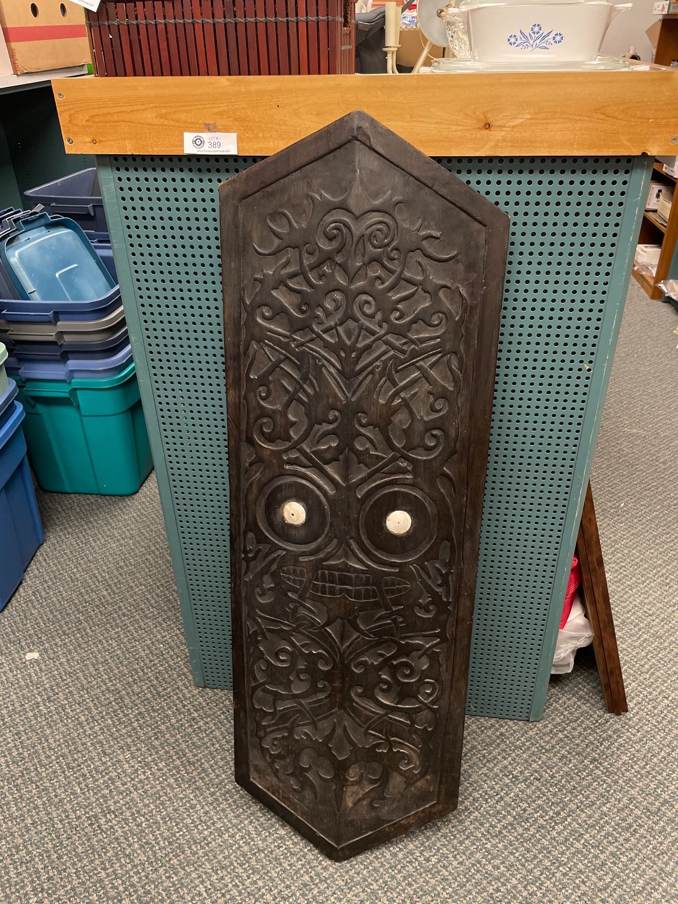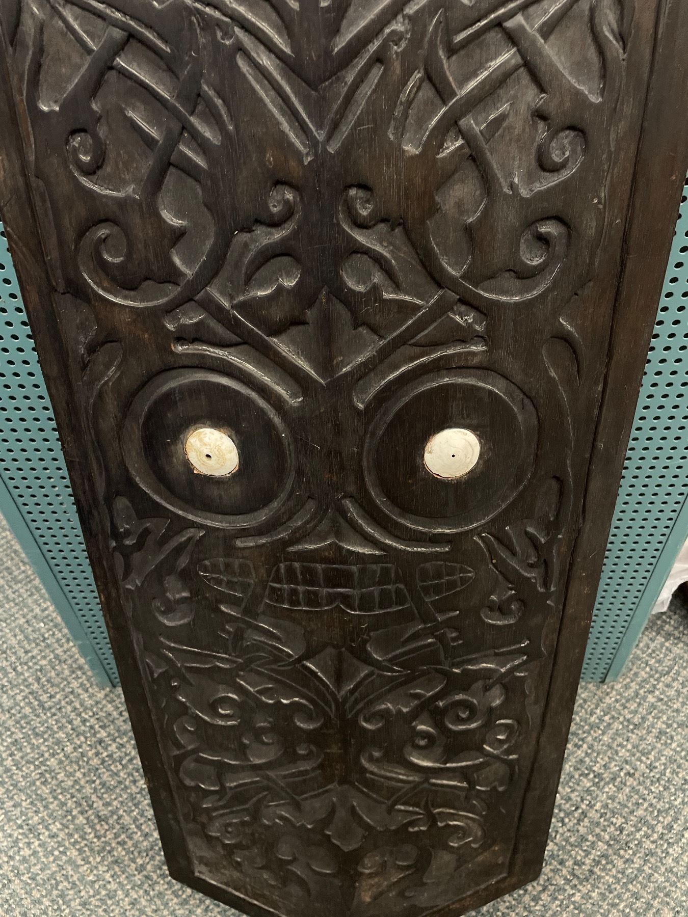 Very Good Polynesian War Shield. Shell Inlay 45" Long