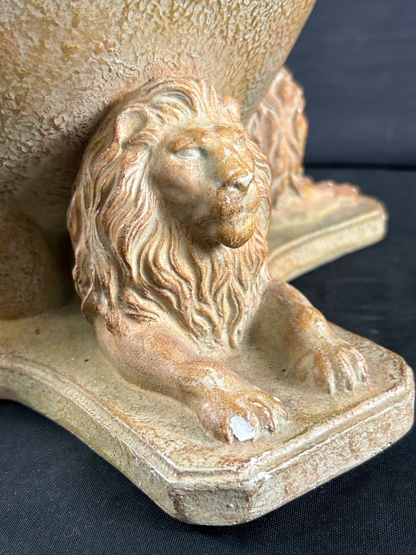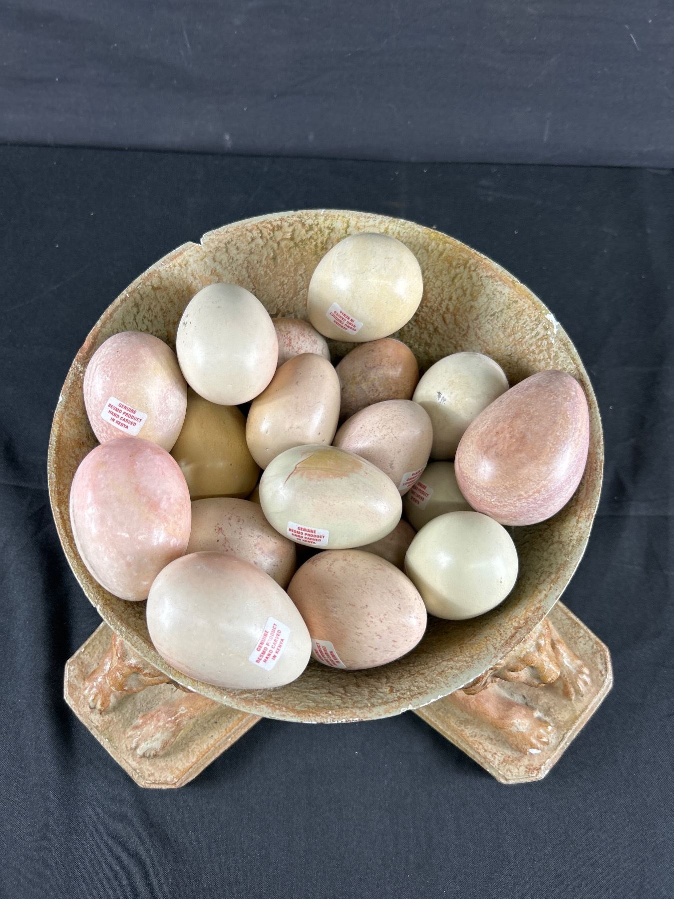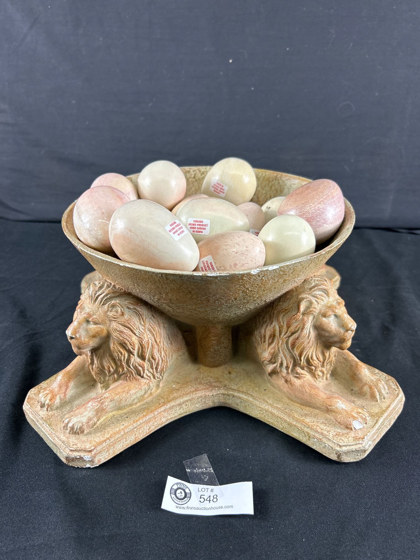 Very Heavy 16" Ceramic Lions Bowl w/ Kenya Hand Carved Stone 3" Eggs.