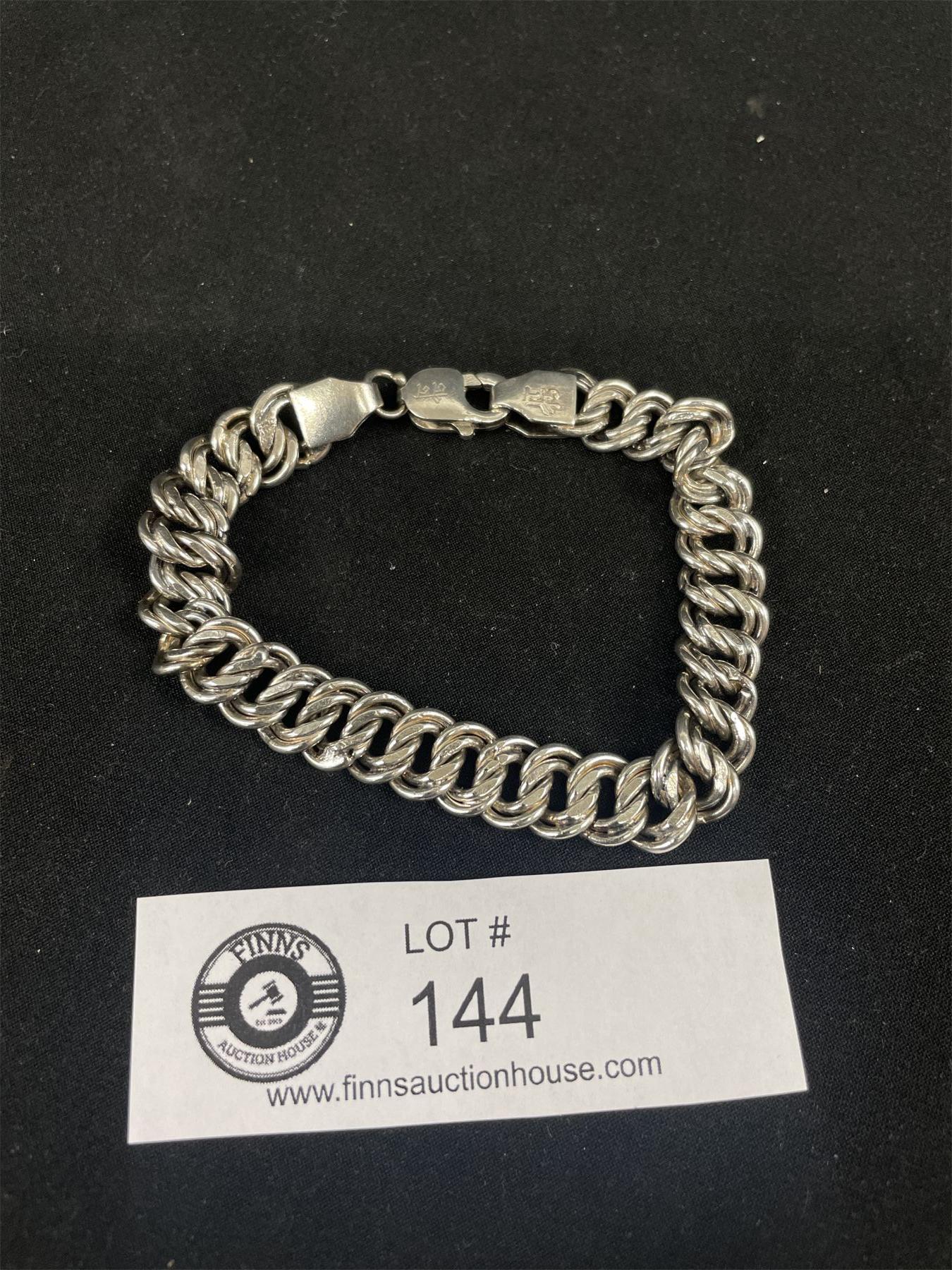 Very Heavy Large Sterling Silver Link Bracelet, Marked. 8 inches