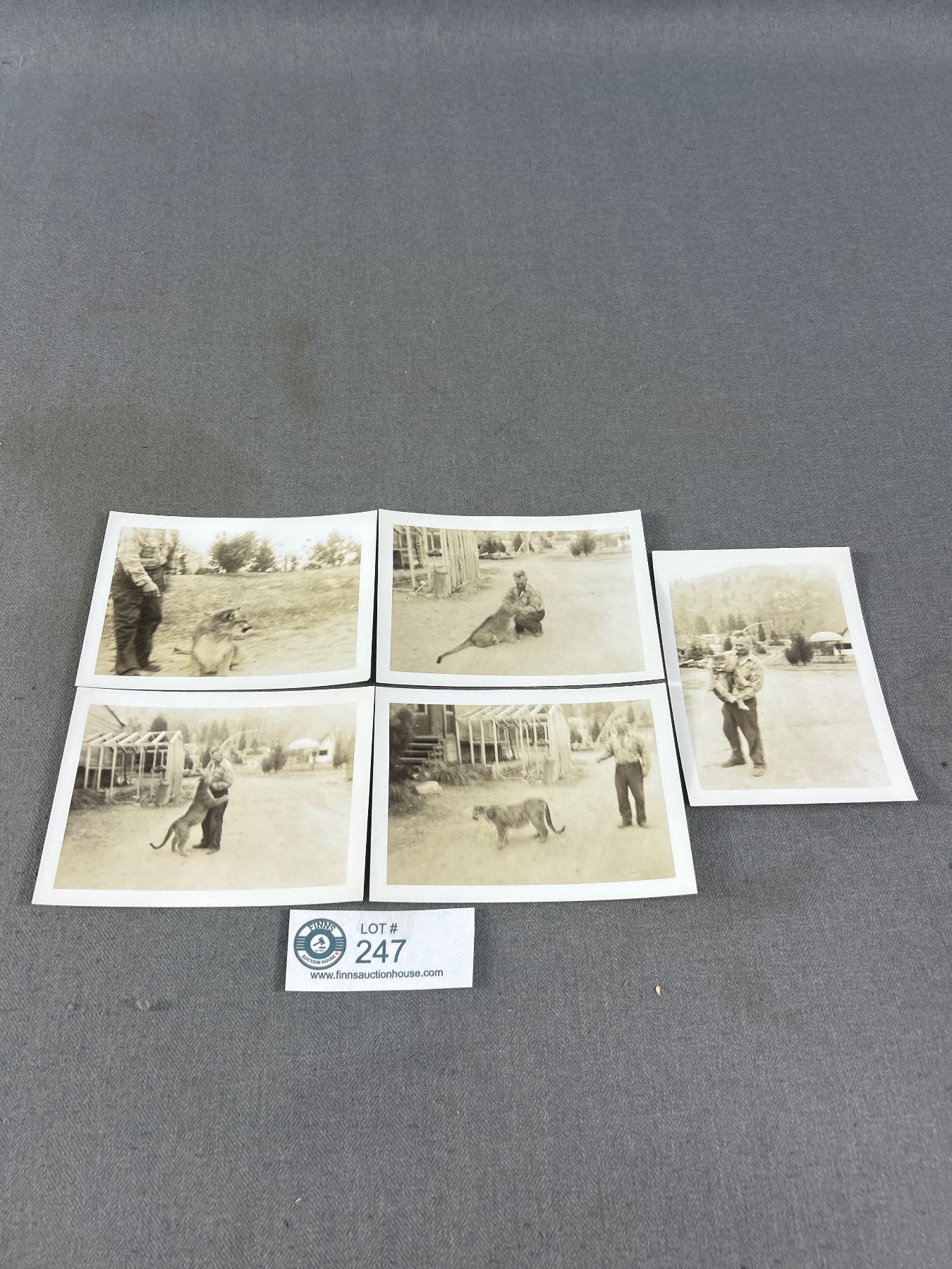 Very Interesting Group Of Seven 1930's-40's Photo's Of A Man w/ A Mountain Lion