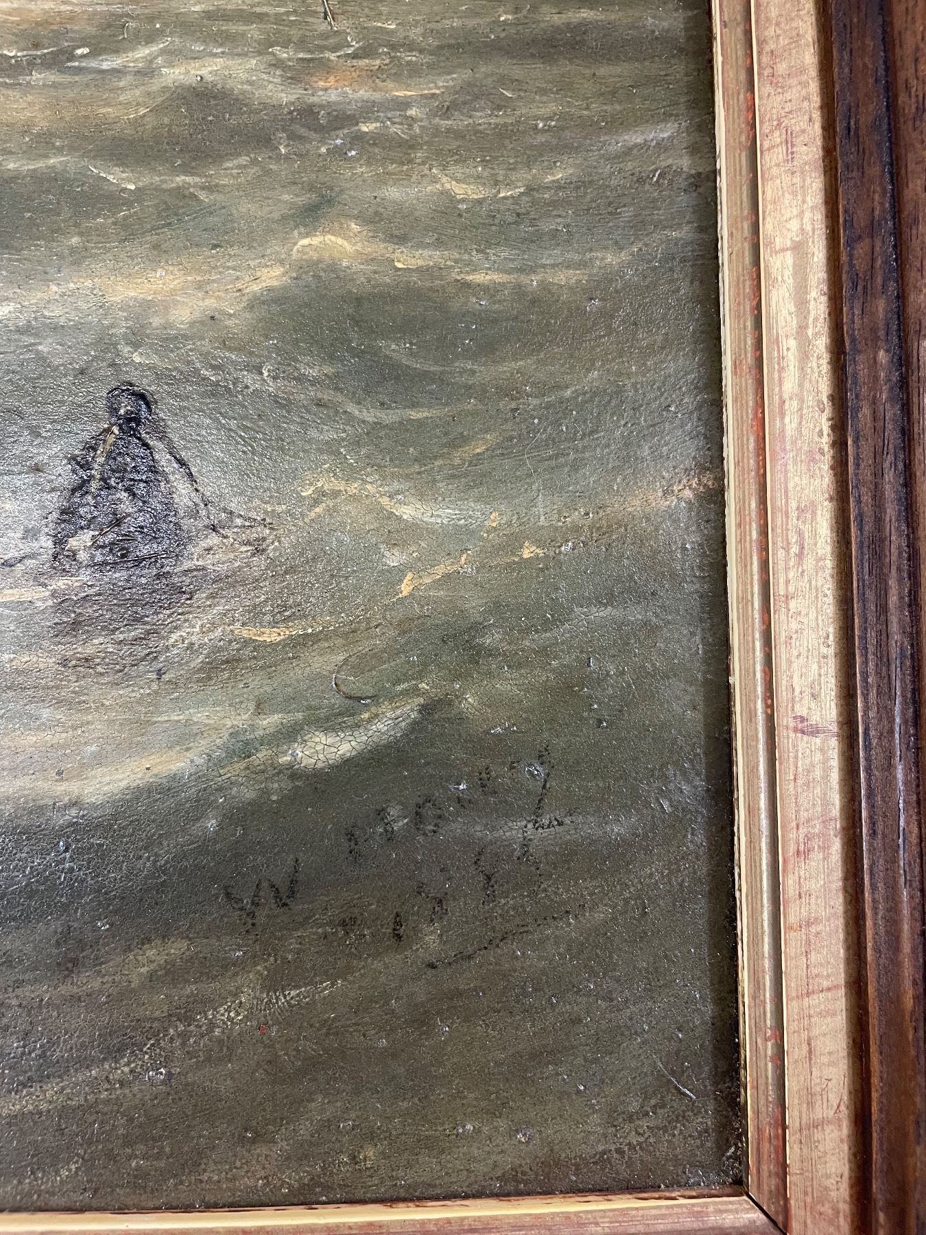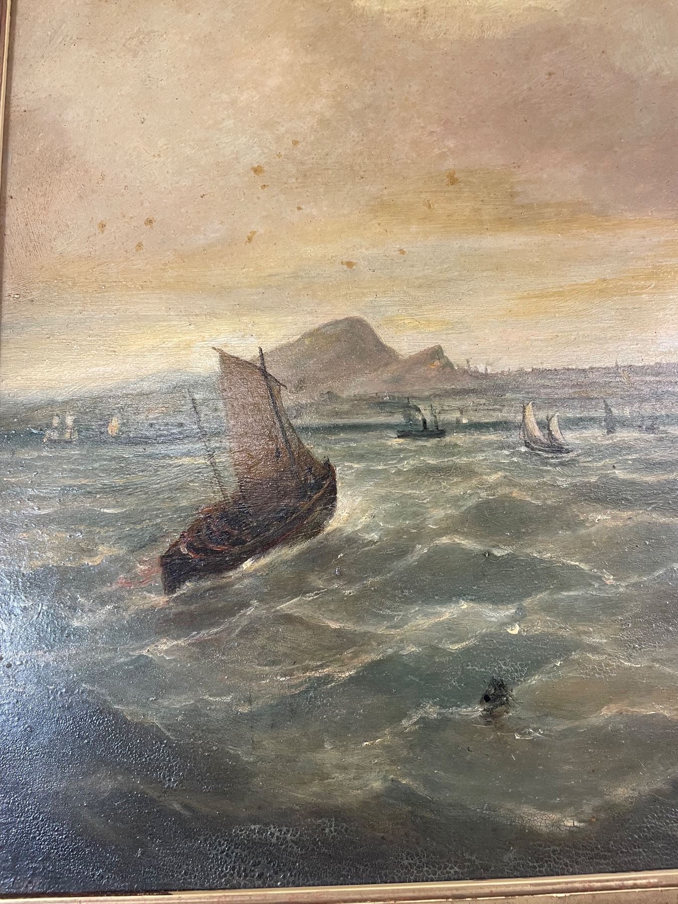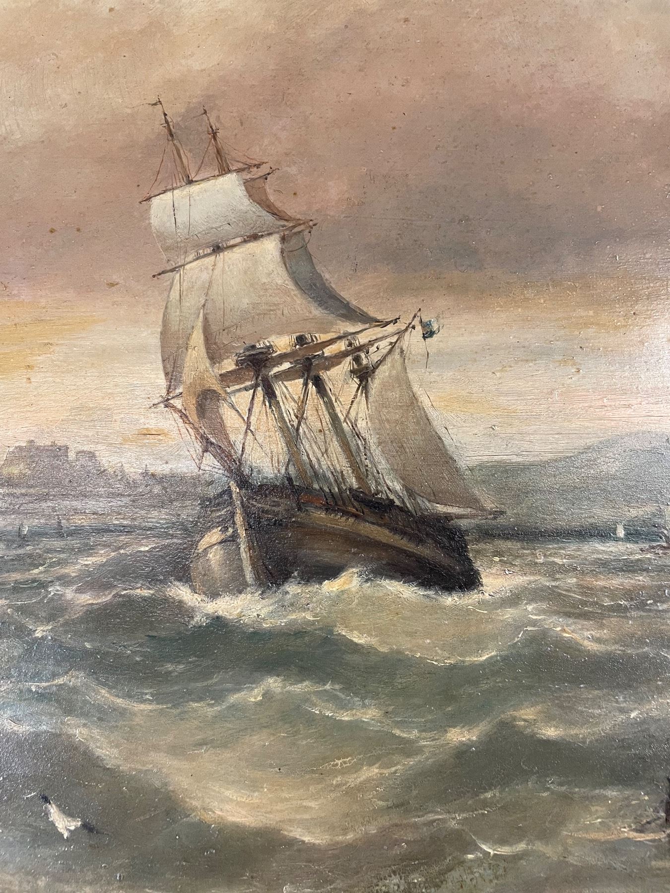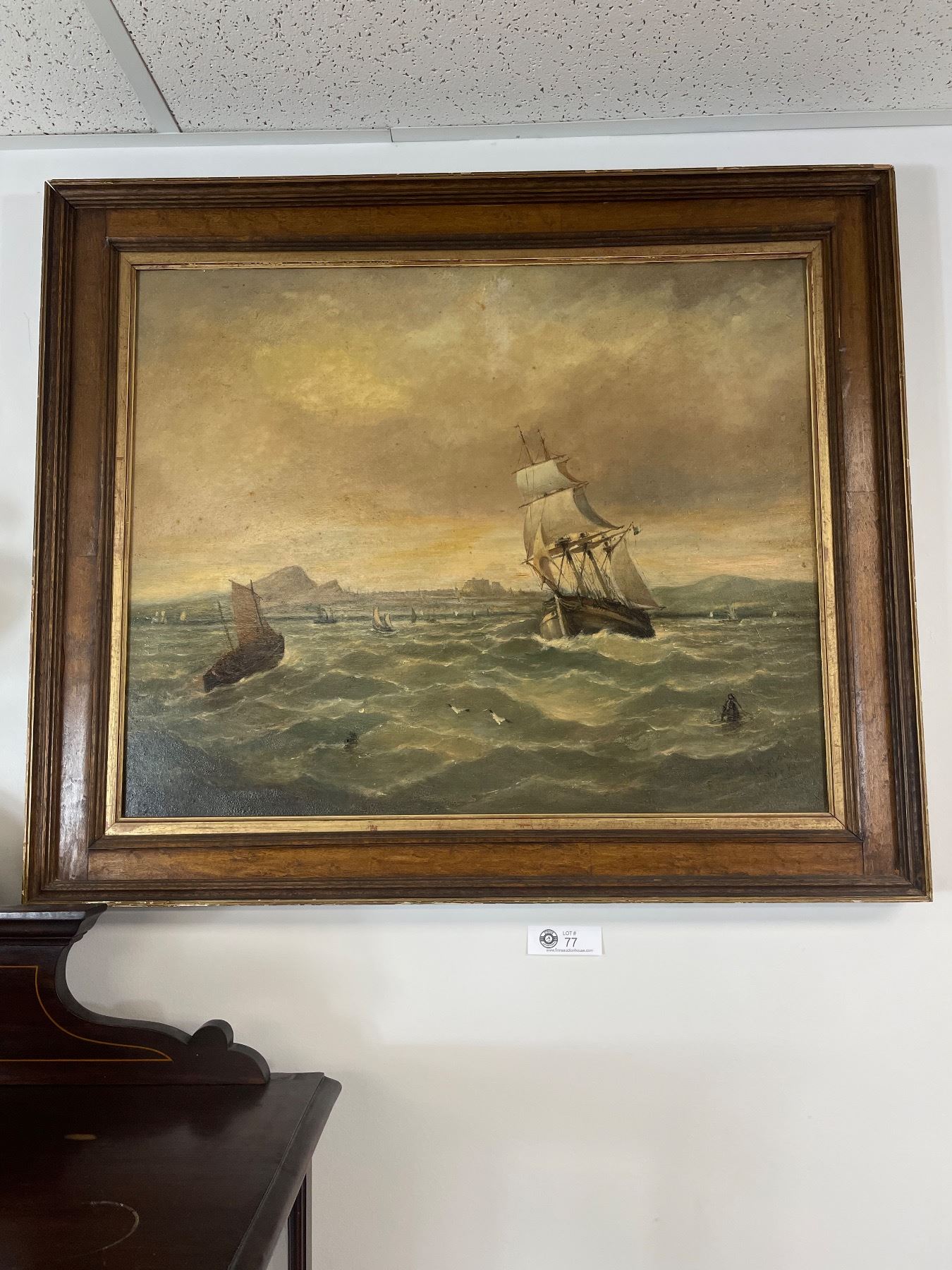 Very Nice 19th Century 33' X 28" Framed Painting of Ships at Sea
