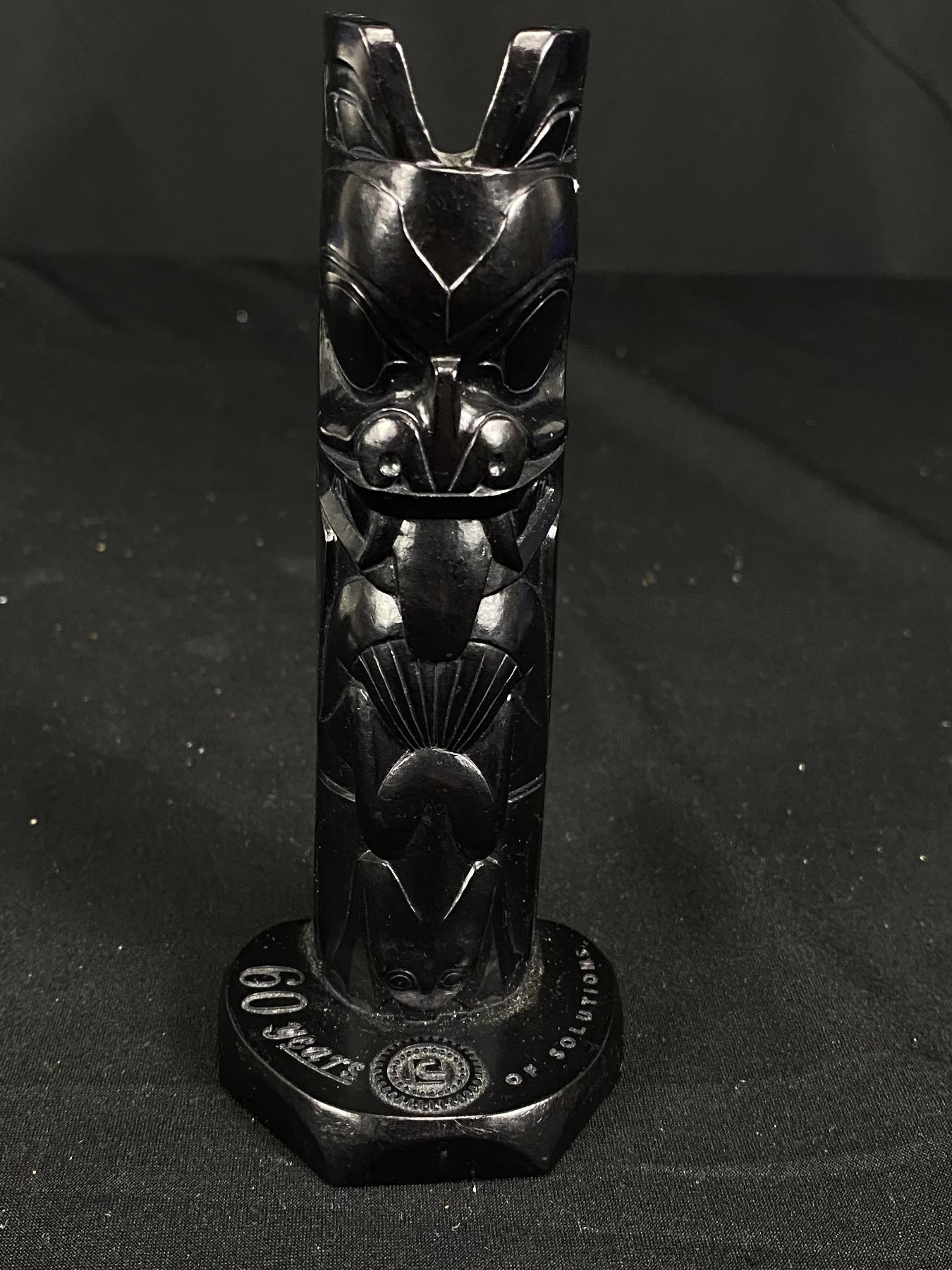 Very Nice Boma Totem Pole - Made of Black Resin 1960s Stamped Boma Canada - Excellent Condition