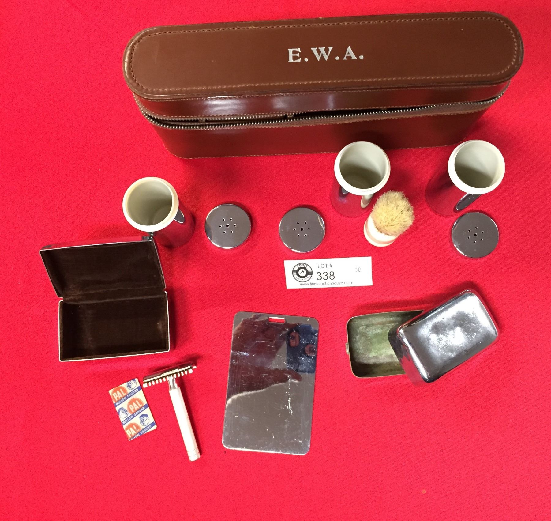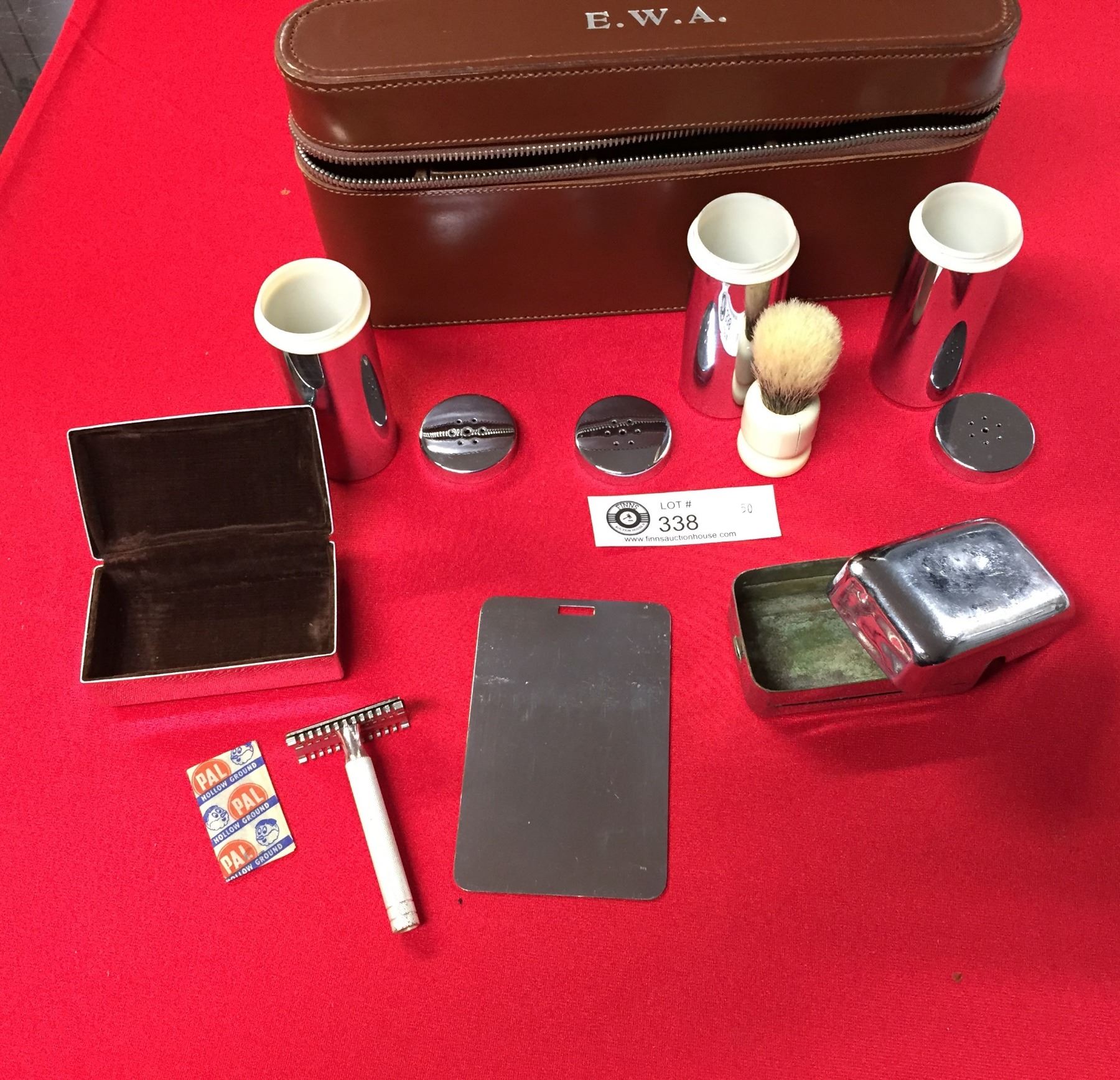 Very Nice Businessman's Travelling Shaving Kit 11"w x 5"h x 2.5" deep