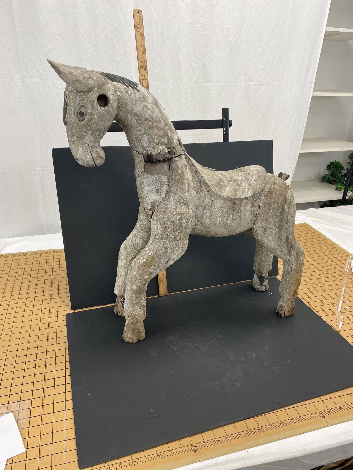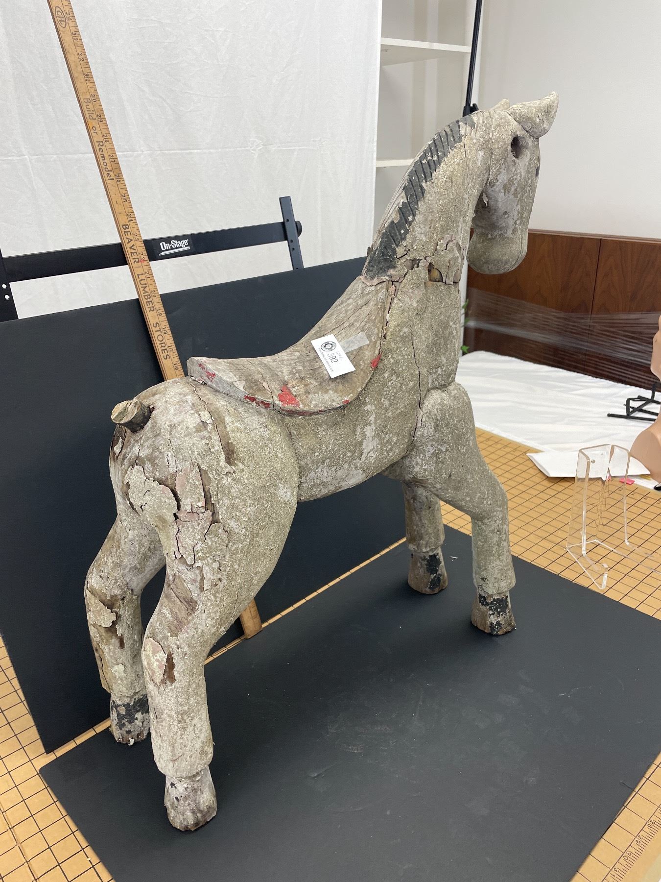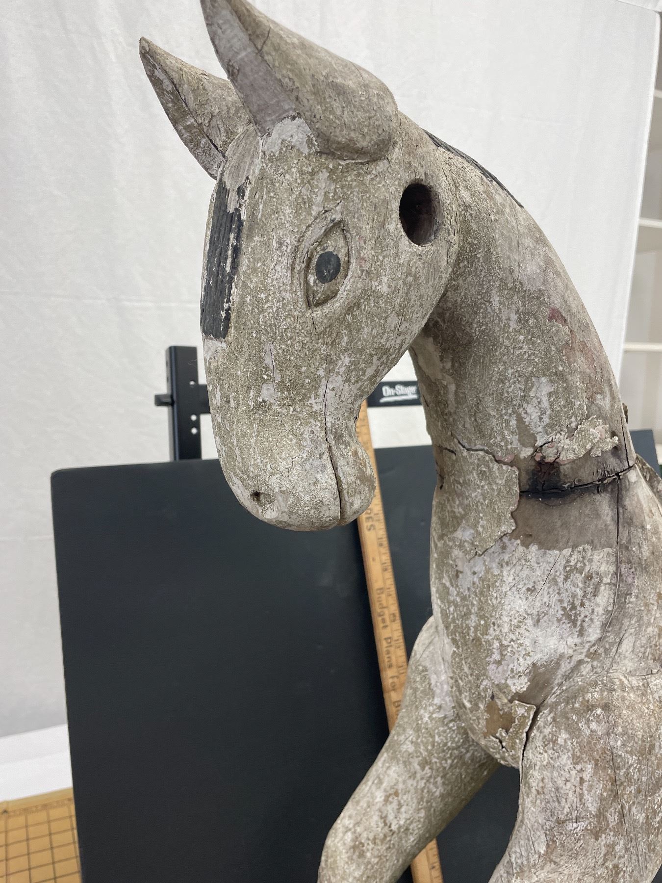 Very Nice Folk Art Solid Wood Painted Horse Paint Flaking But Displays Very Well