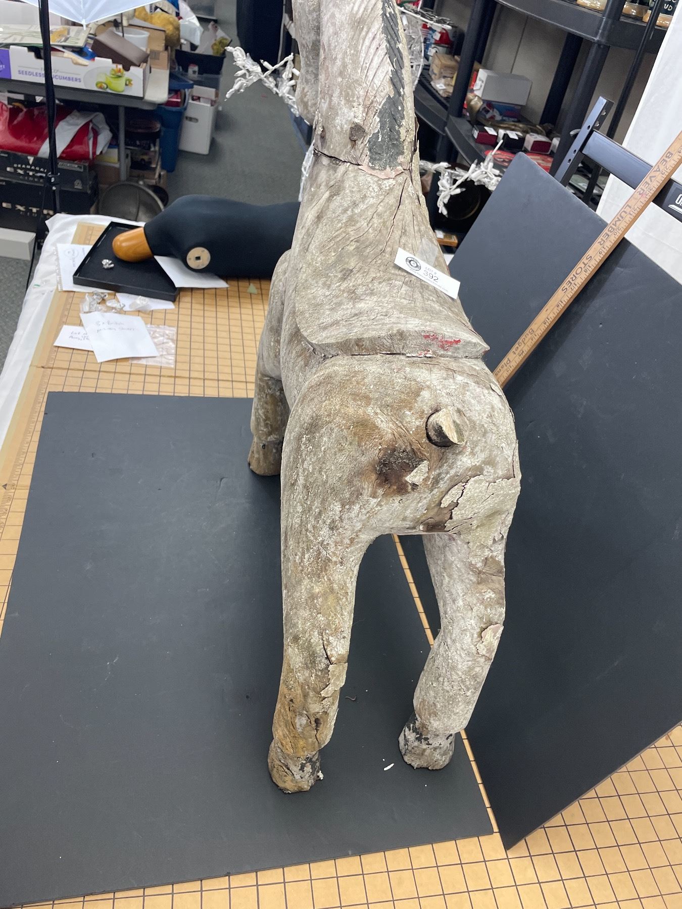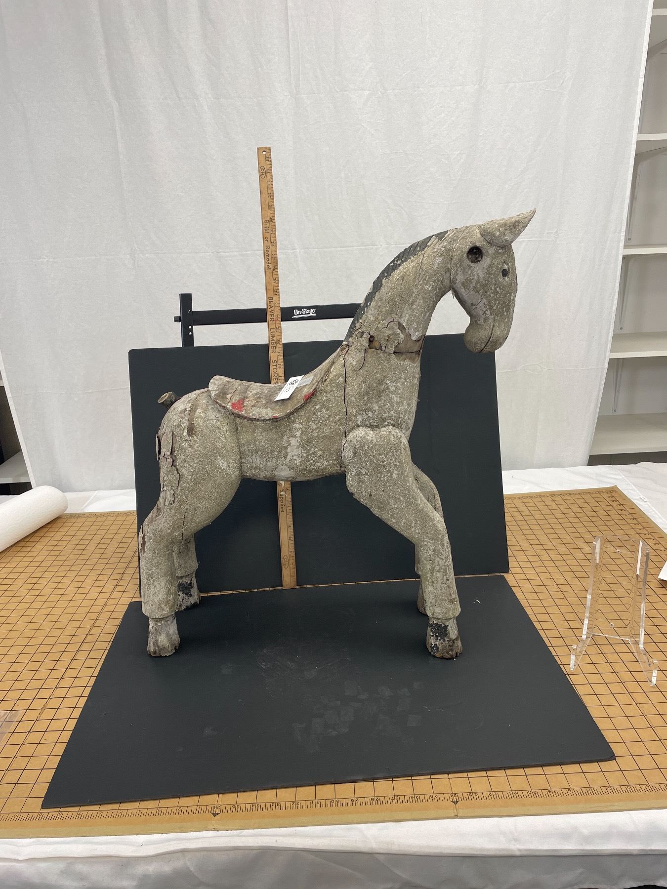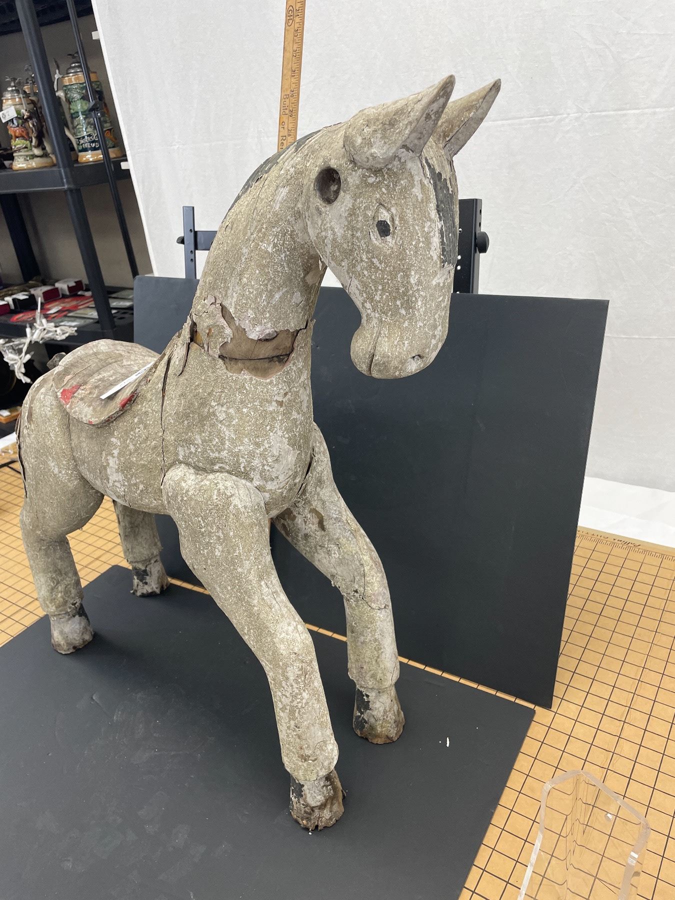 Very Nice Folk Art Solid Wood Painted Horse Paint Flaking But Displays Very Well