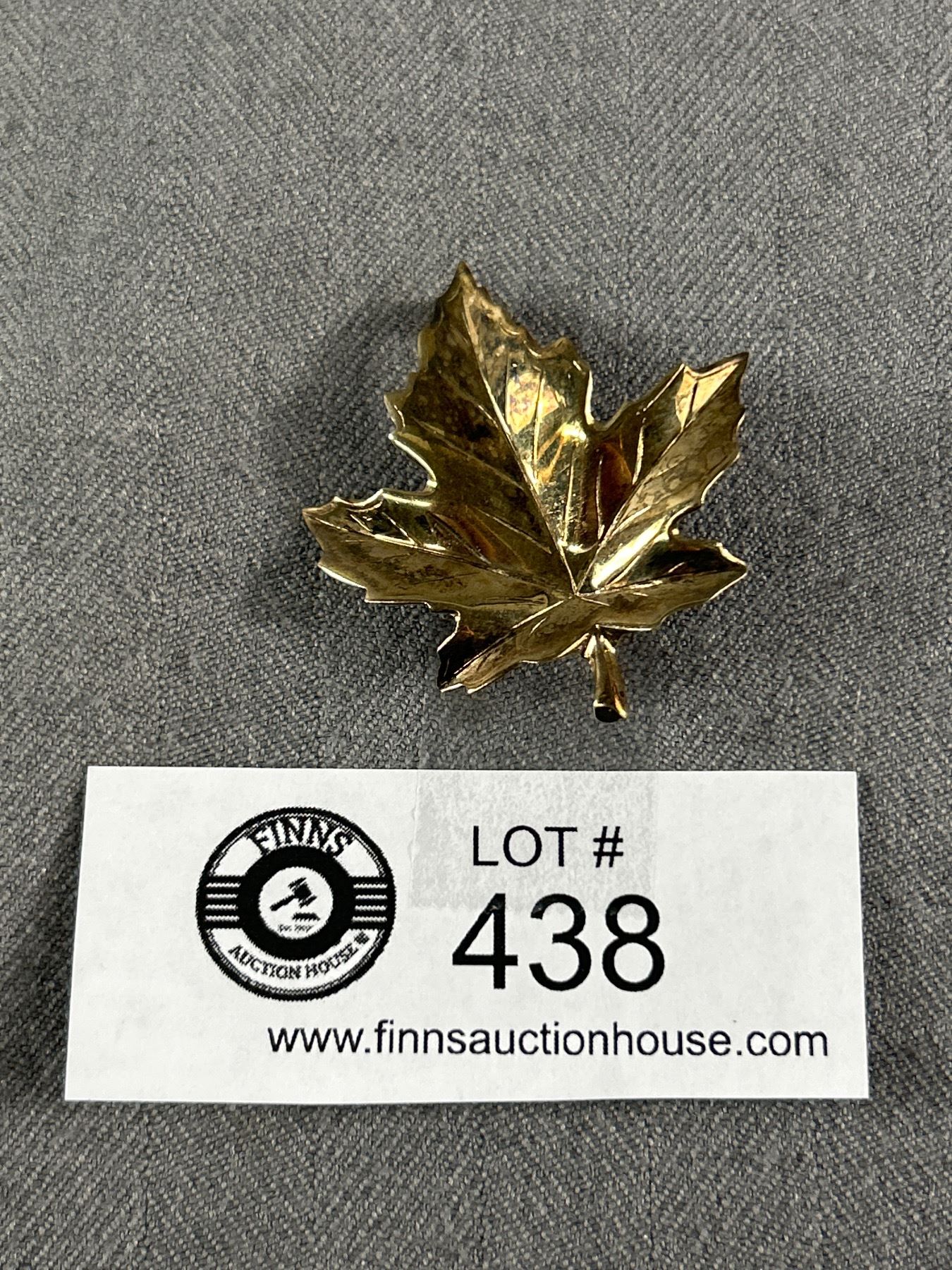 Very Nice Gilded Birks Sterling Maple Leaf Brooch Large