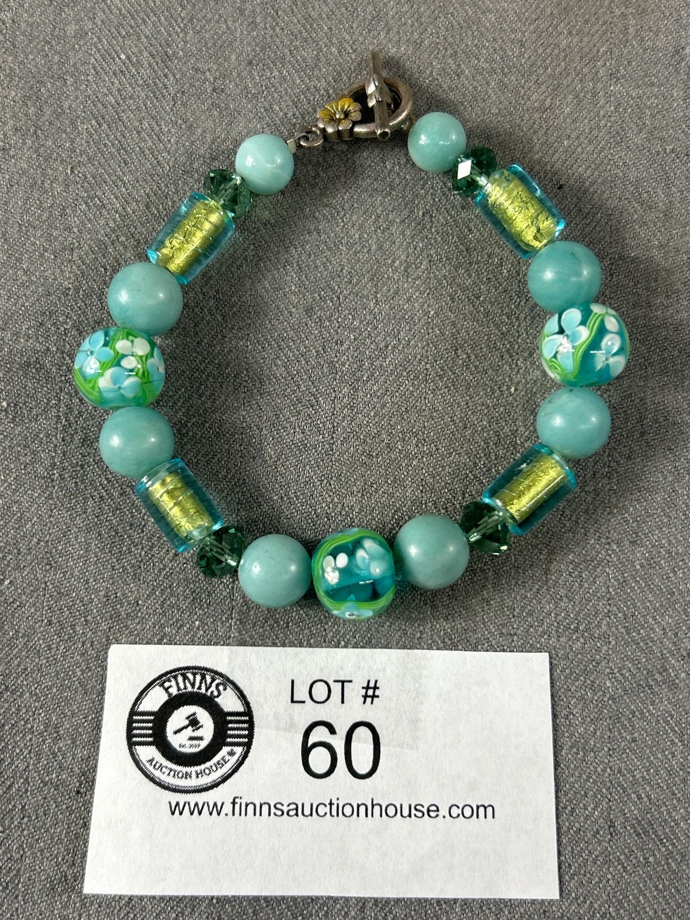 Very Nice Glass Bead Bracelet w/ Silver Clasp