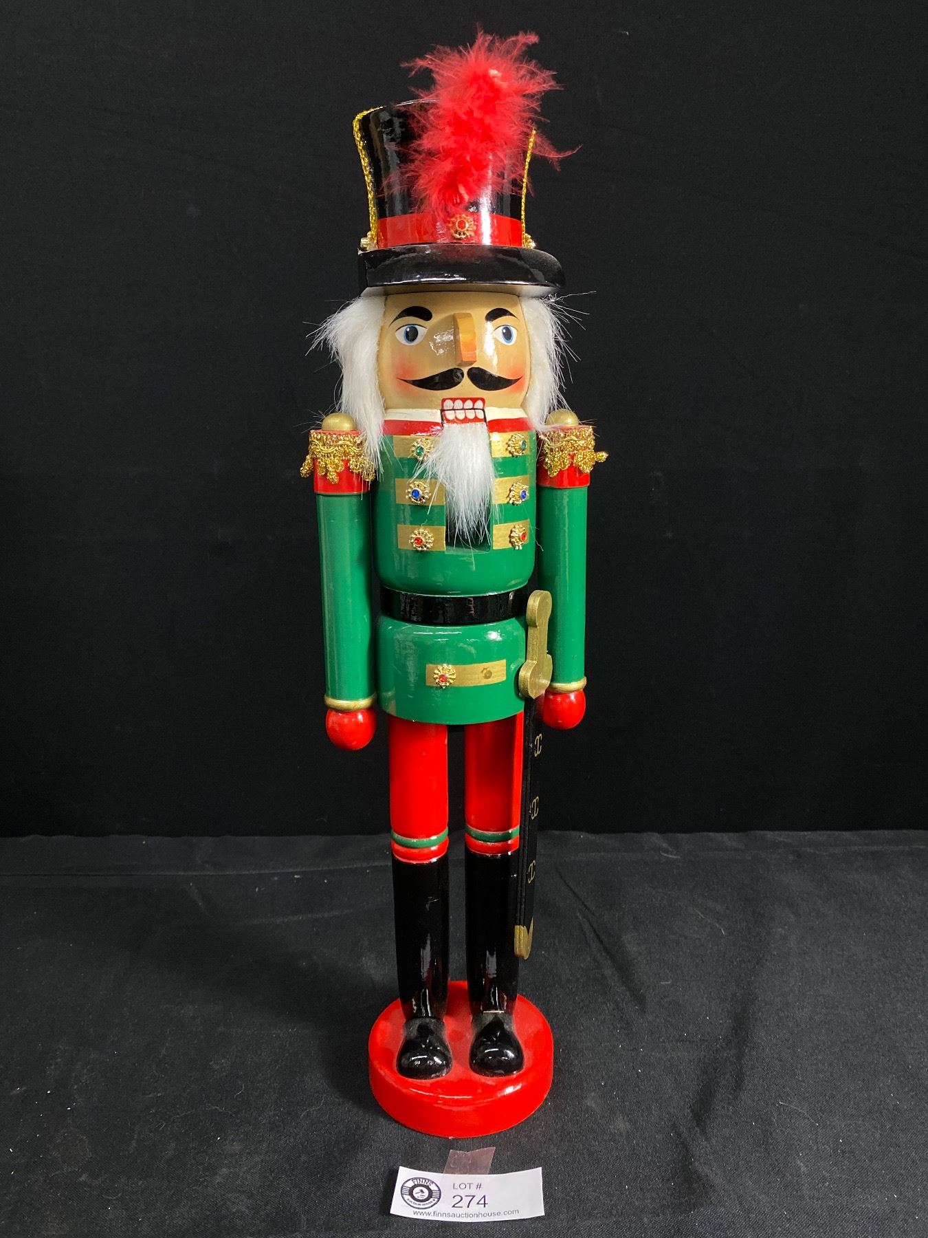 Very Nice Green Guard Wooden Nut Cracker. Approx. 17" Tall