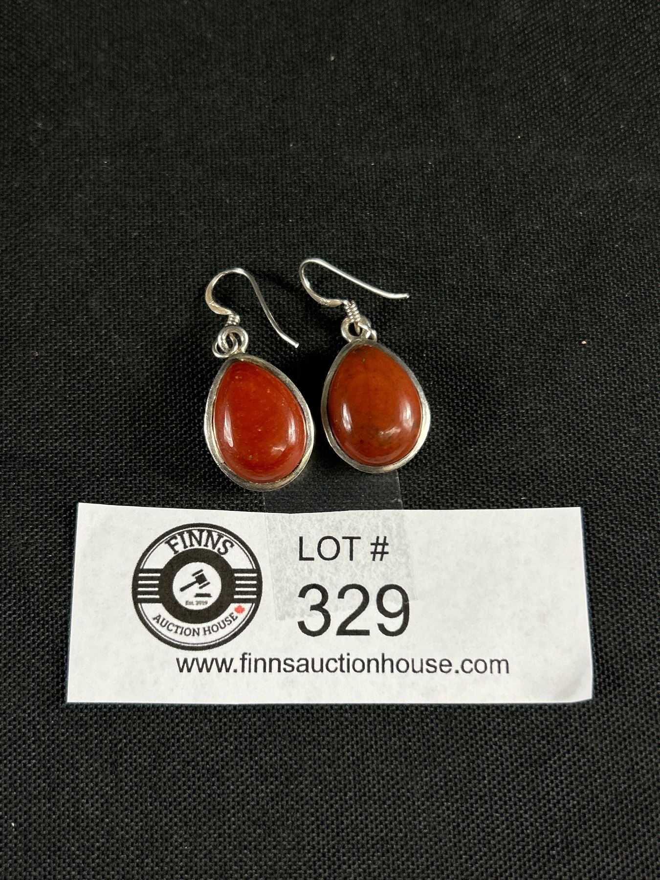 Very Nice Pair of Sterling + Red Stone Earrings