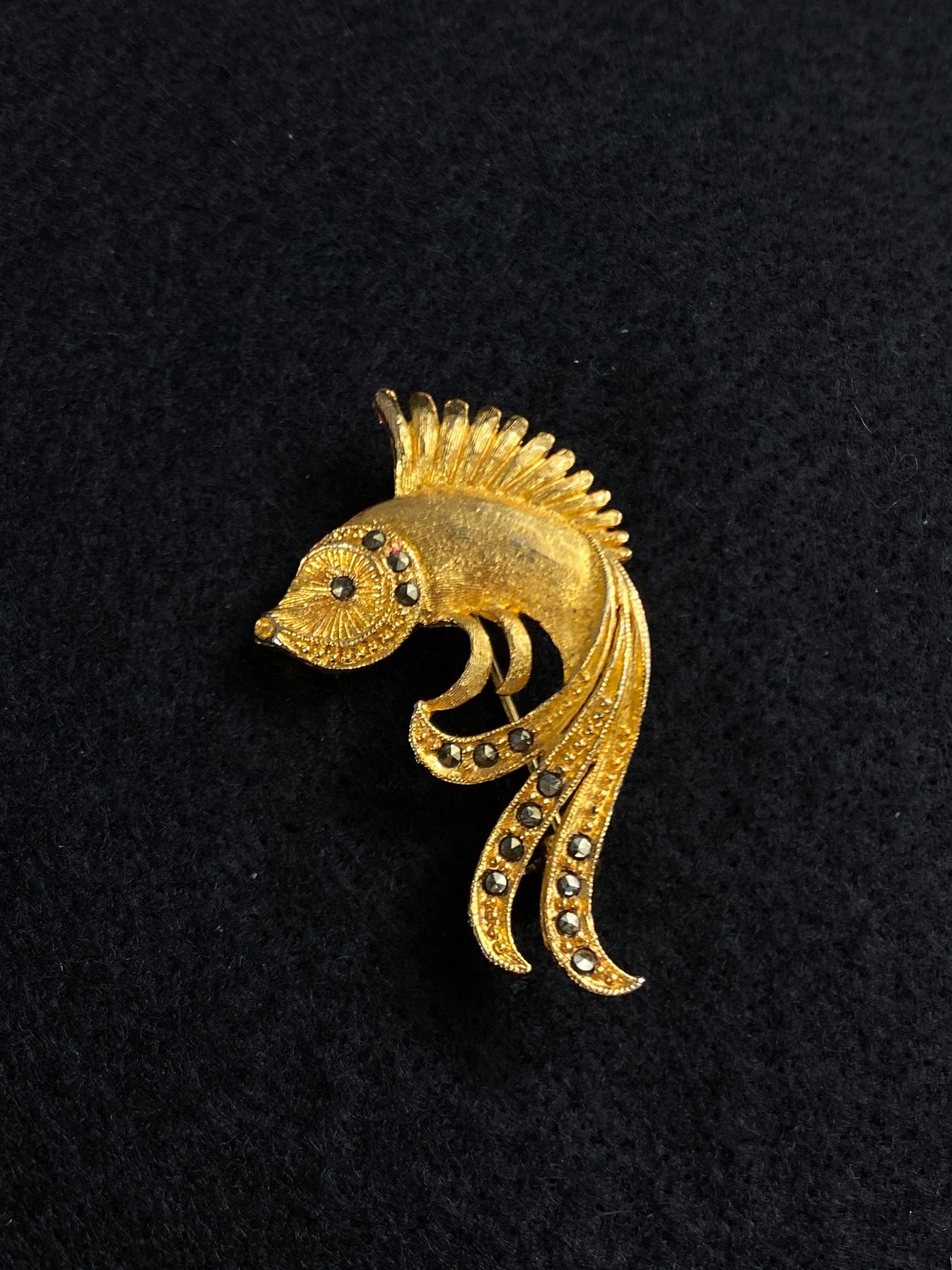 Very Nice Siameses Fighting Fish Brooch 1960s Set with Marcasite