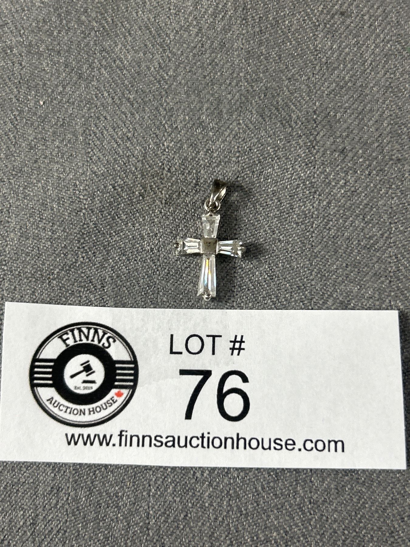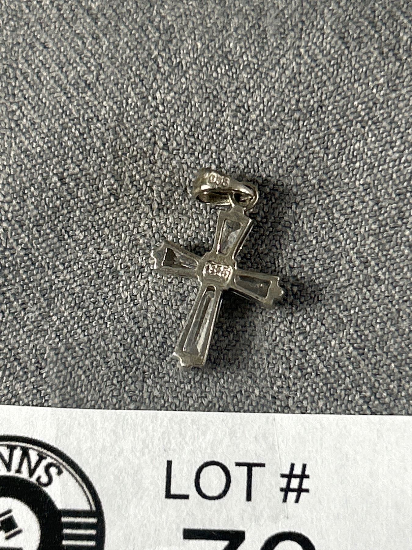 Very Nice Small Sterling & Stone Set Cross/Pendant