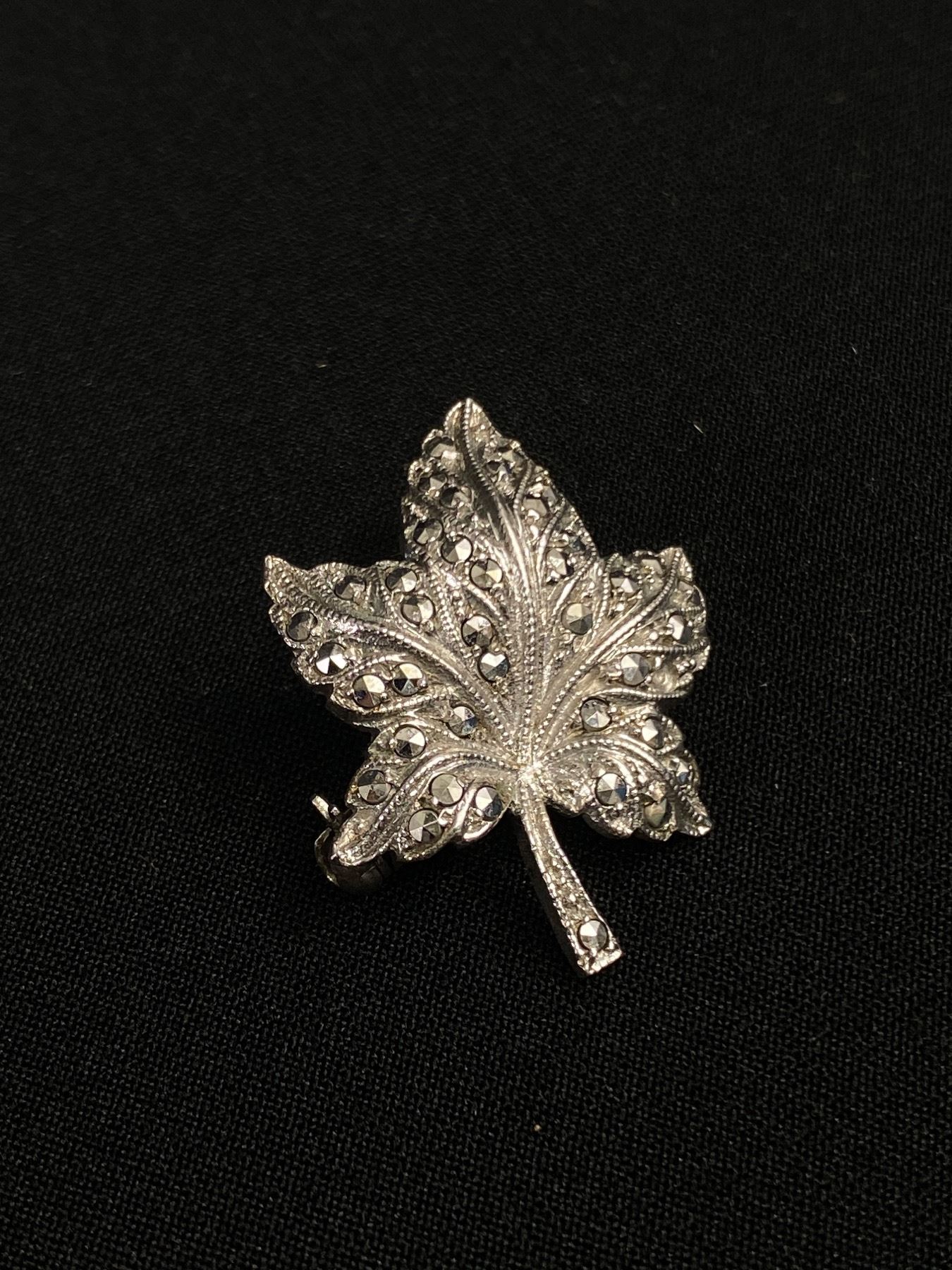 Very Nice Sterling & Marcasite Maple Leaf Brooch