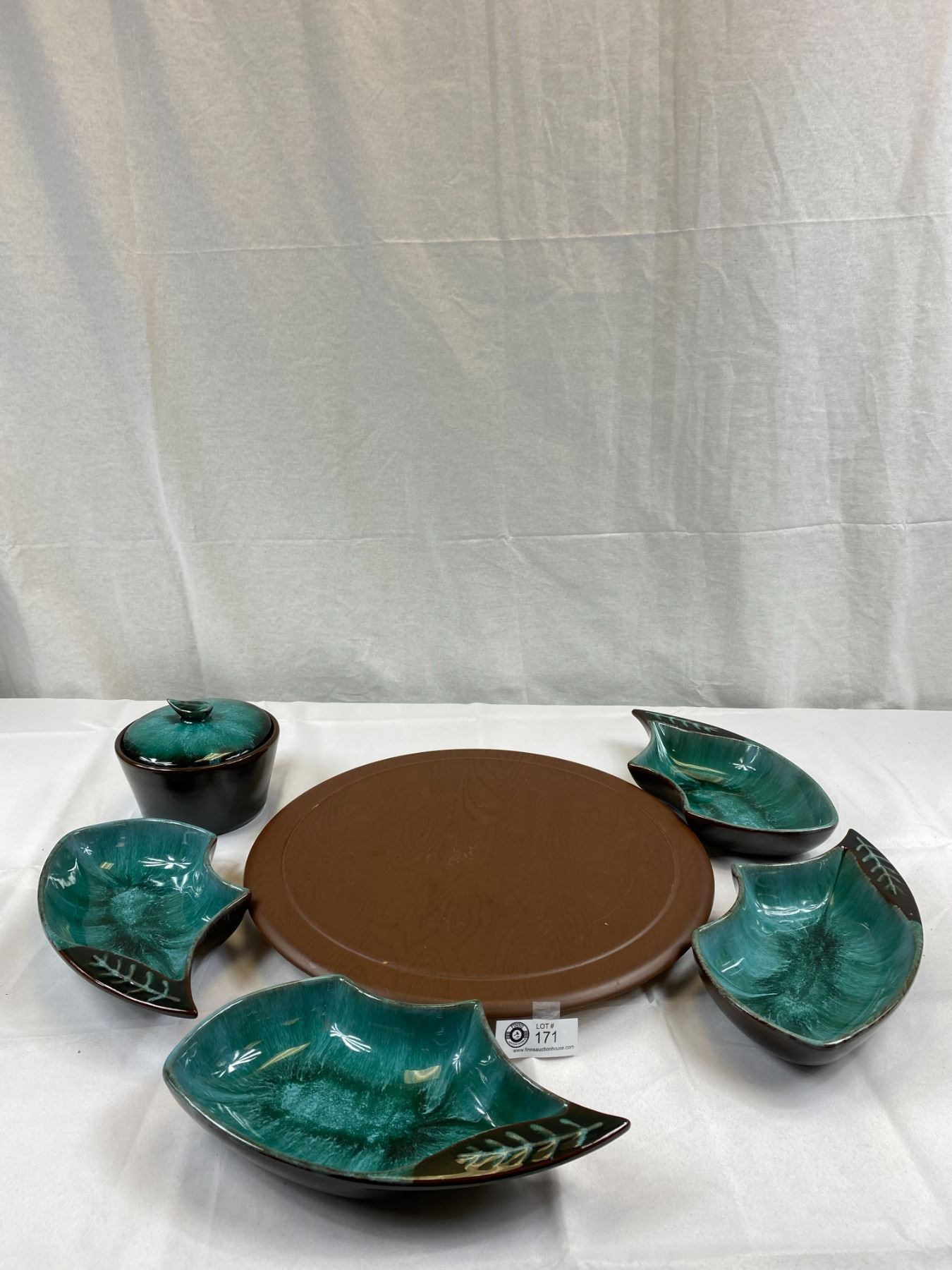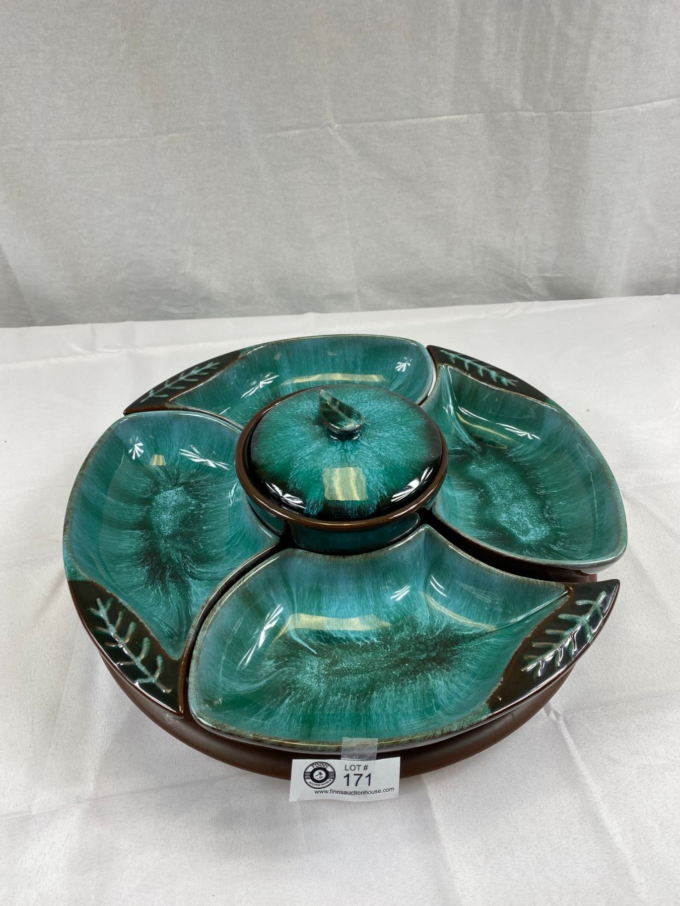 Very Nice Vintage Blue Mountain Pottery Lazy Susan With Serving Dishes