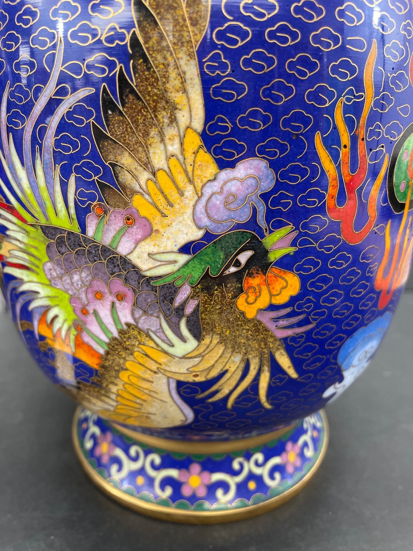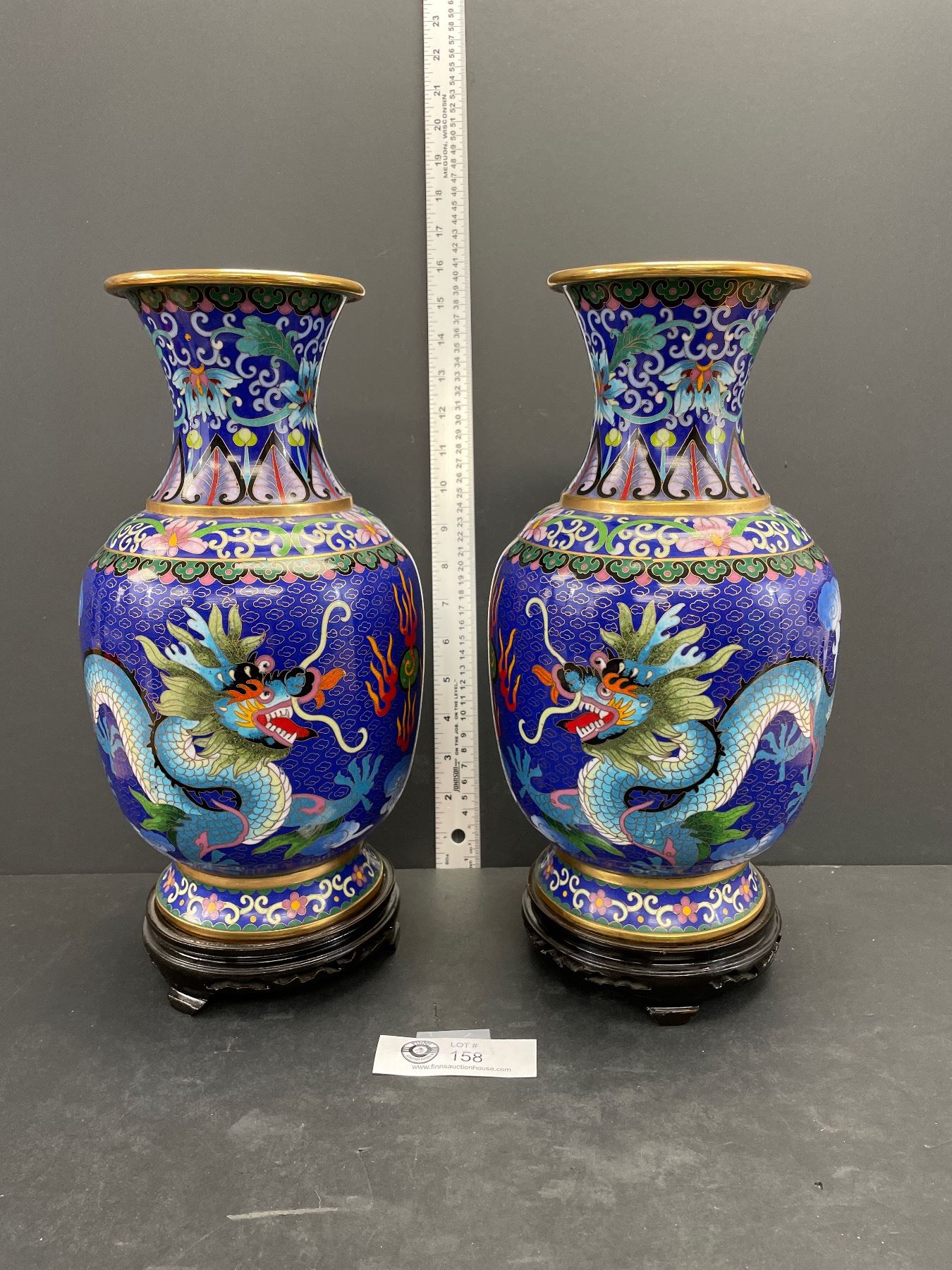Very Nice Vintage Cloisonne Asian Vases on Wooden Stands 14" H