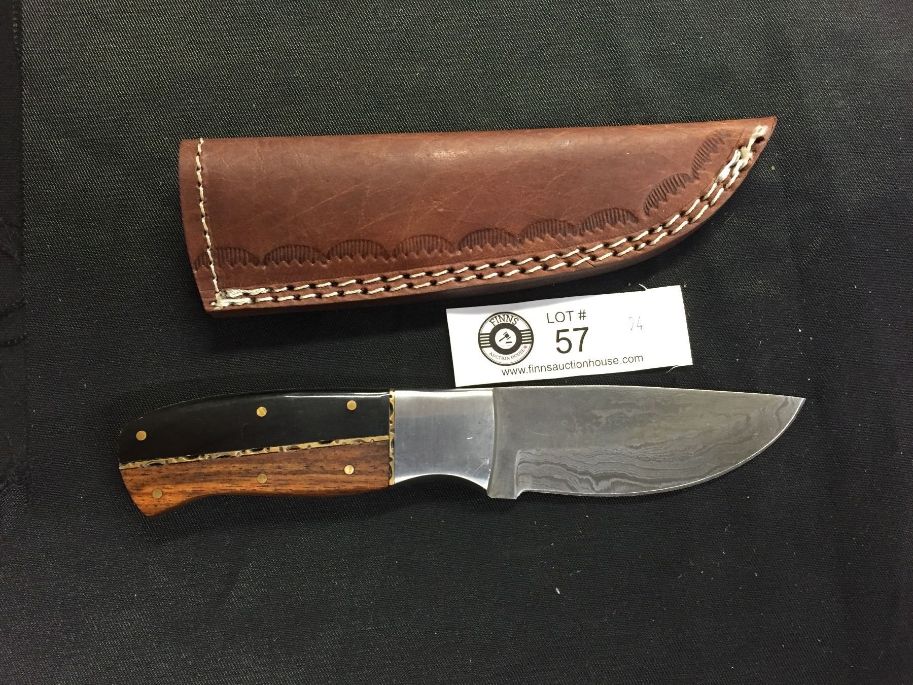 Very Nicely Made Damascus Knife with Leather Sheath. Nice Quality