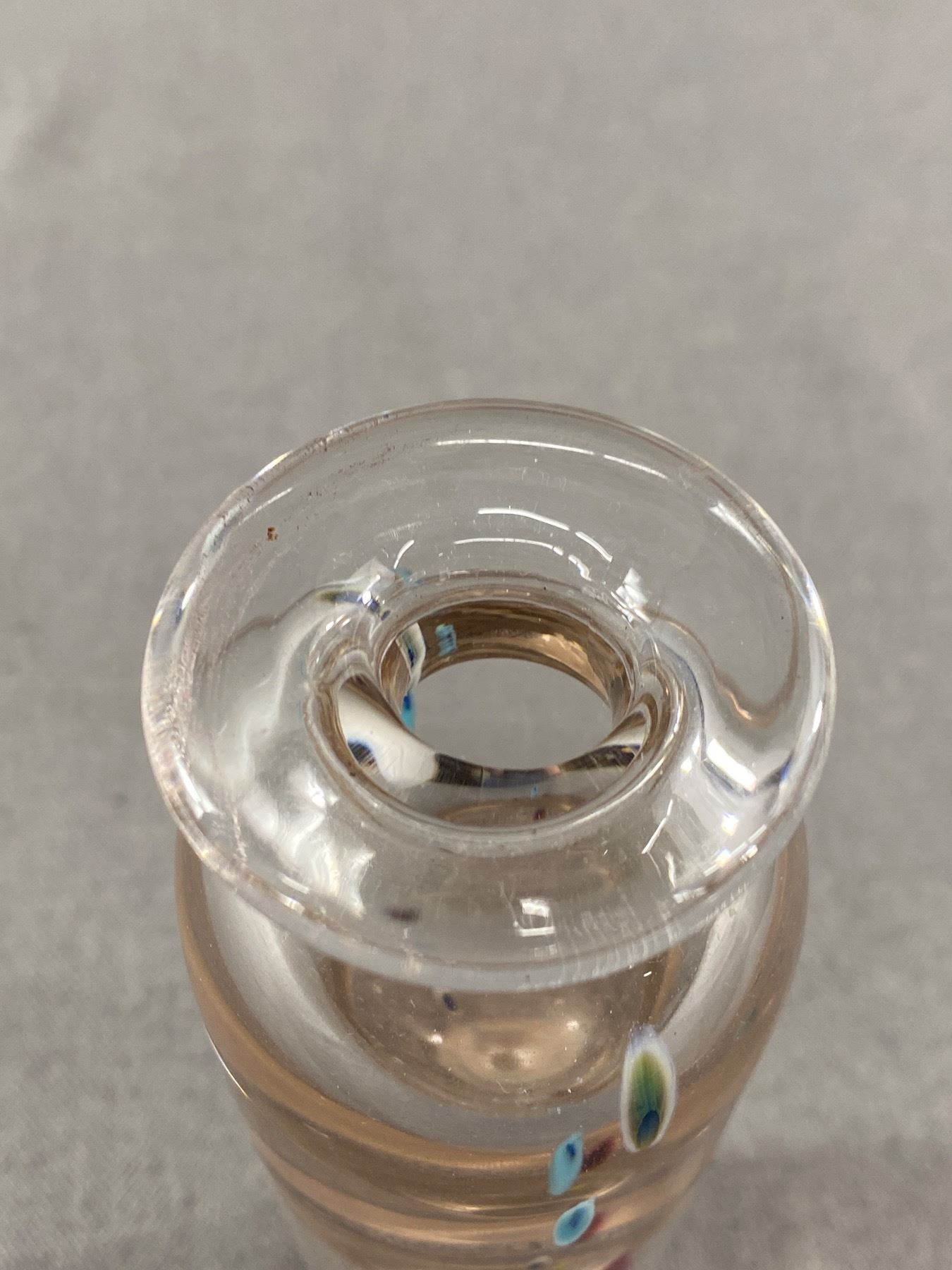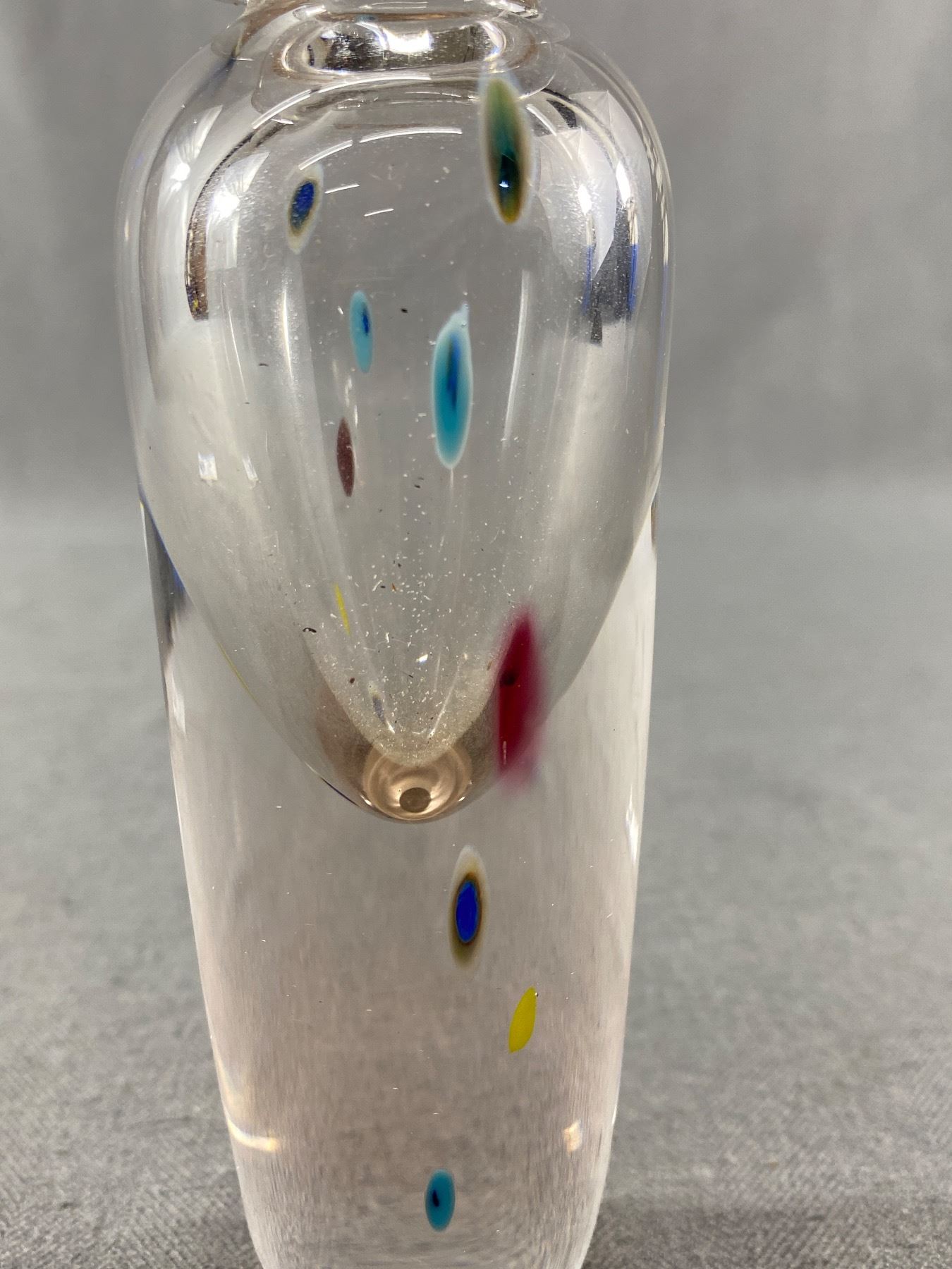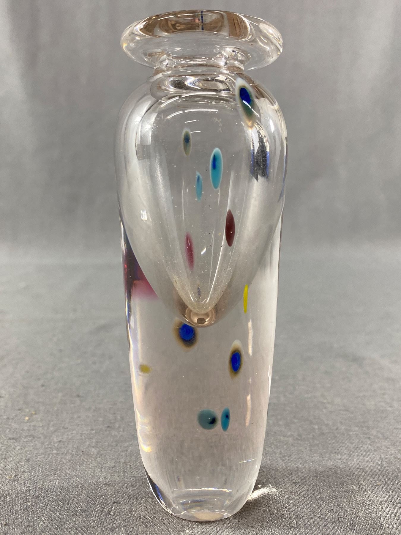Very Pretty Blown Glass Bud Vase - Clear w/Controlled Drops Of Colour