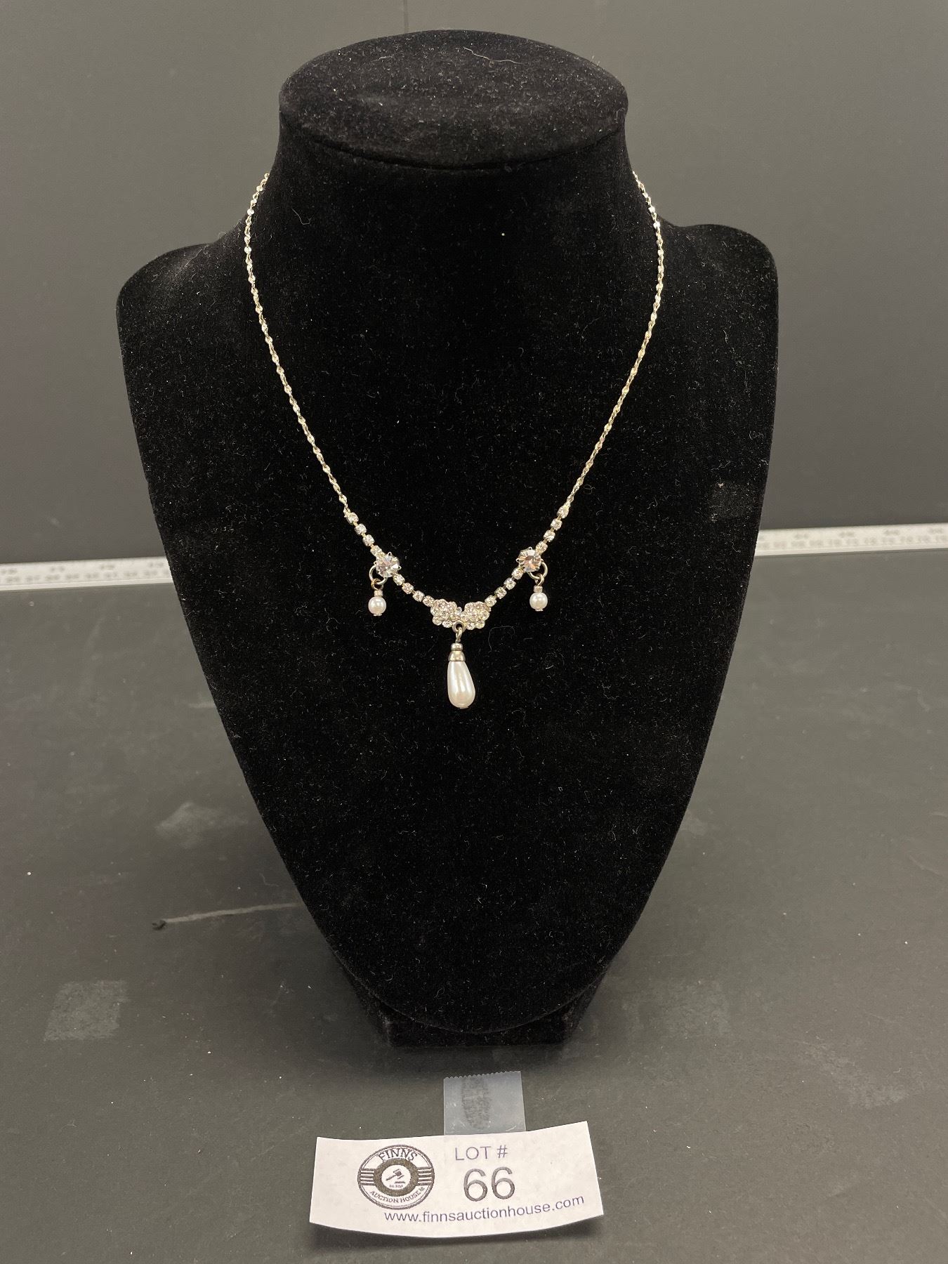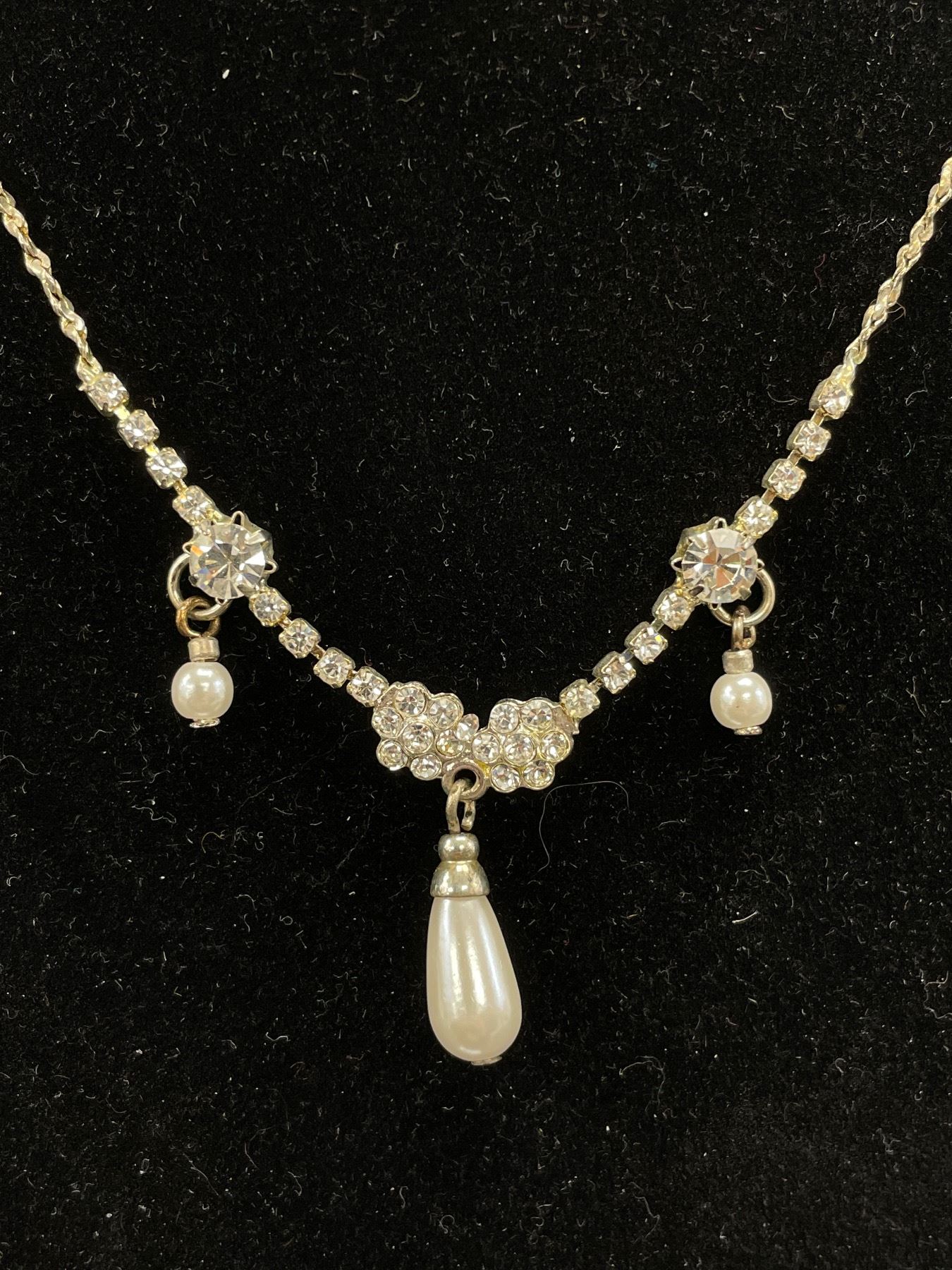 Very Pretty Faux Pearl and Rhinestone Necklace