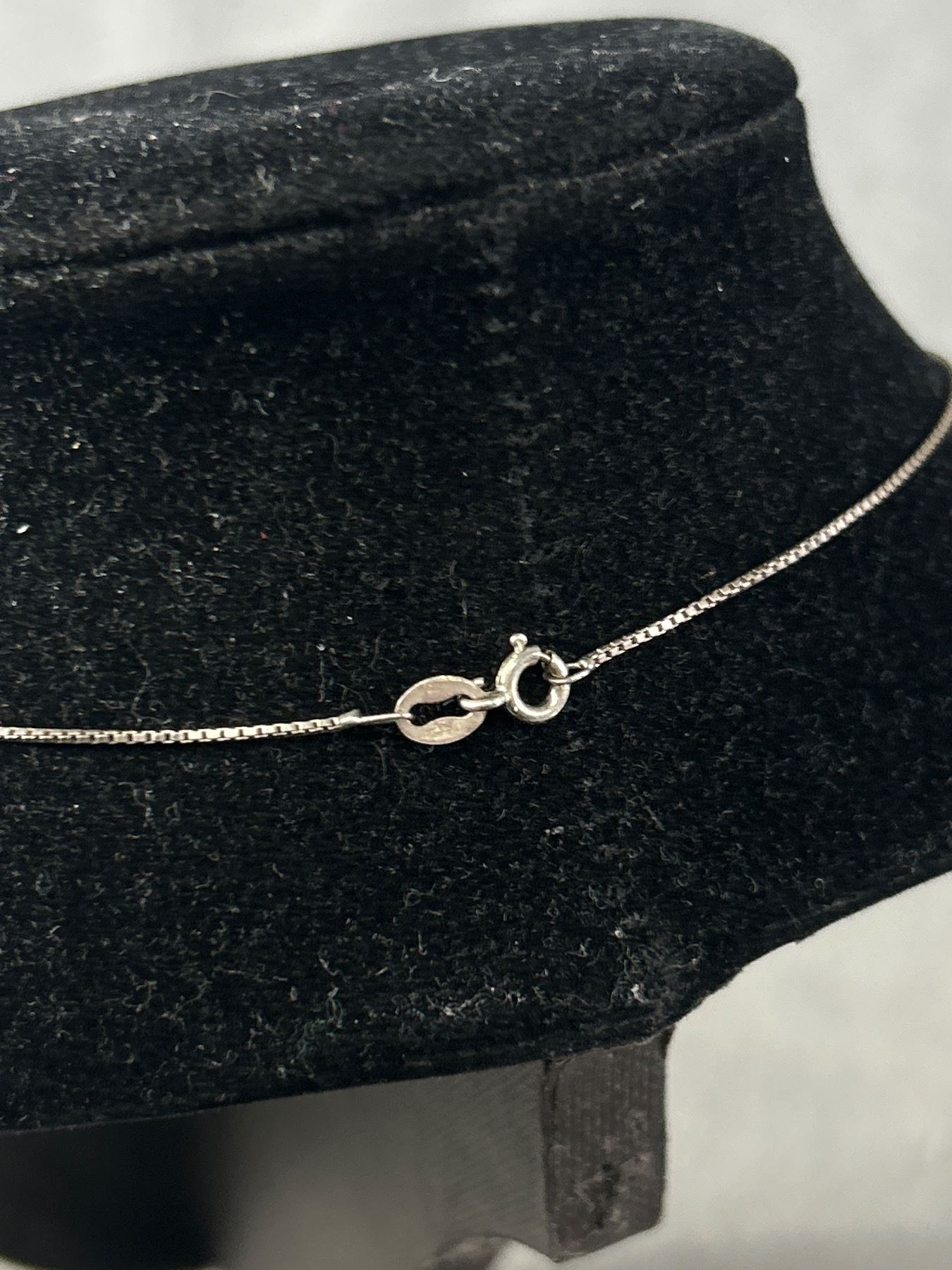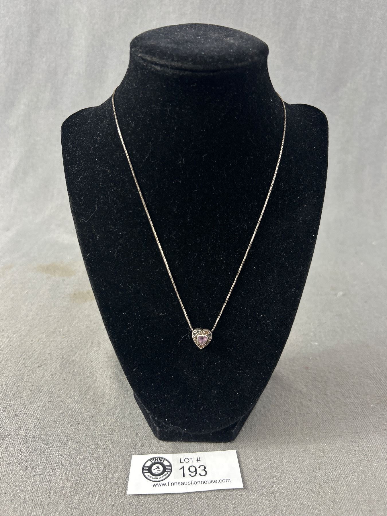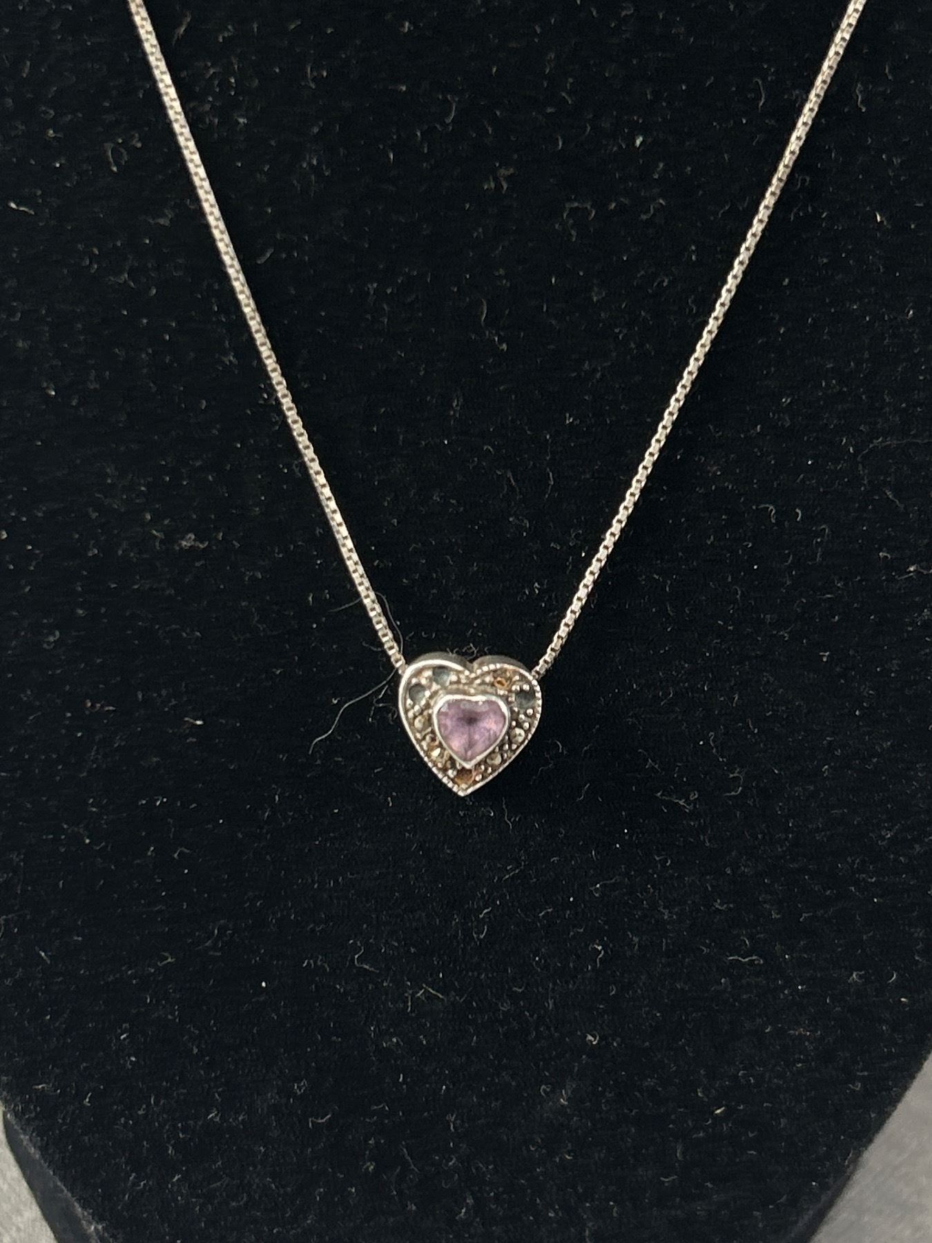 Very Pretty Vintage Sterling Silver Pendant with Amethyst Stone on a Very Fine Sterling Slver Chain Marked 925