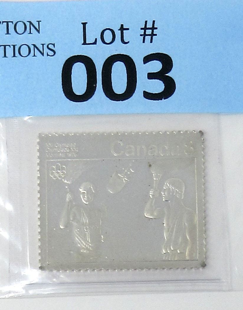 1/2 Ounce of .999 fine silver. 1976 Montreal Olympic commemorative bar. Serrated edge. Mint sealed. Serial numbered. Tax exempt.