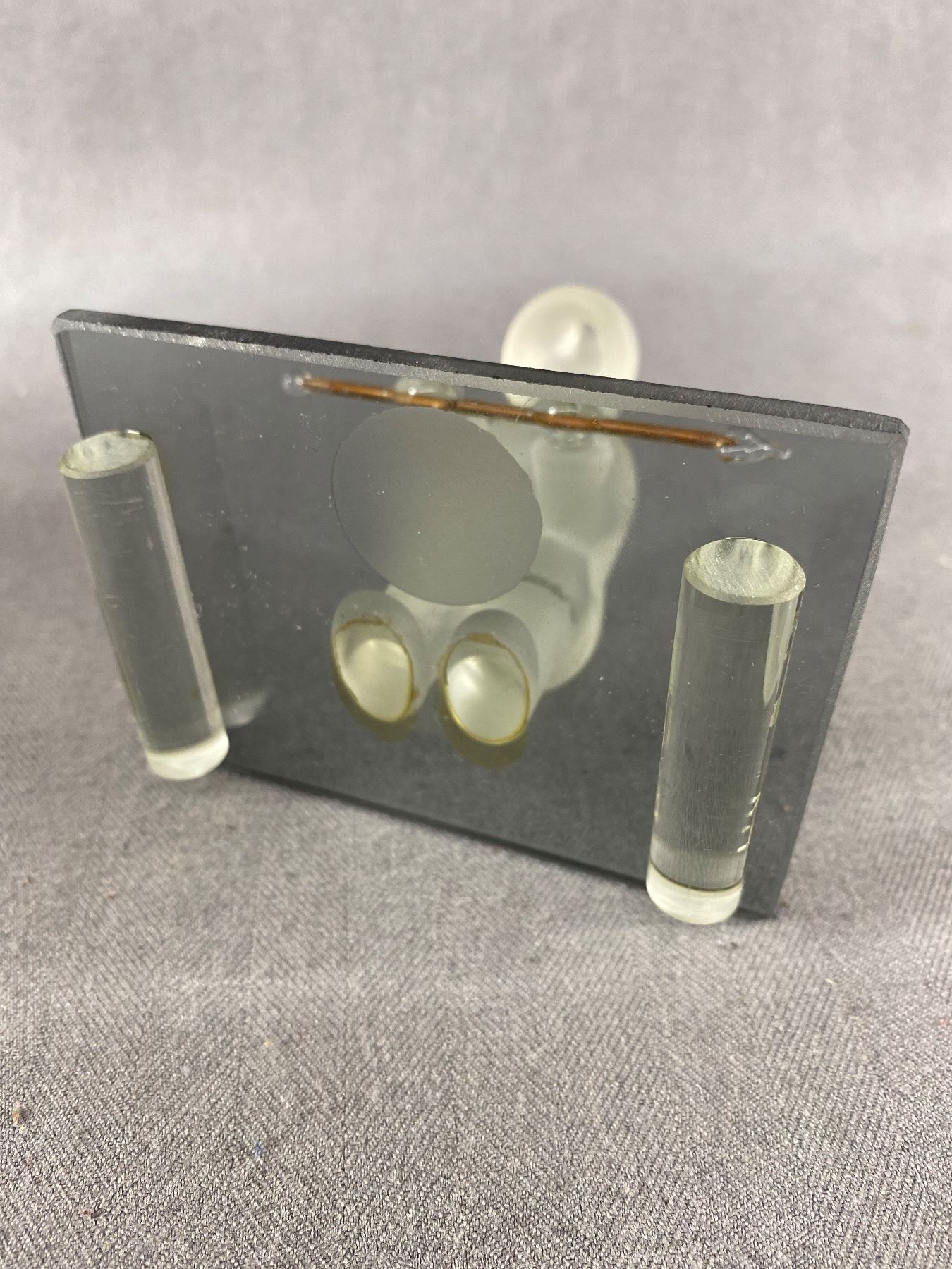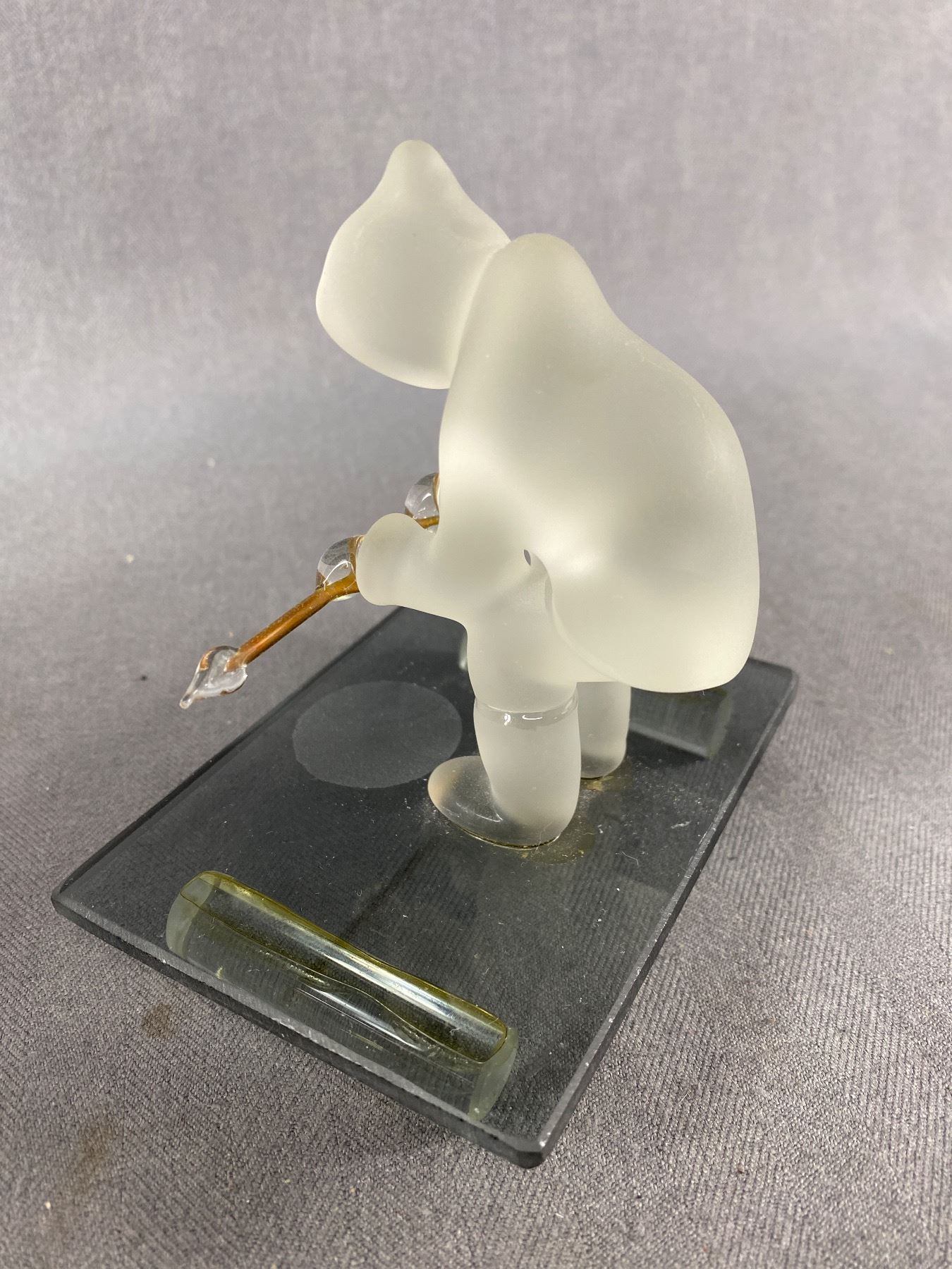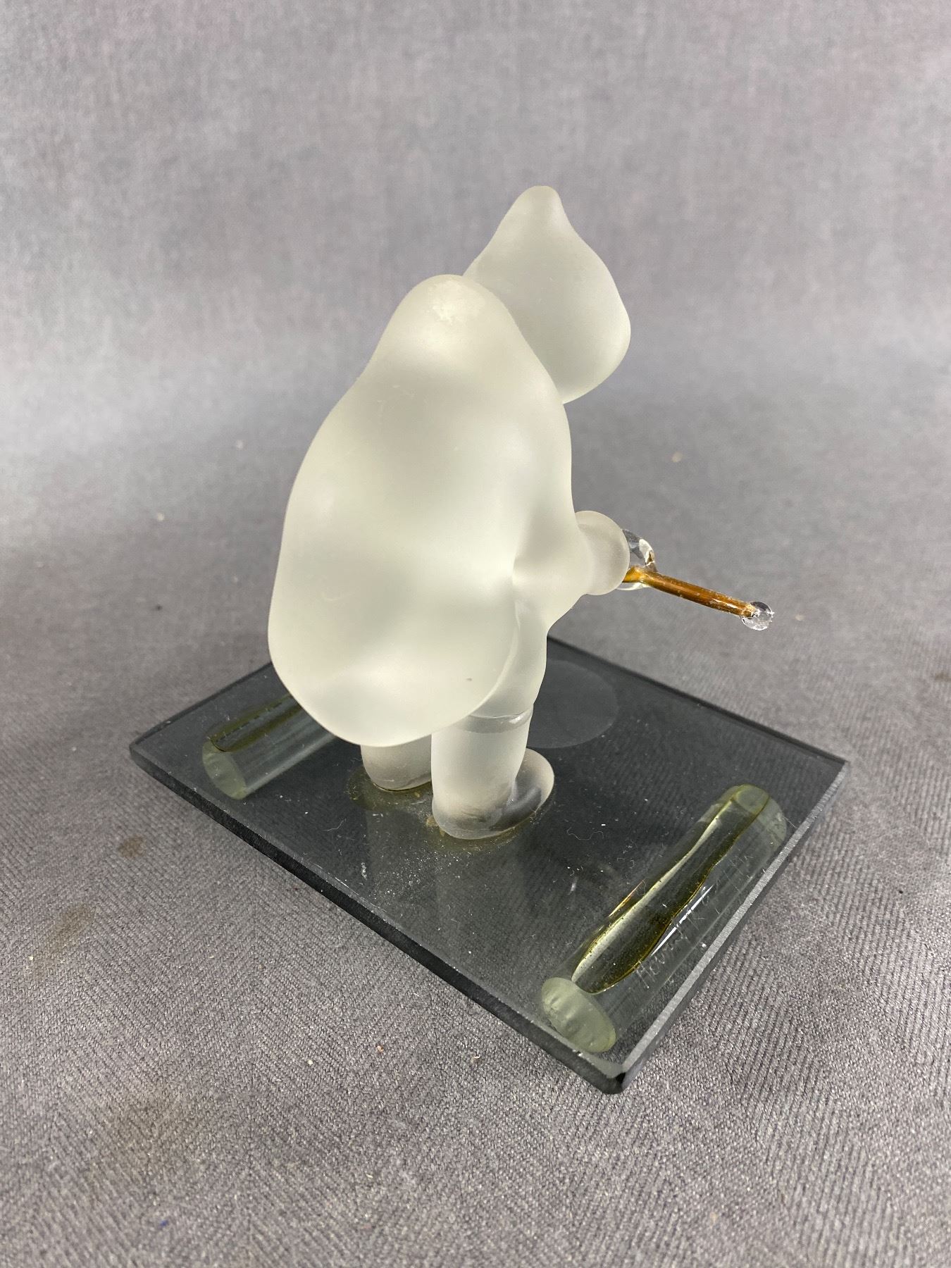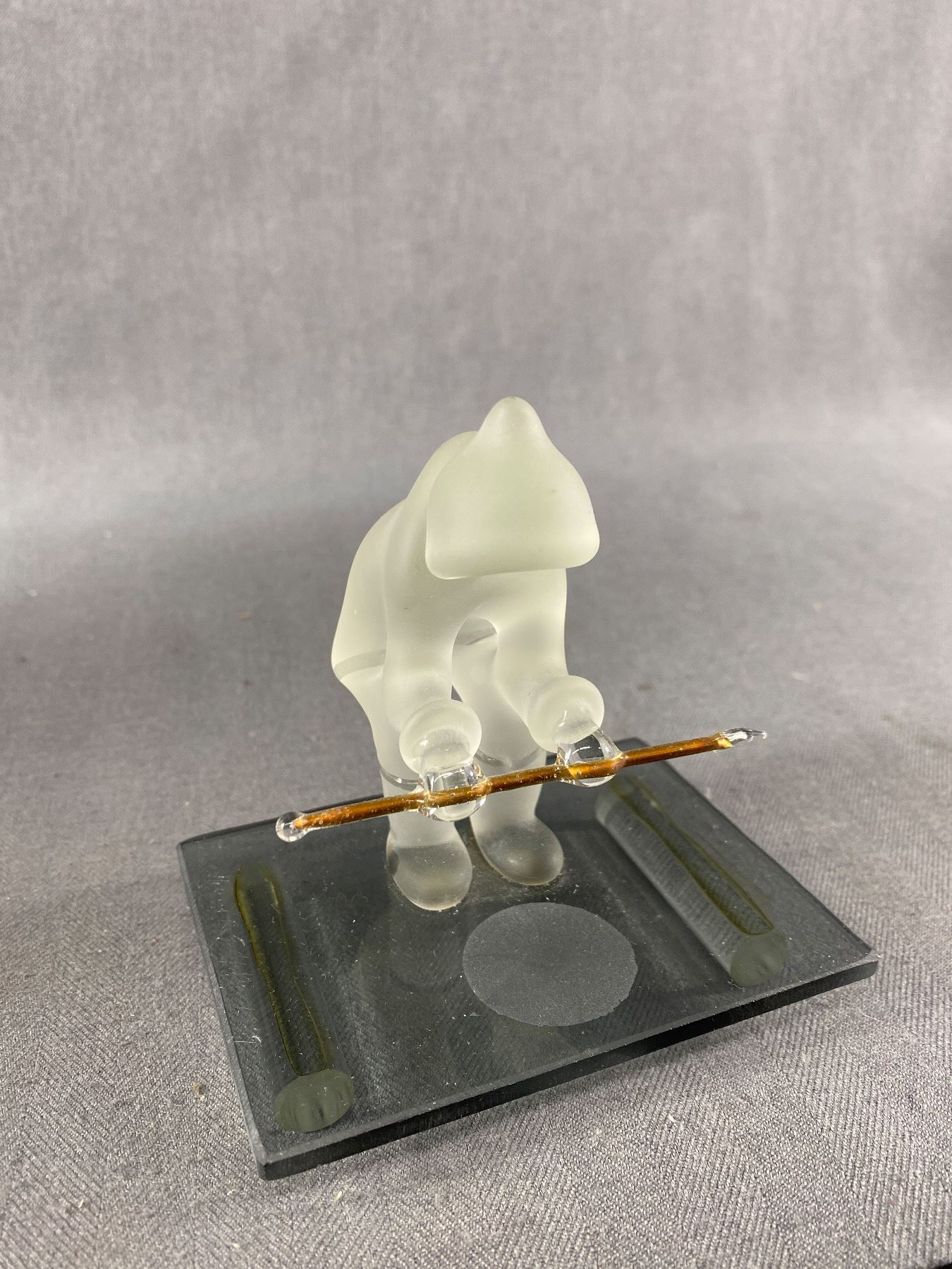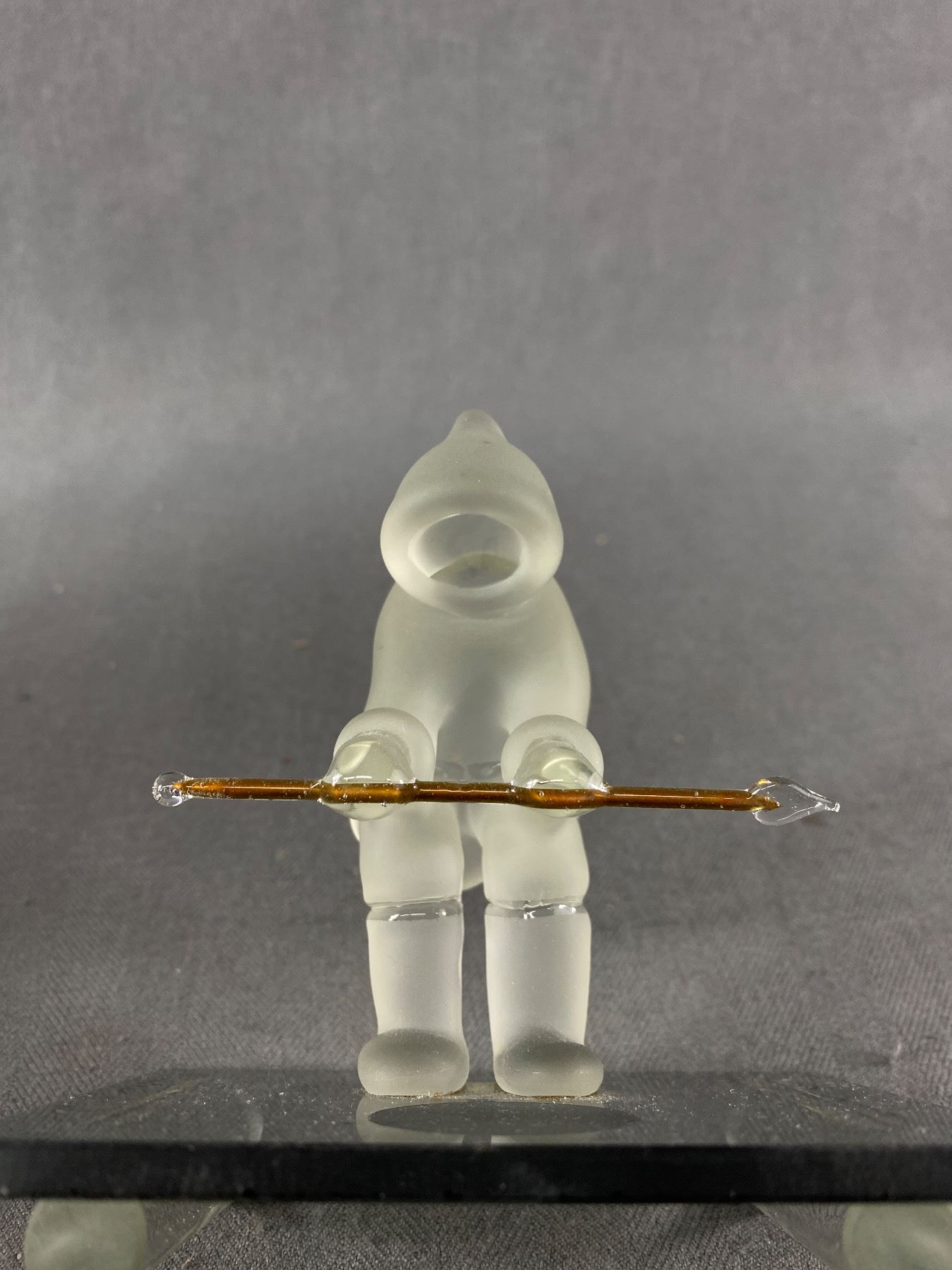 Very Unique Inuit Glass Sculpture, Man Hunting Seal Signed Howard R G____? 1989 Good Condition