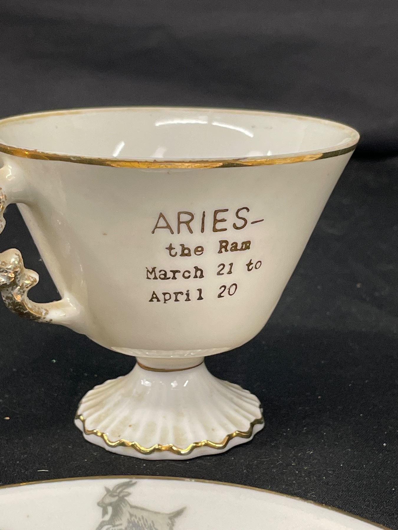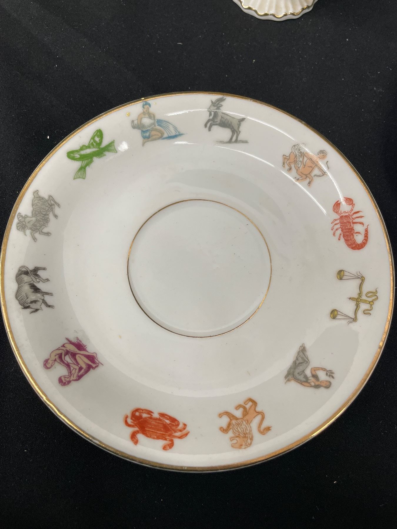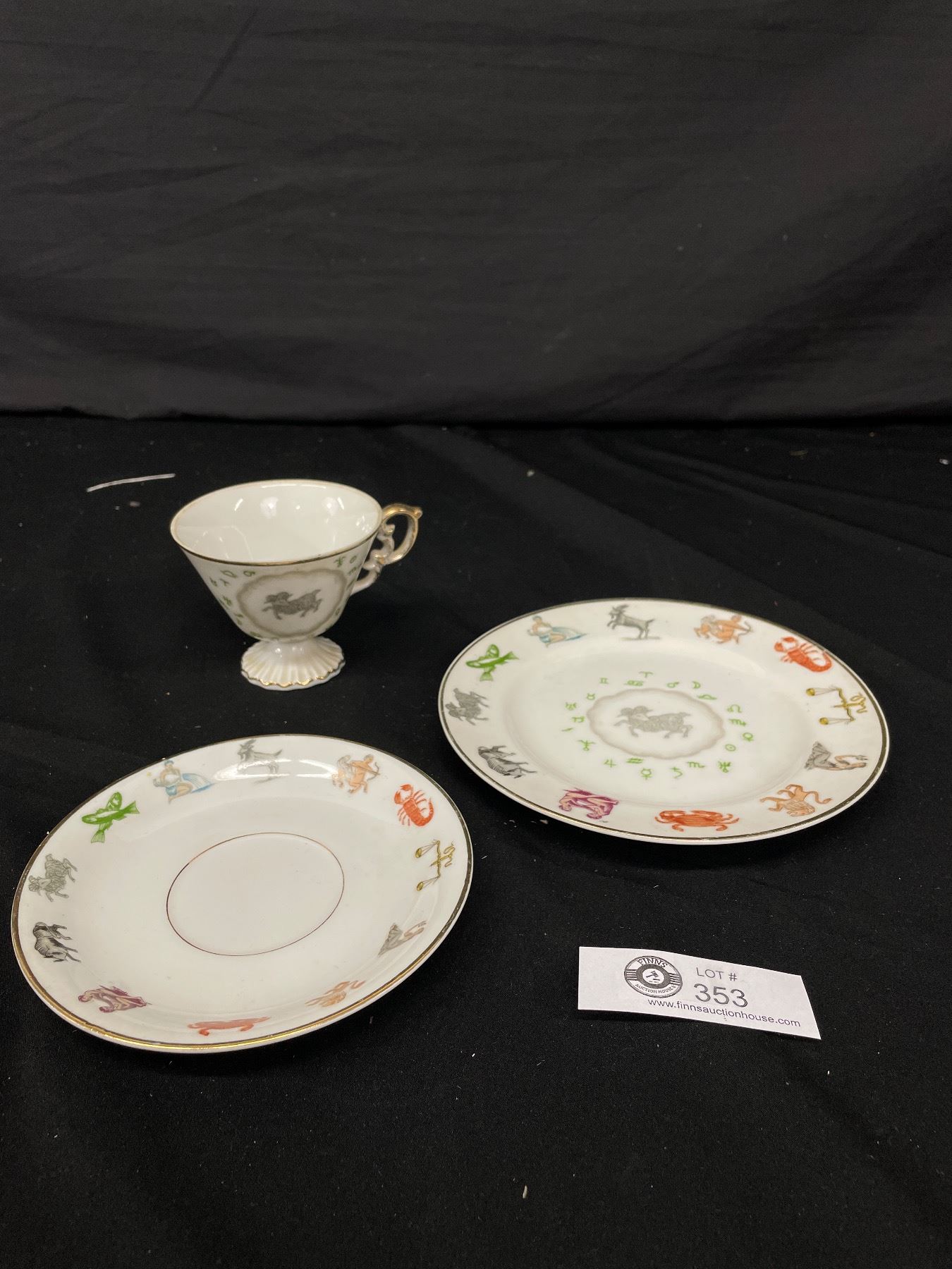 Very Unusual 50s Zodiac Cup, Saucer and Side Plate