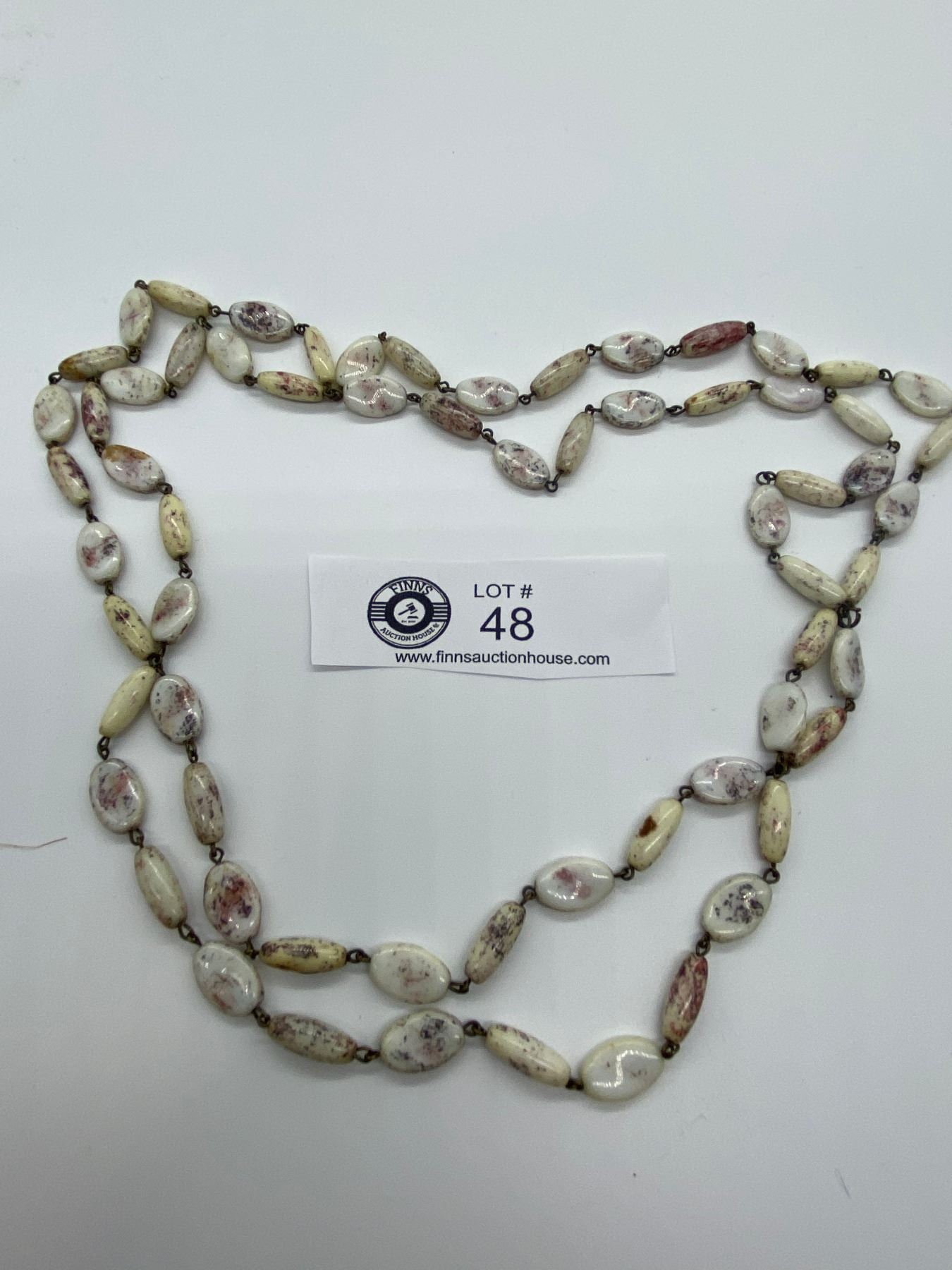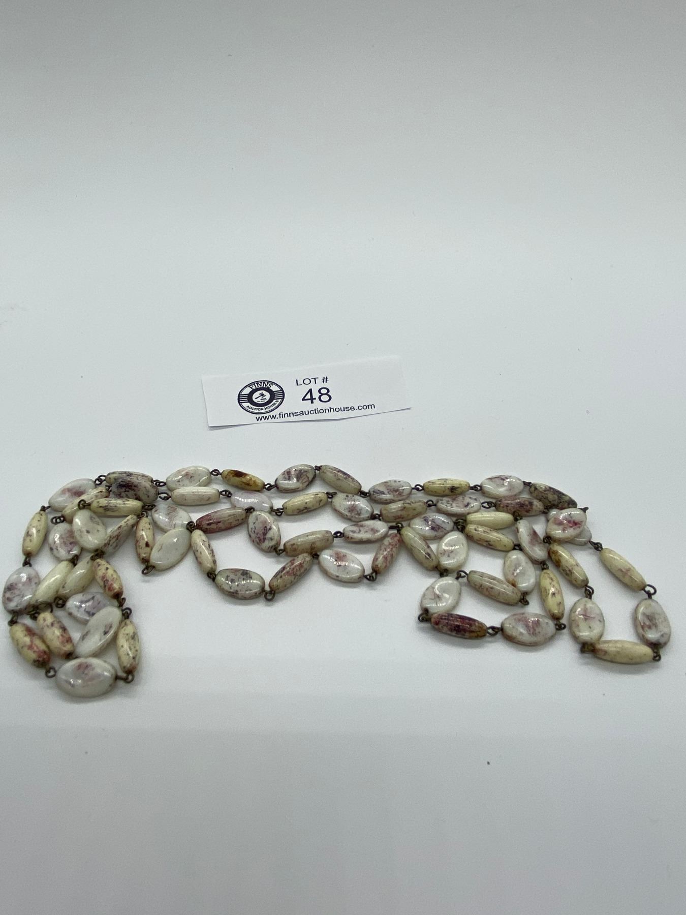 Very Unusual 52" White Victorian Glass Bead Necklace 1890's