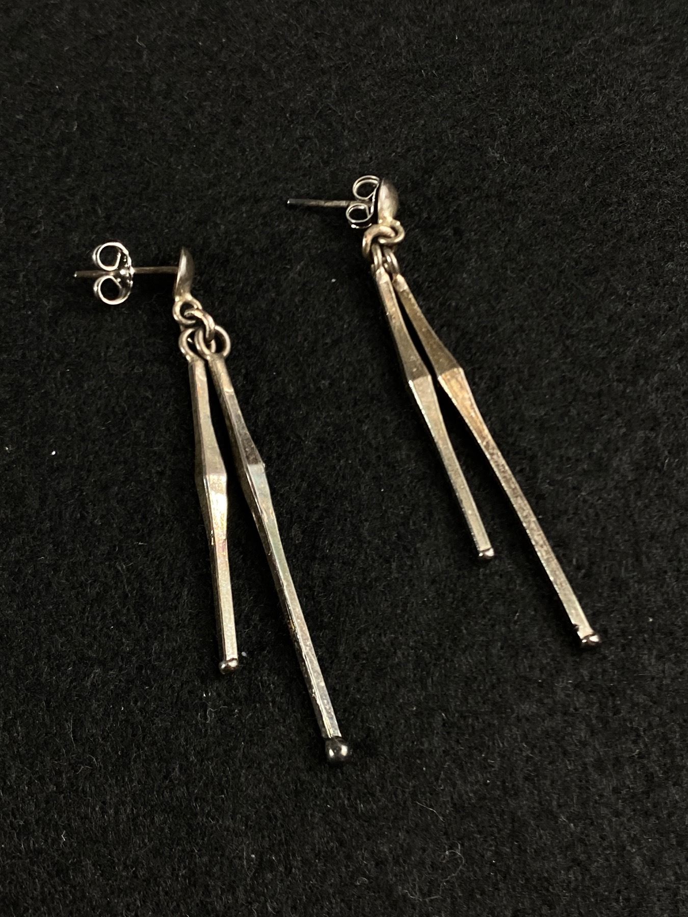 Very Unusual Sterling Stick Earrings 2" Long