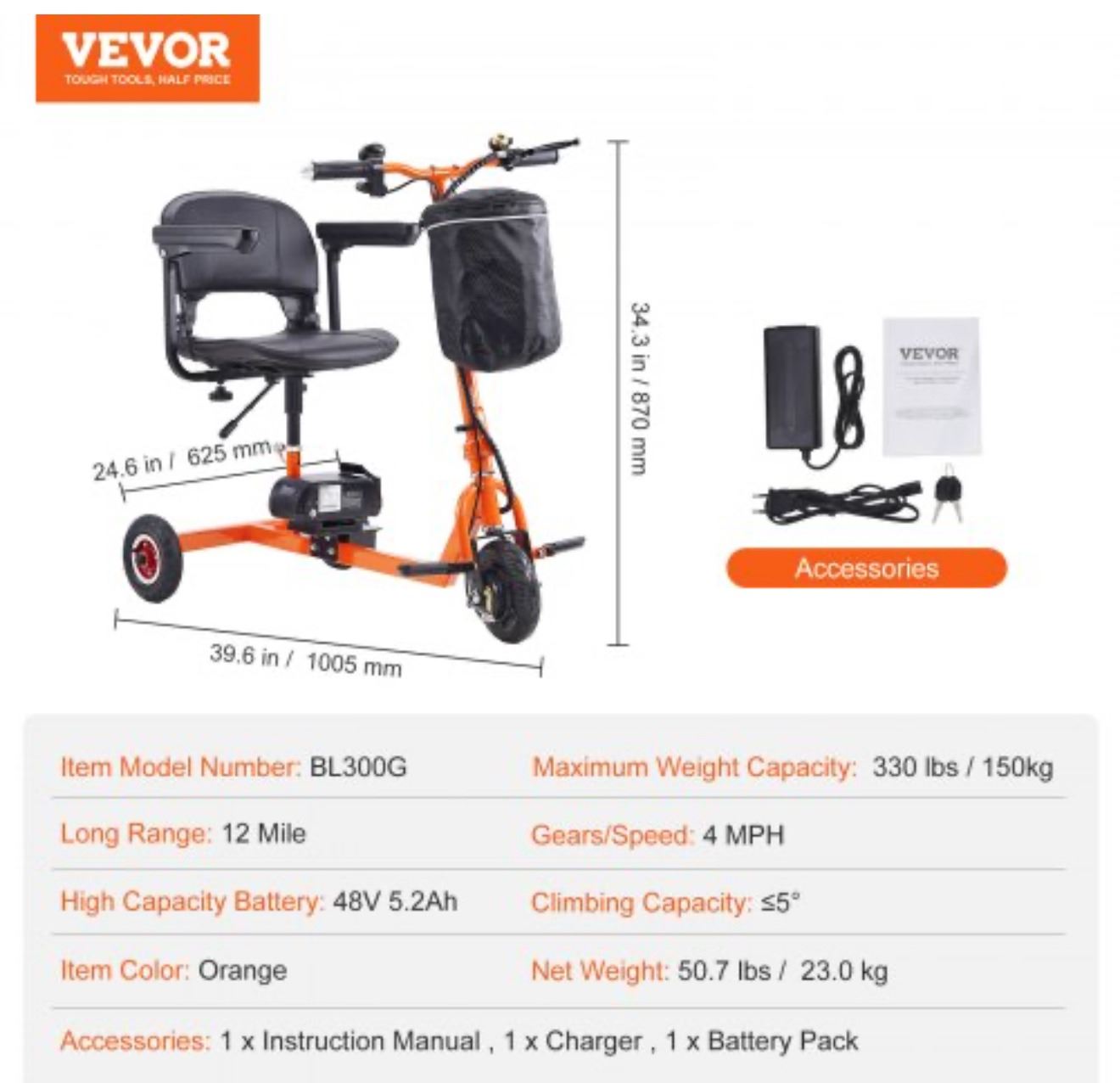 Vevor Folding Mobility Scooter - Model BL300G-A - BNIB