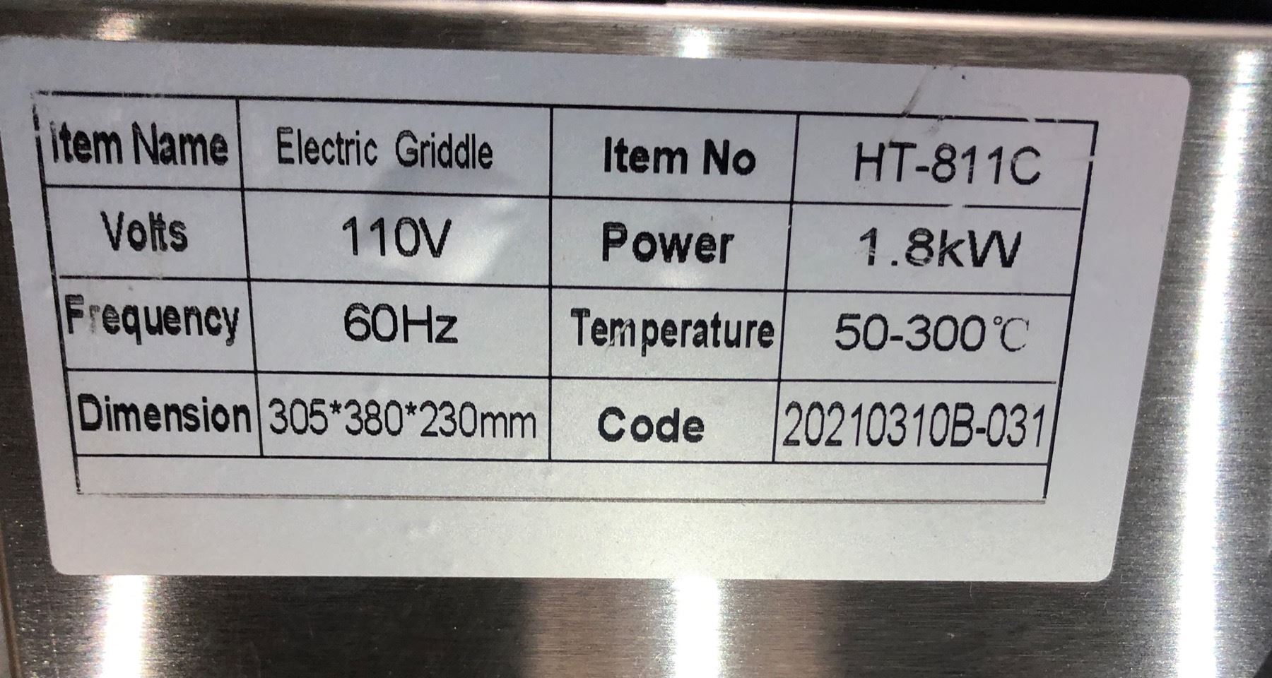 Vevor - electric bread grill 1800W - model HT-811C - Amazon returns