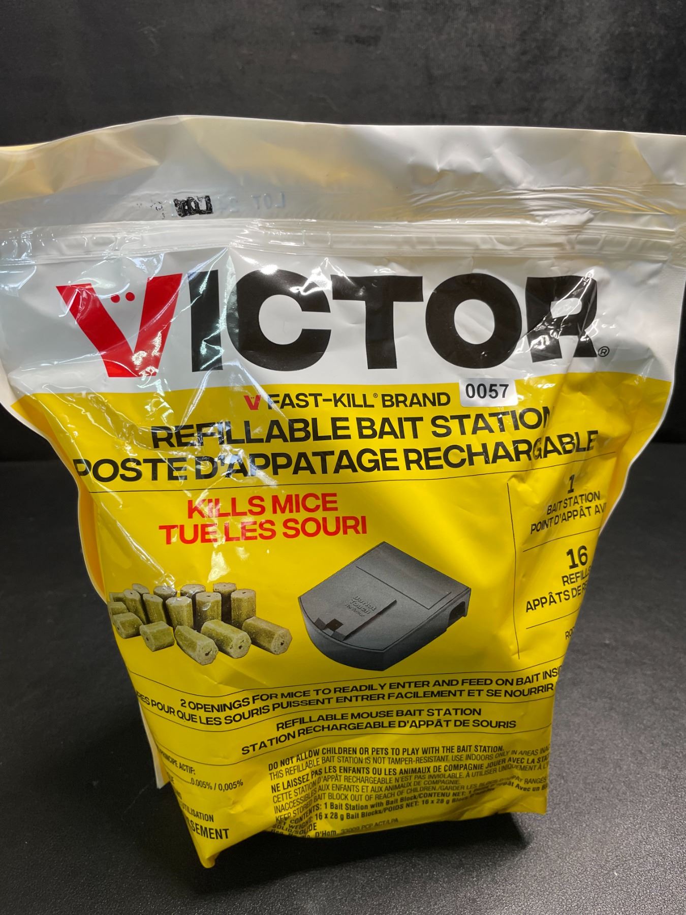 Victor Fast-Kill Refillable Mouse Poison Bait Station - Includes 1 Bait Station + 16 Refills - New