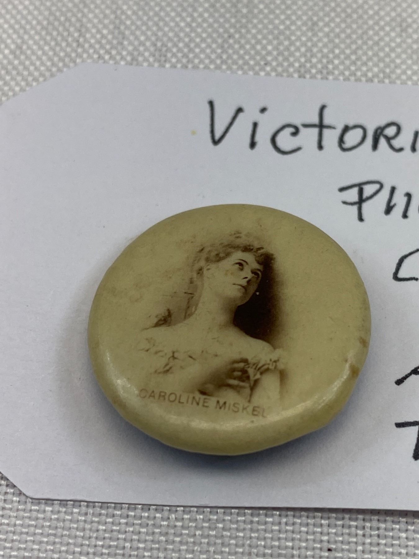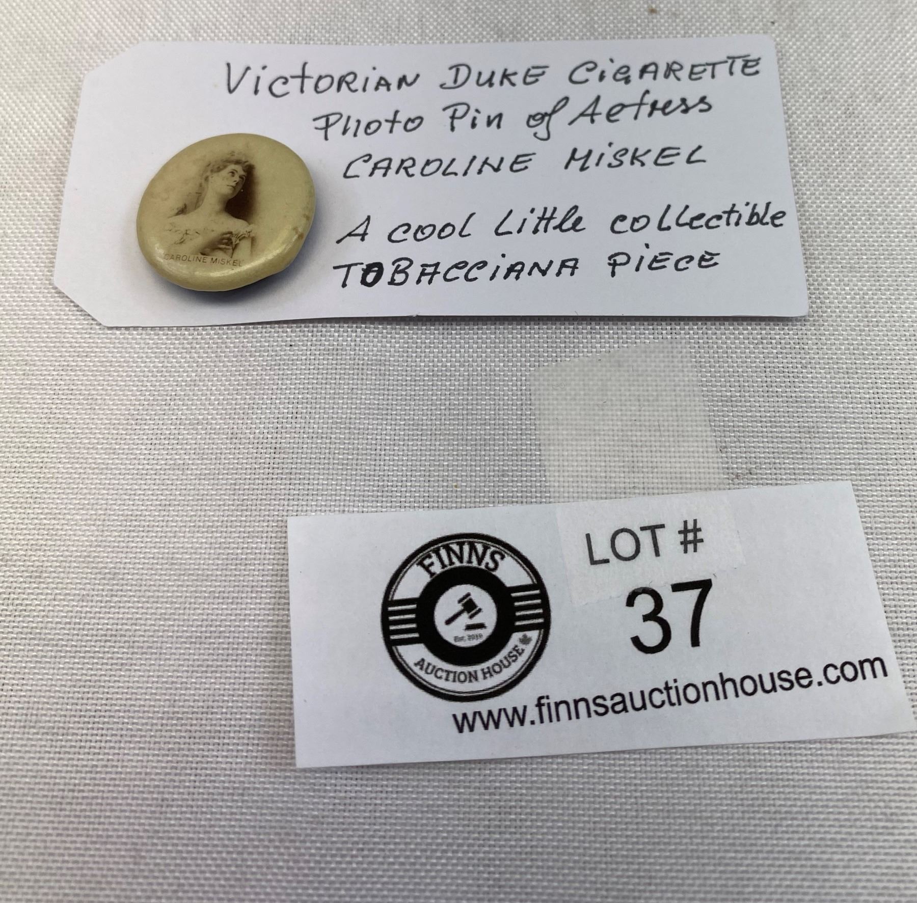 Victorian Duke Cigarette Photo Pin Of Actress Caroline Miskel