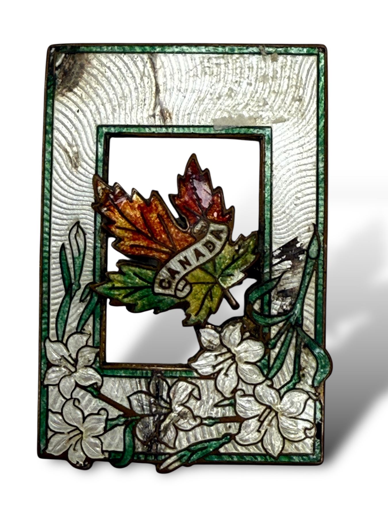 Victorian Era Canadian Enamelled Pin Back (White/Green)