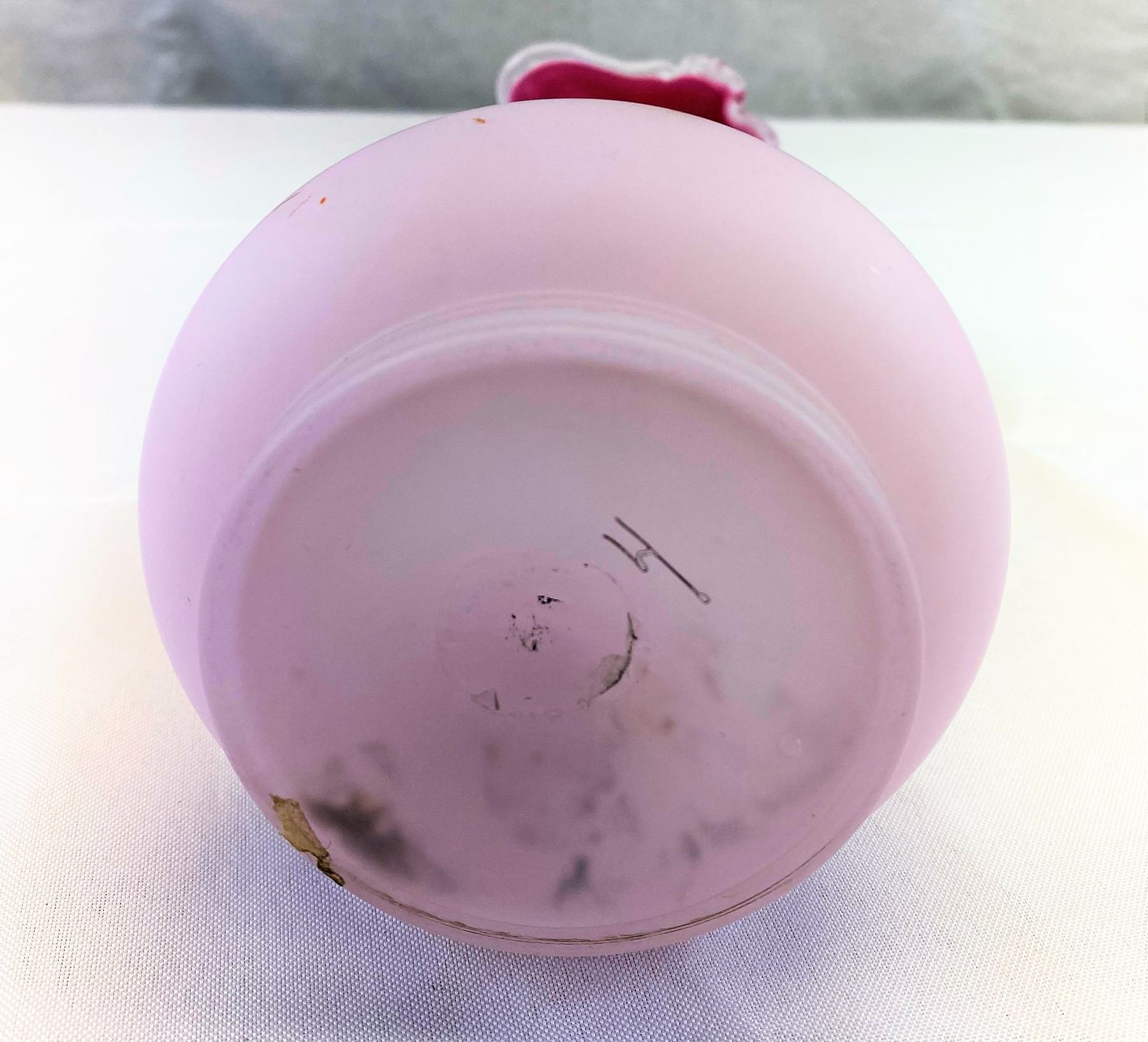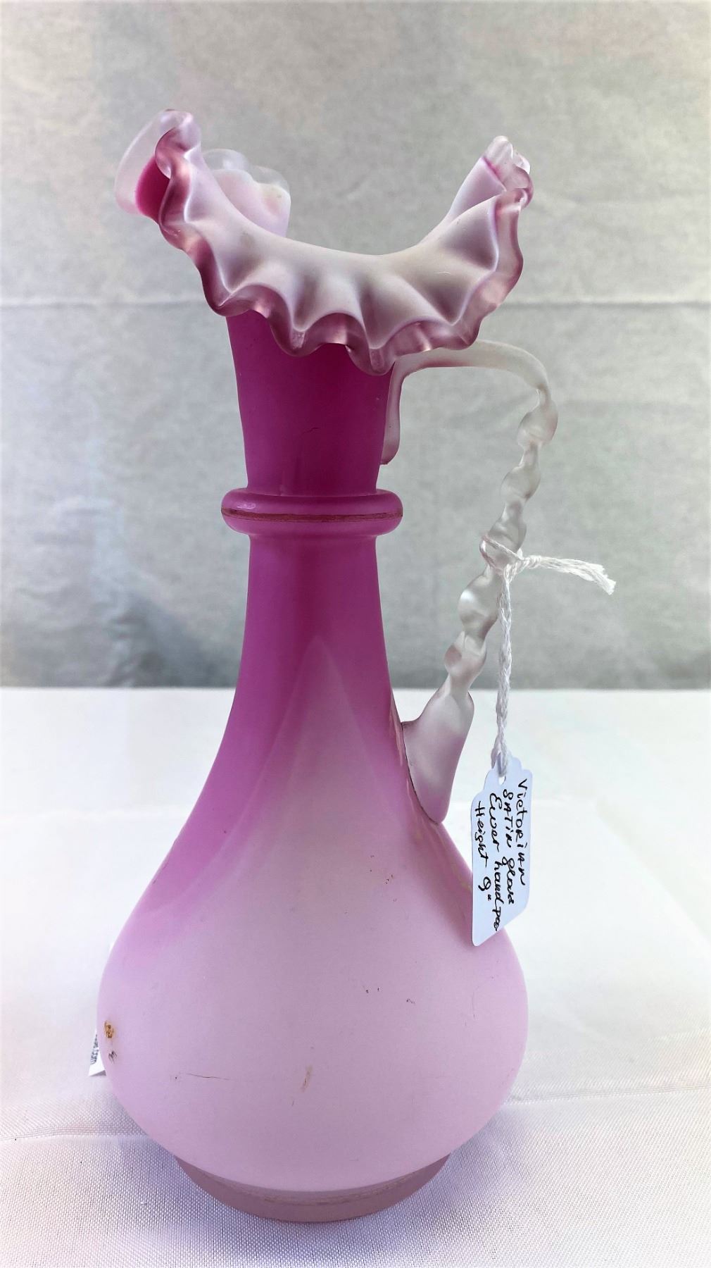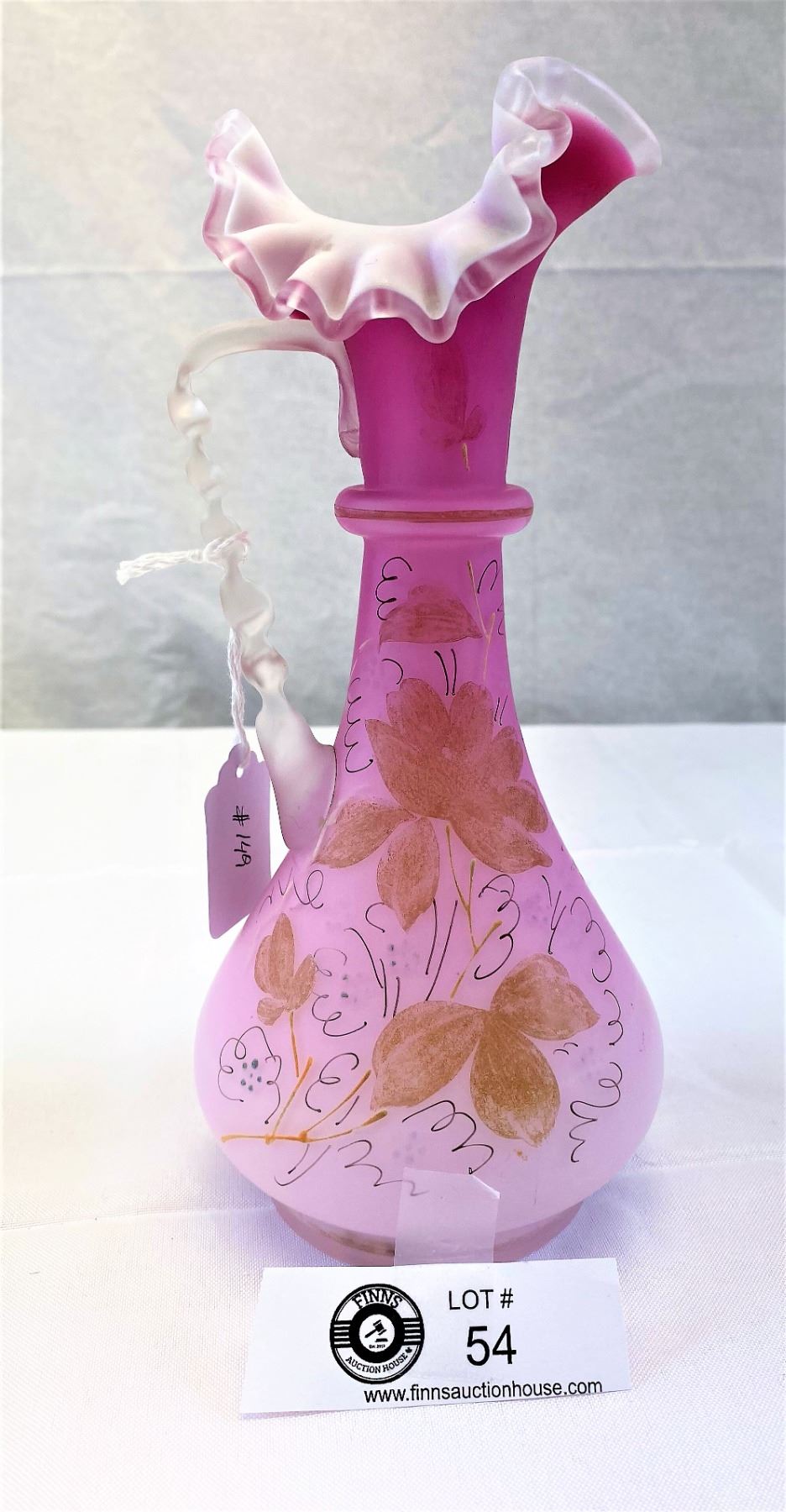 Victorian Satin Glass Ewer Hand Painted, 9"T