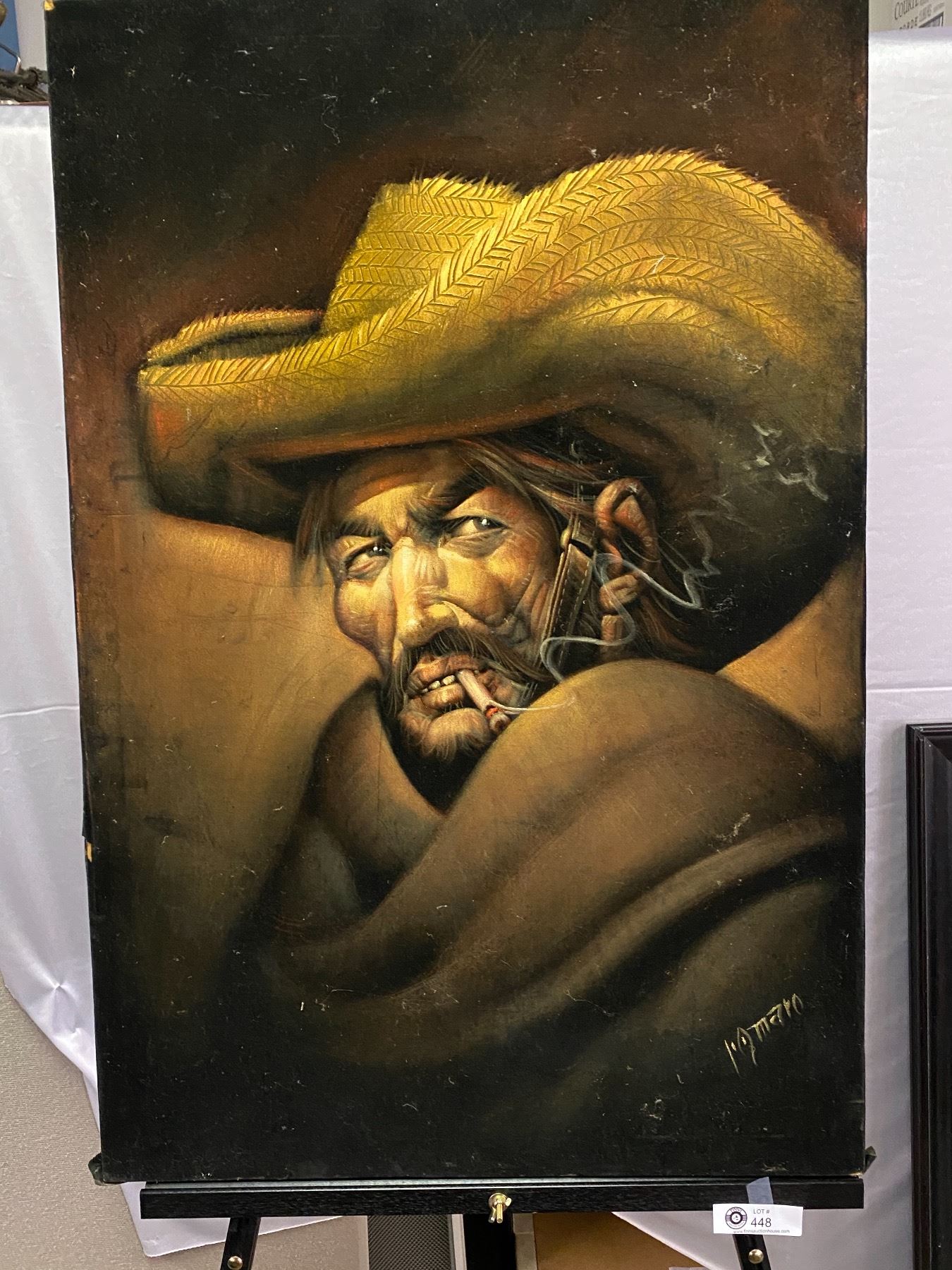 Vinatage 24"w 36"h Velvet Painting Old Western Man