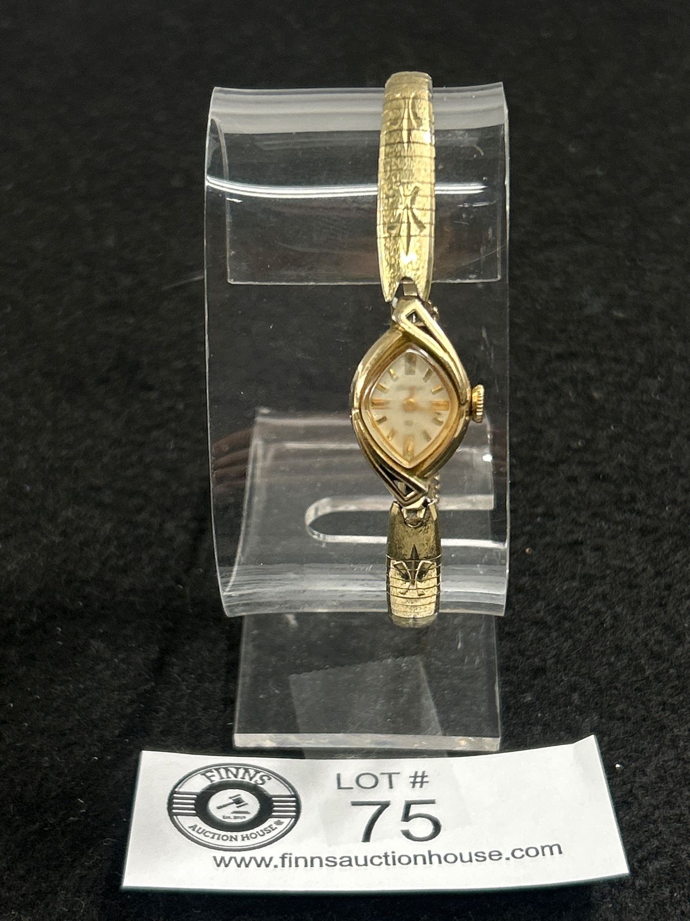 Vintage 10k Rolled Gold Plate, Swiss Ladies Bulova Wrist Watch, Wind Up, Barley Working