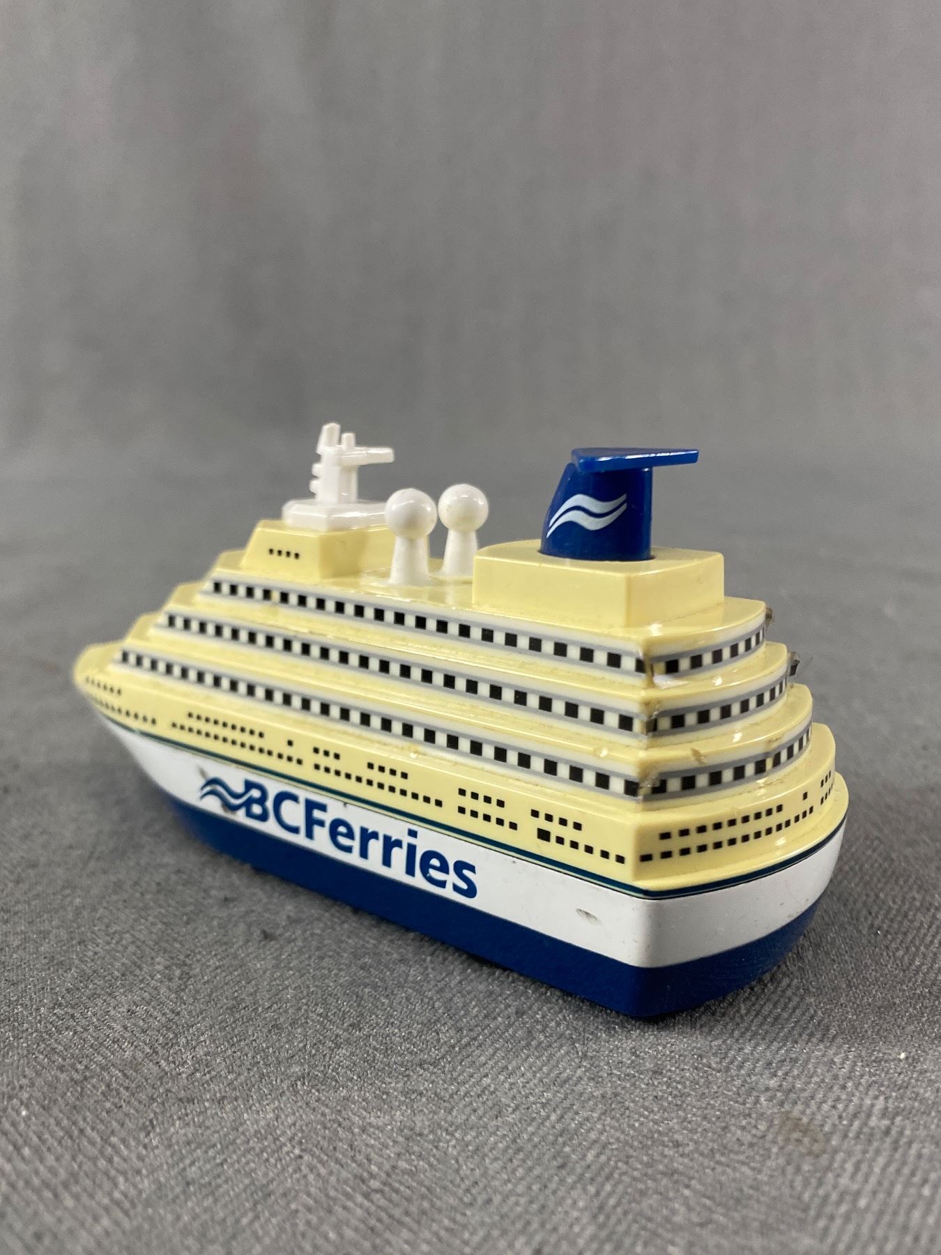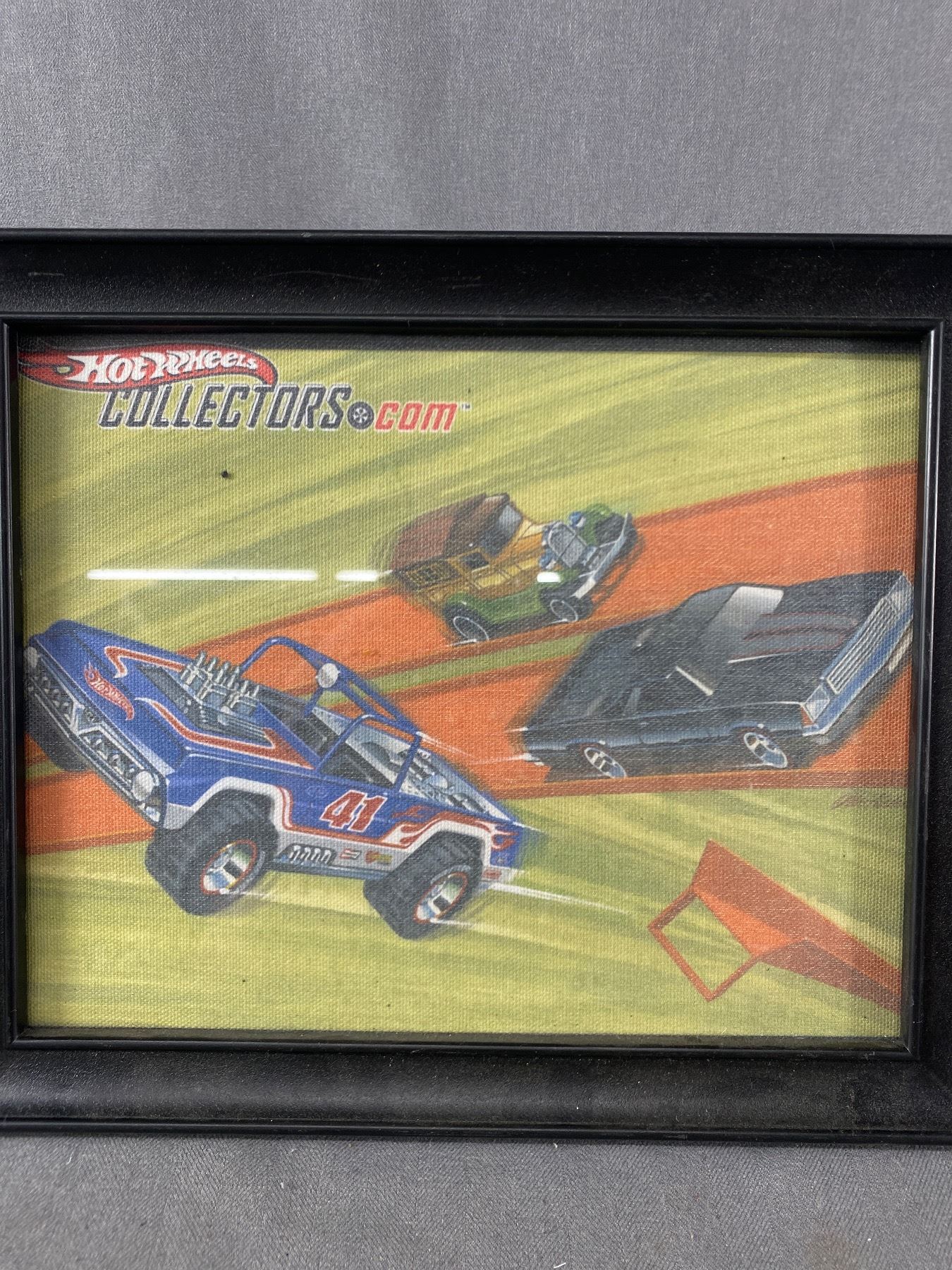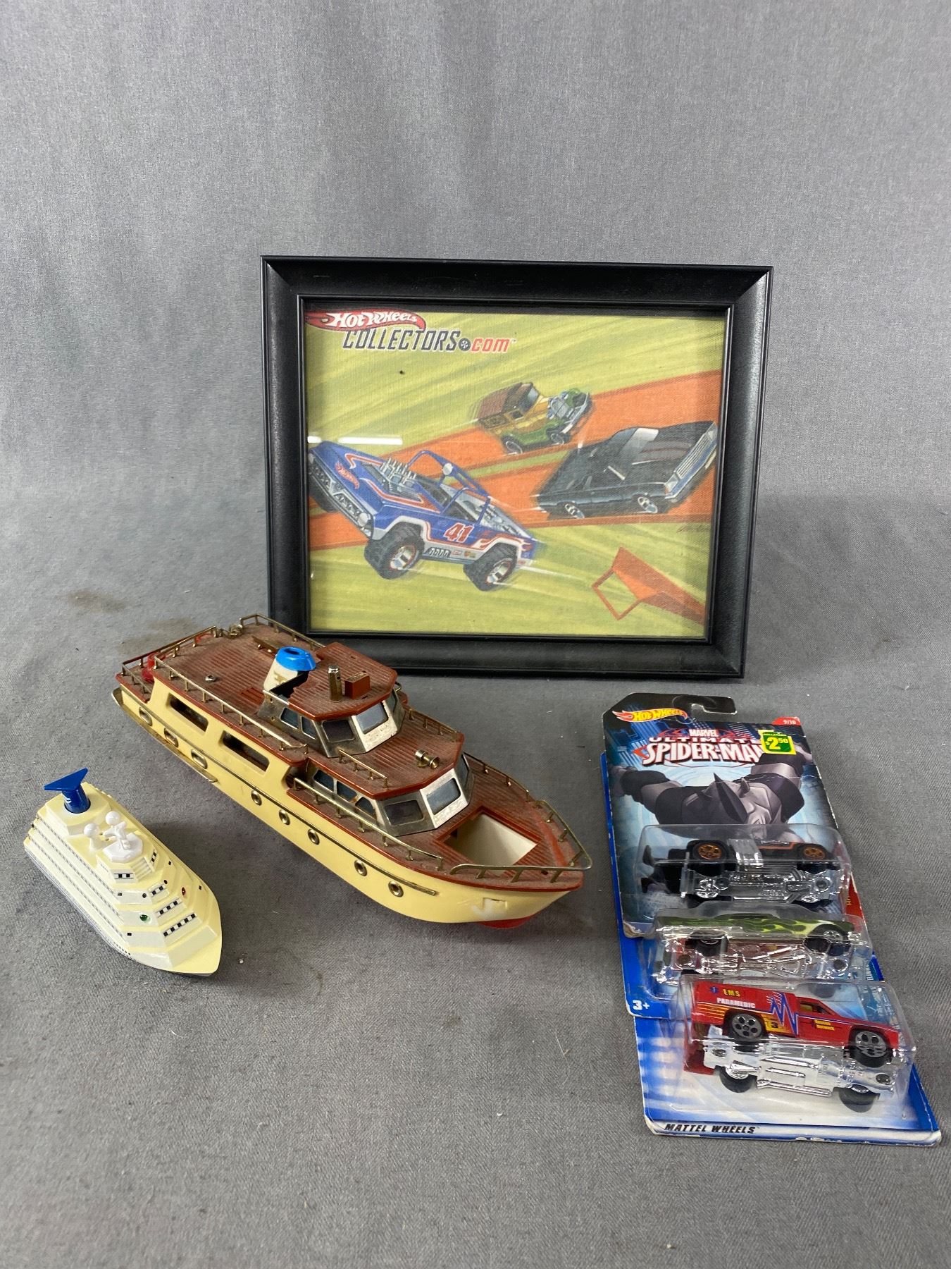 Vintage 12" Transistor Radio Yacht, 5" BC Ferries Boat, 3 Pkgs Of Hot wheels & 11.5" x 9.5" Framed Hot wheels Picture