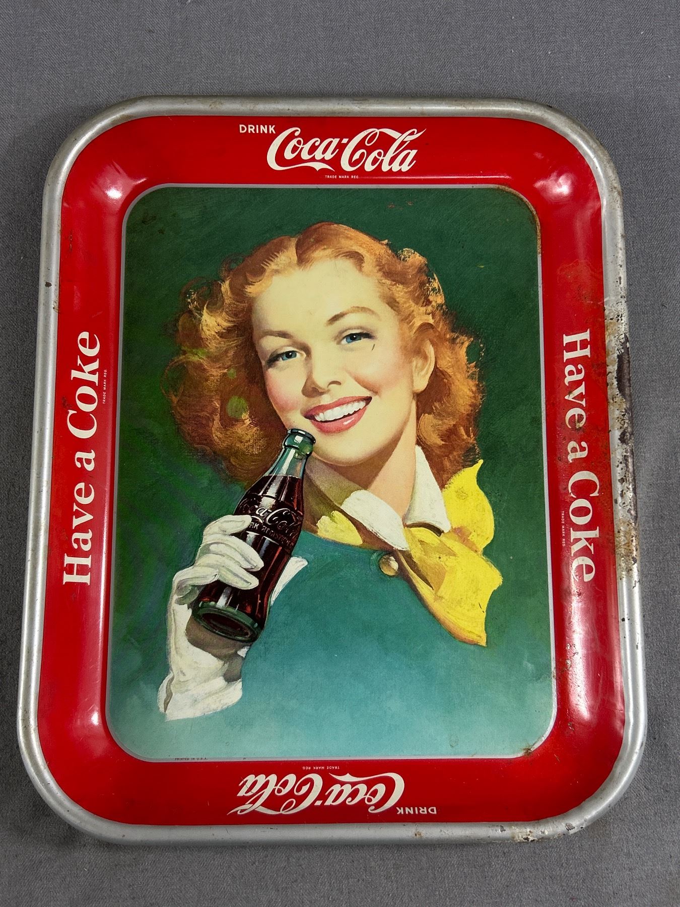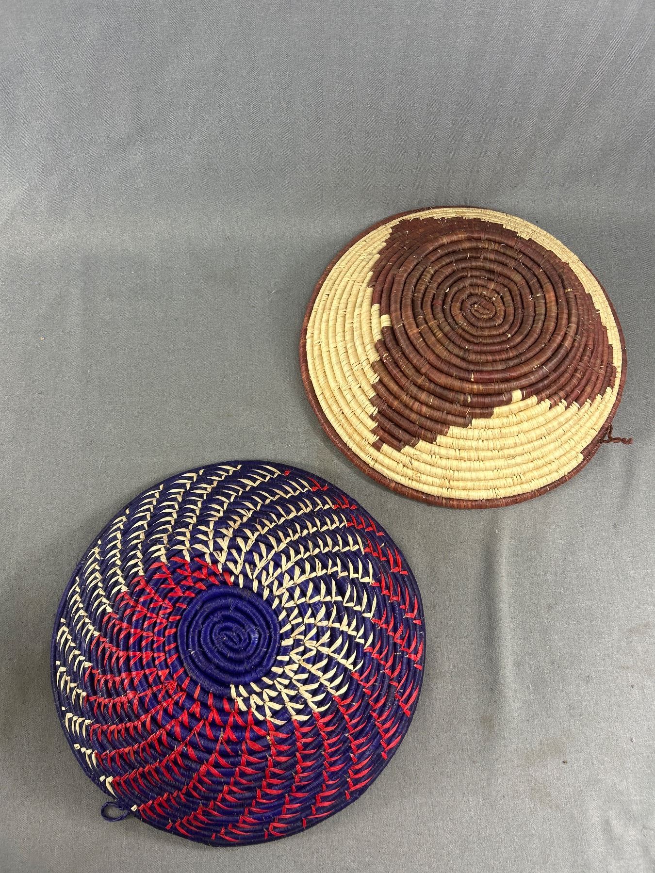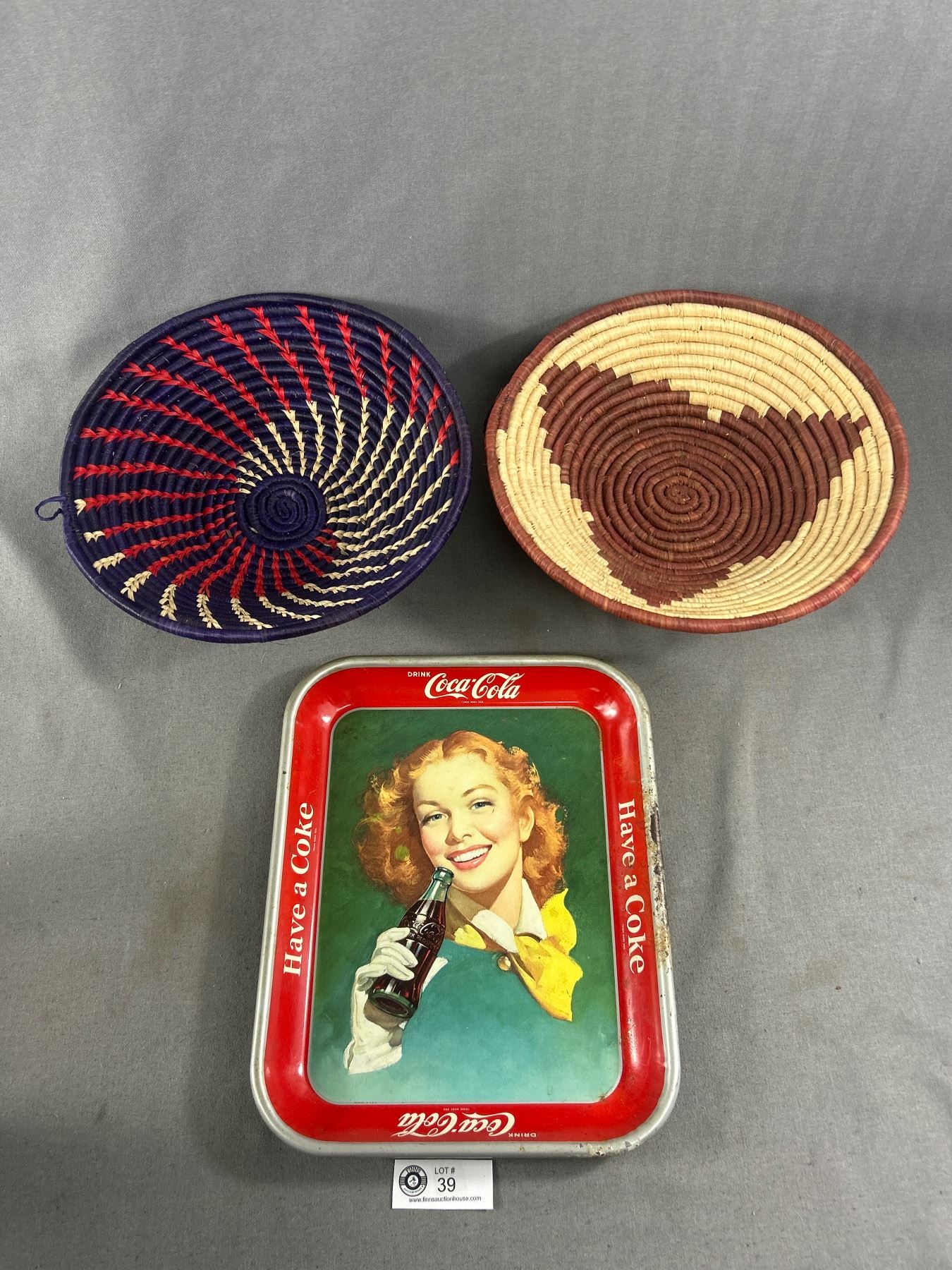 Vintage 13"x10.5" Coca Cola Tray & 2 12" Diam. Hand Woven Baskets By Masai Tribeswomen of South Africa