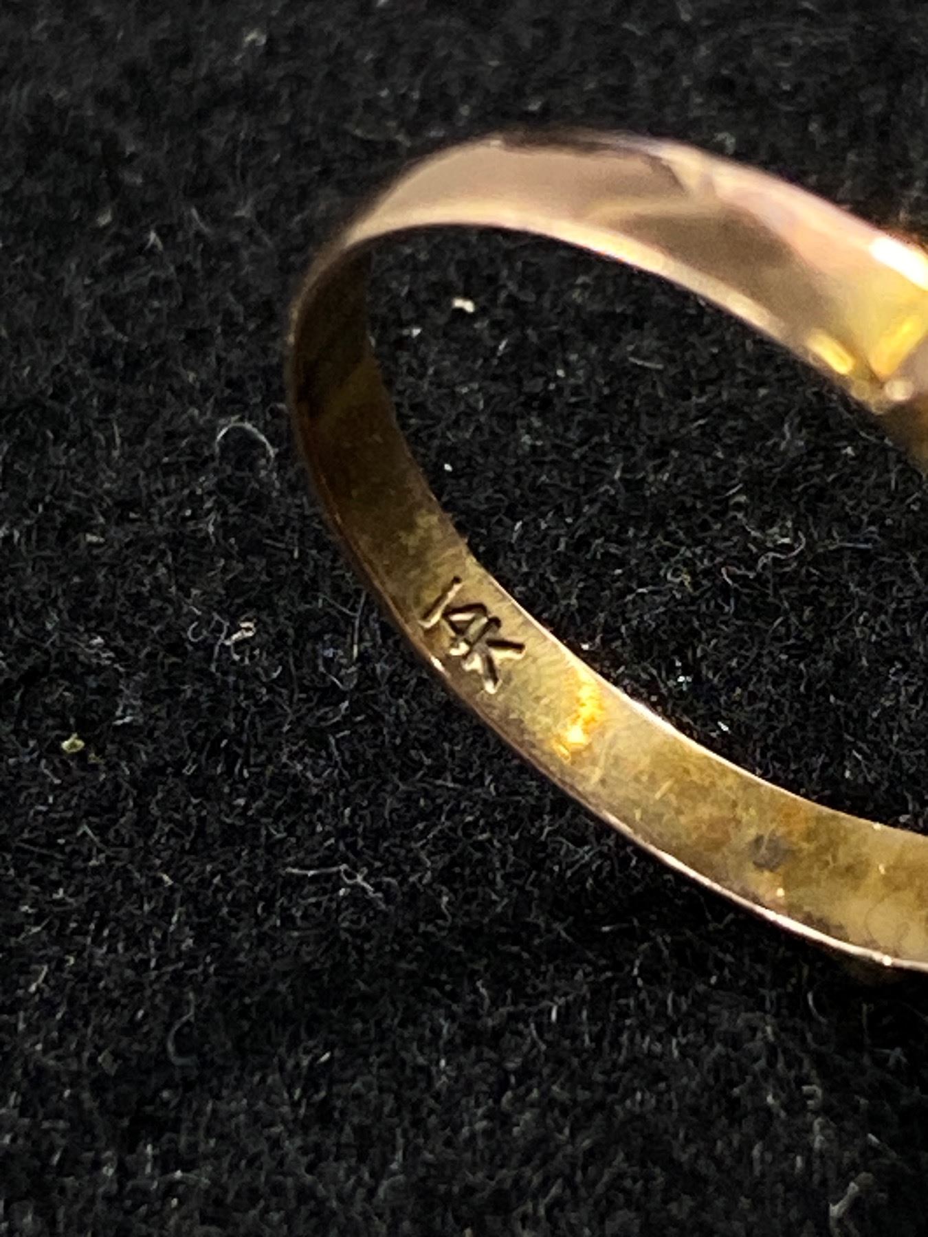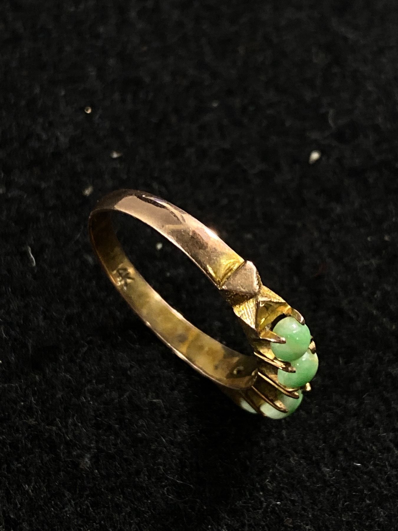 Vintage 14KT Gold Ring Jade - Size 6 - 3.69 Grams - One Stone Missing - Marked & Tested