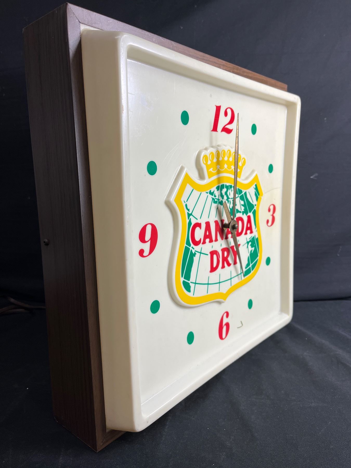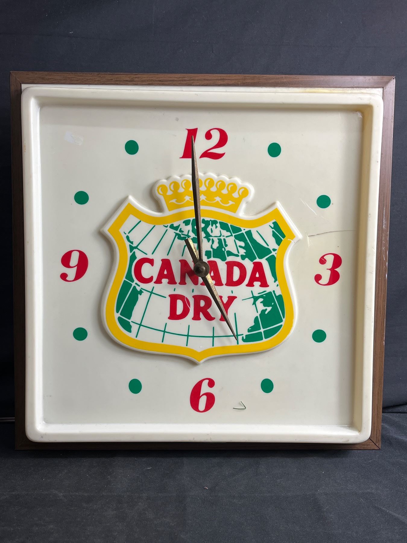 Vintage 16" x 16" x 4.5" Canada Dry Electric Plastic Clock In Metal Frame. Untested. 2" crack on face