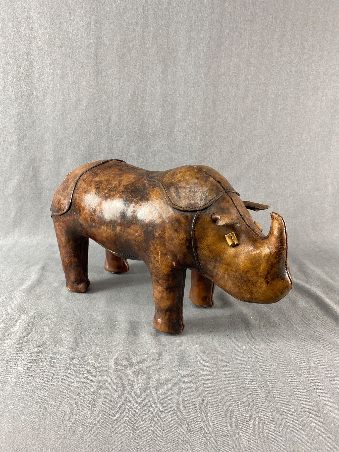 Vintage 19" Long 10" Tall, Leather Rhinoceros