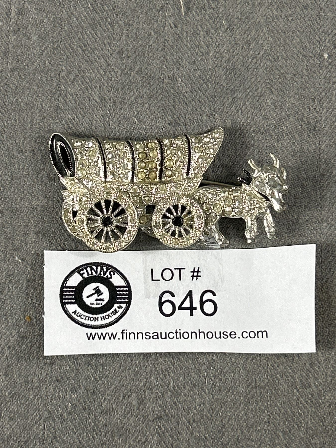 Vintage 1940's Brooch Wheel Turns Unsigned Designer with Rhinestones